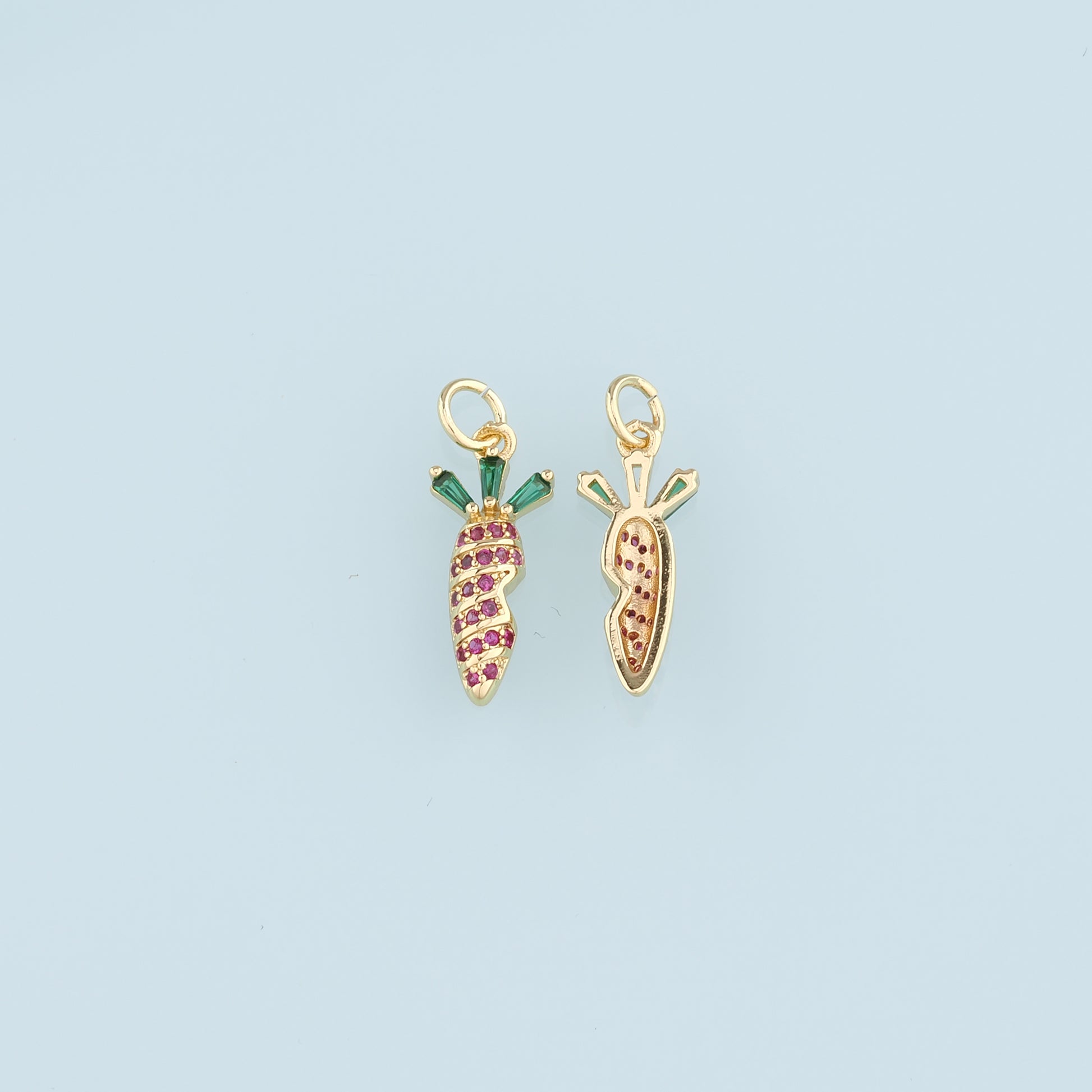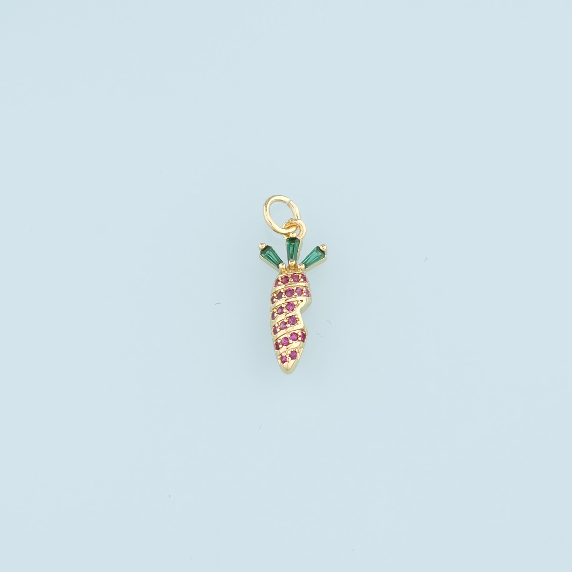 18K Gold Filled Radish Pendant,CZ Micro Pave Radish Charm Bracelet Necklace for DIY Jewelry Making Supply