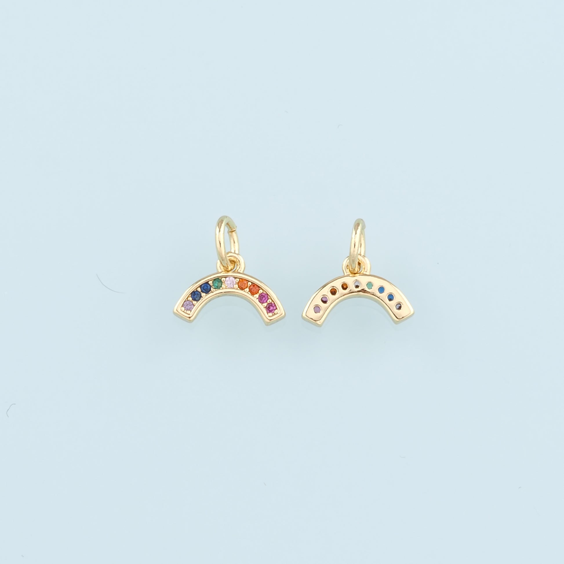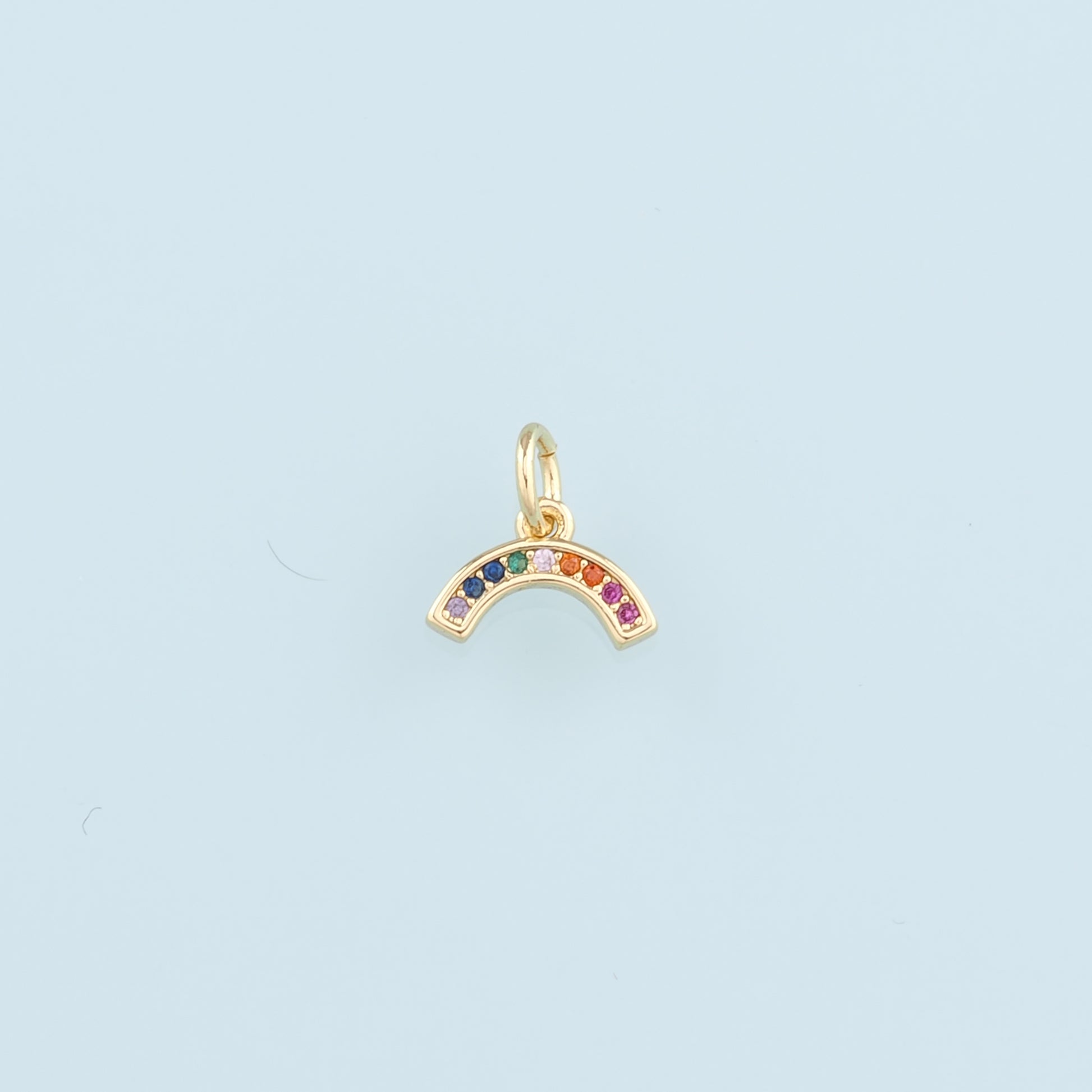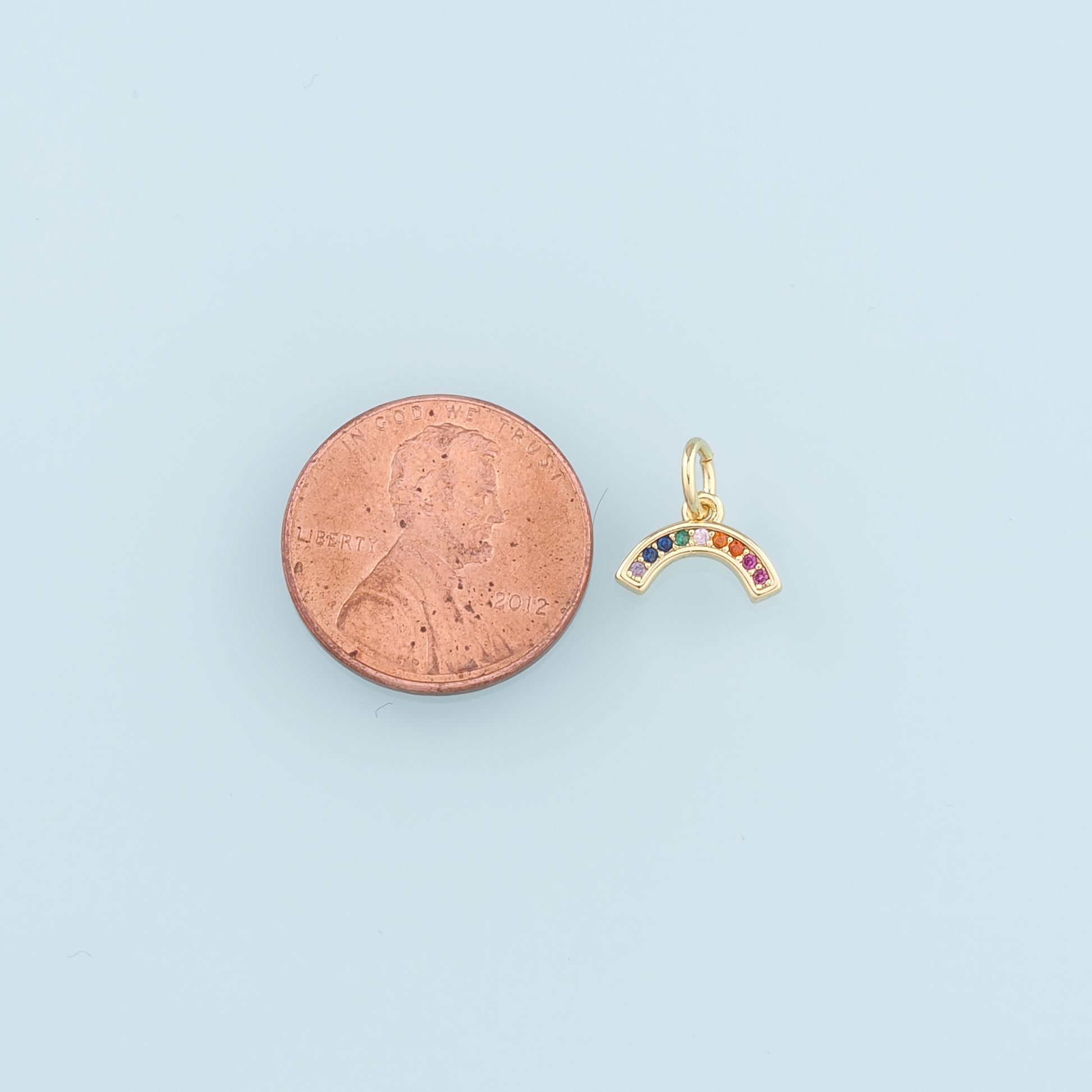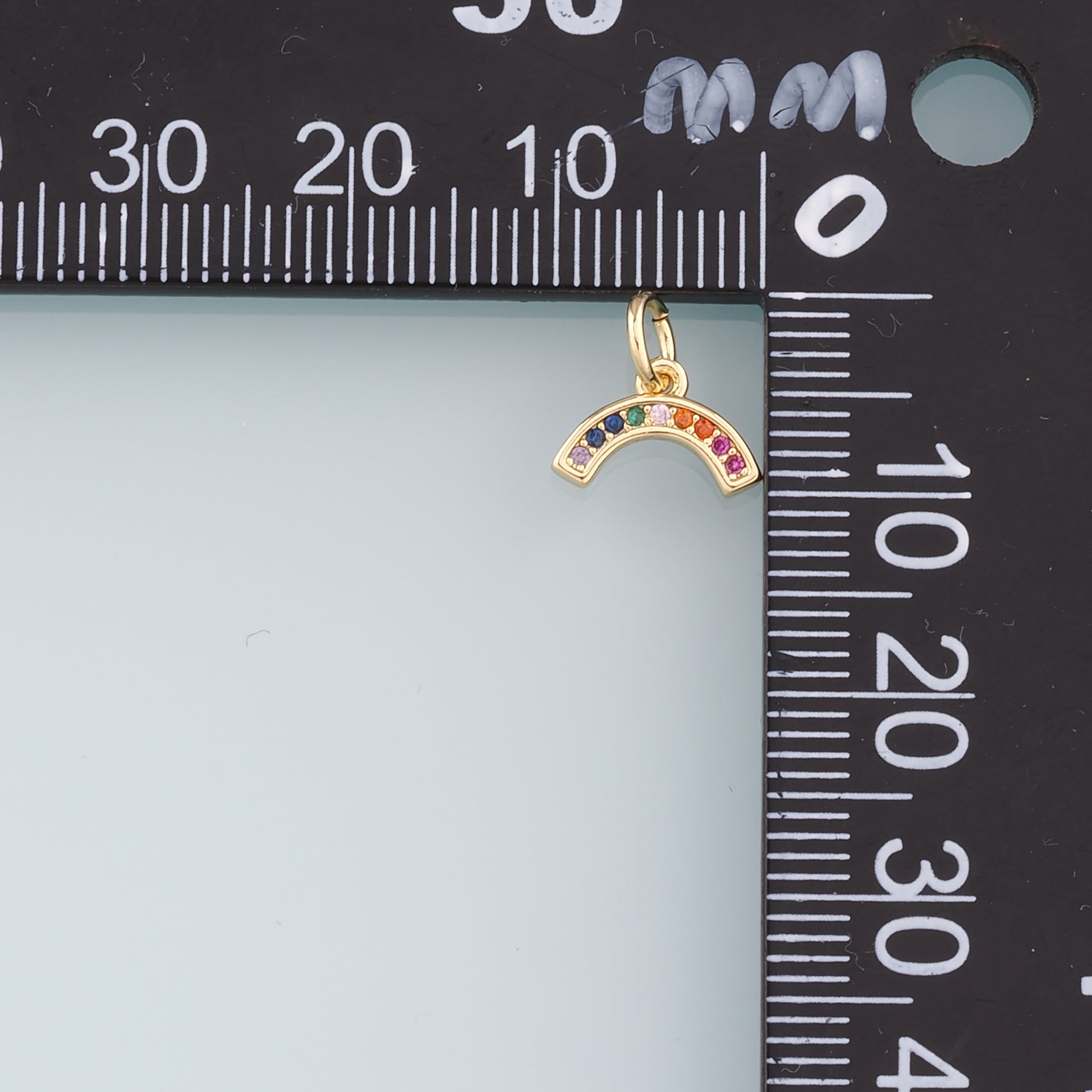 18K Gold Filled Rainbow Pendant,CZ Micro Pave Rainbow Charm Bracelet Necklace for DIY Jewelry Making Supply