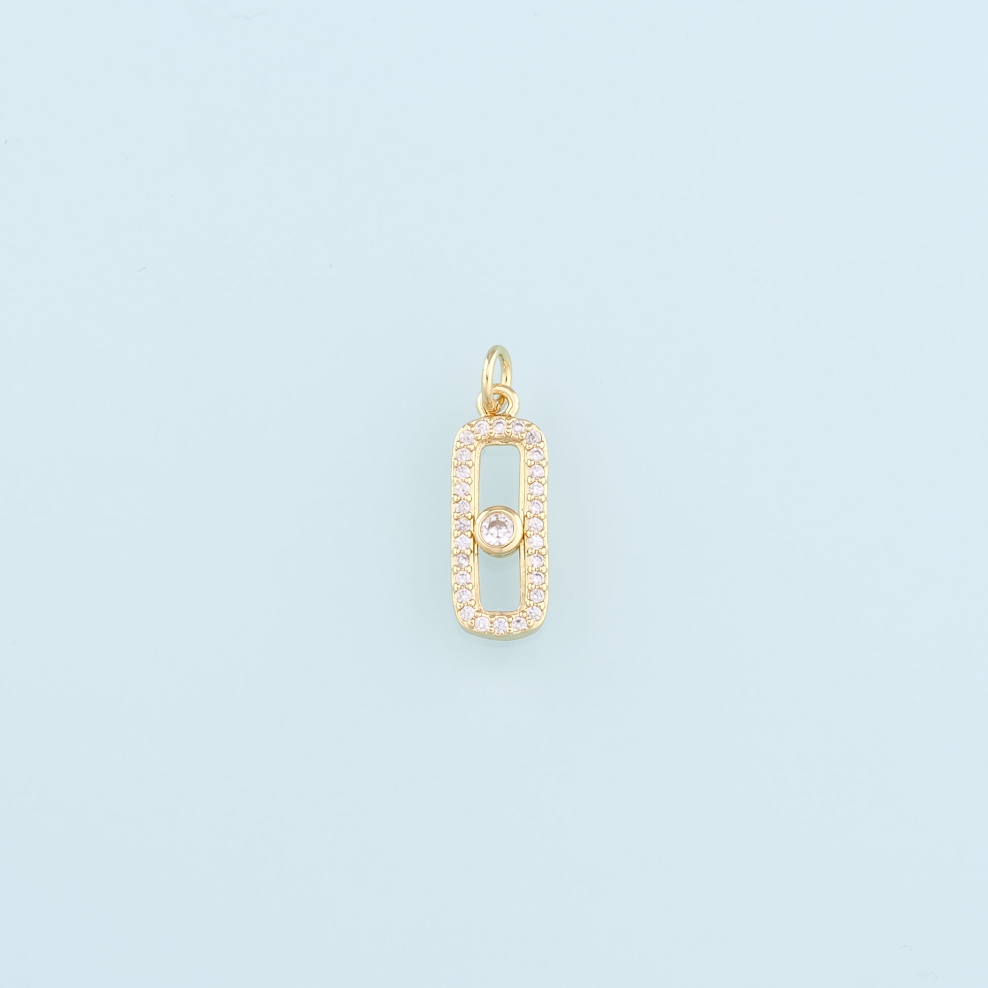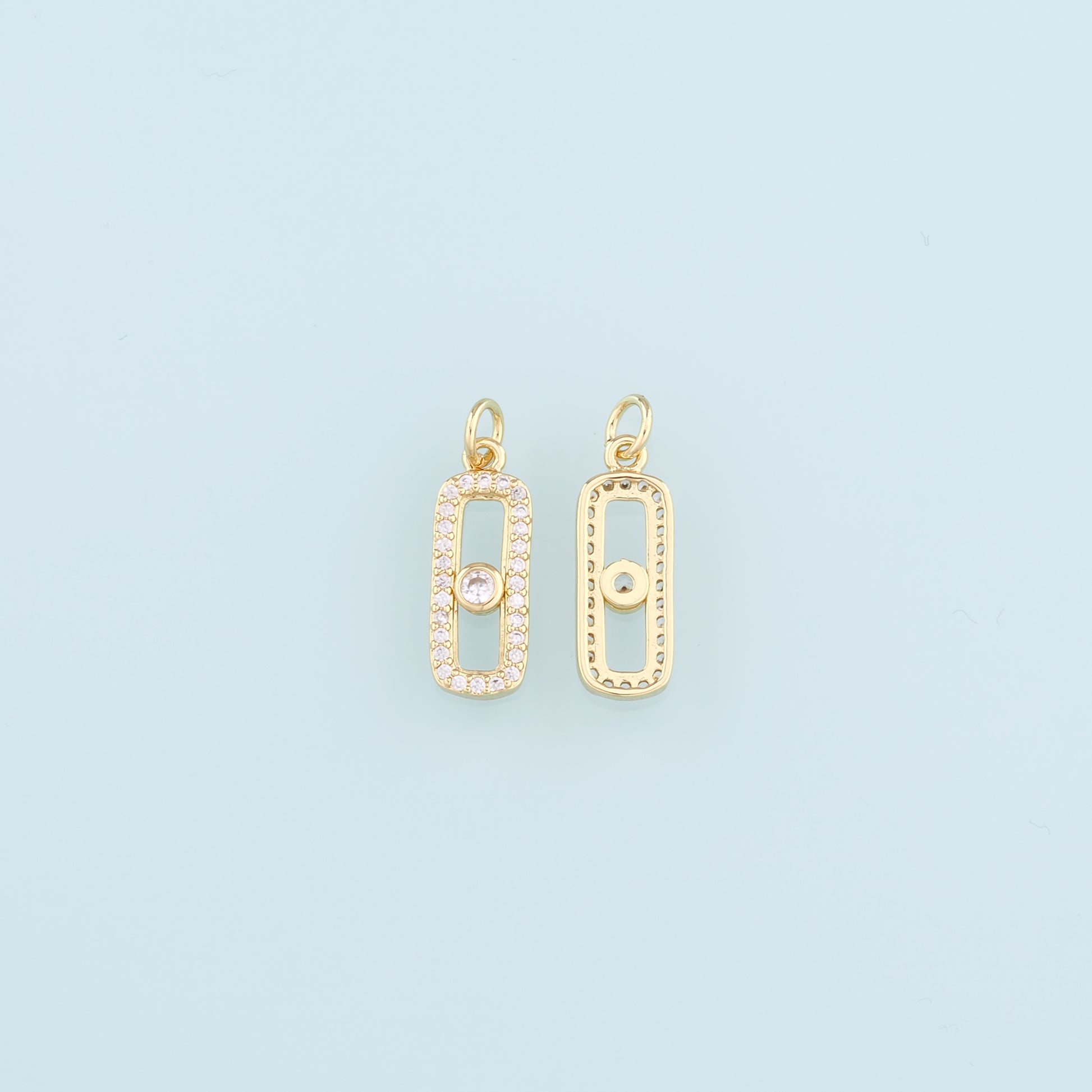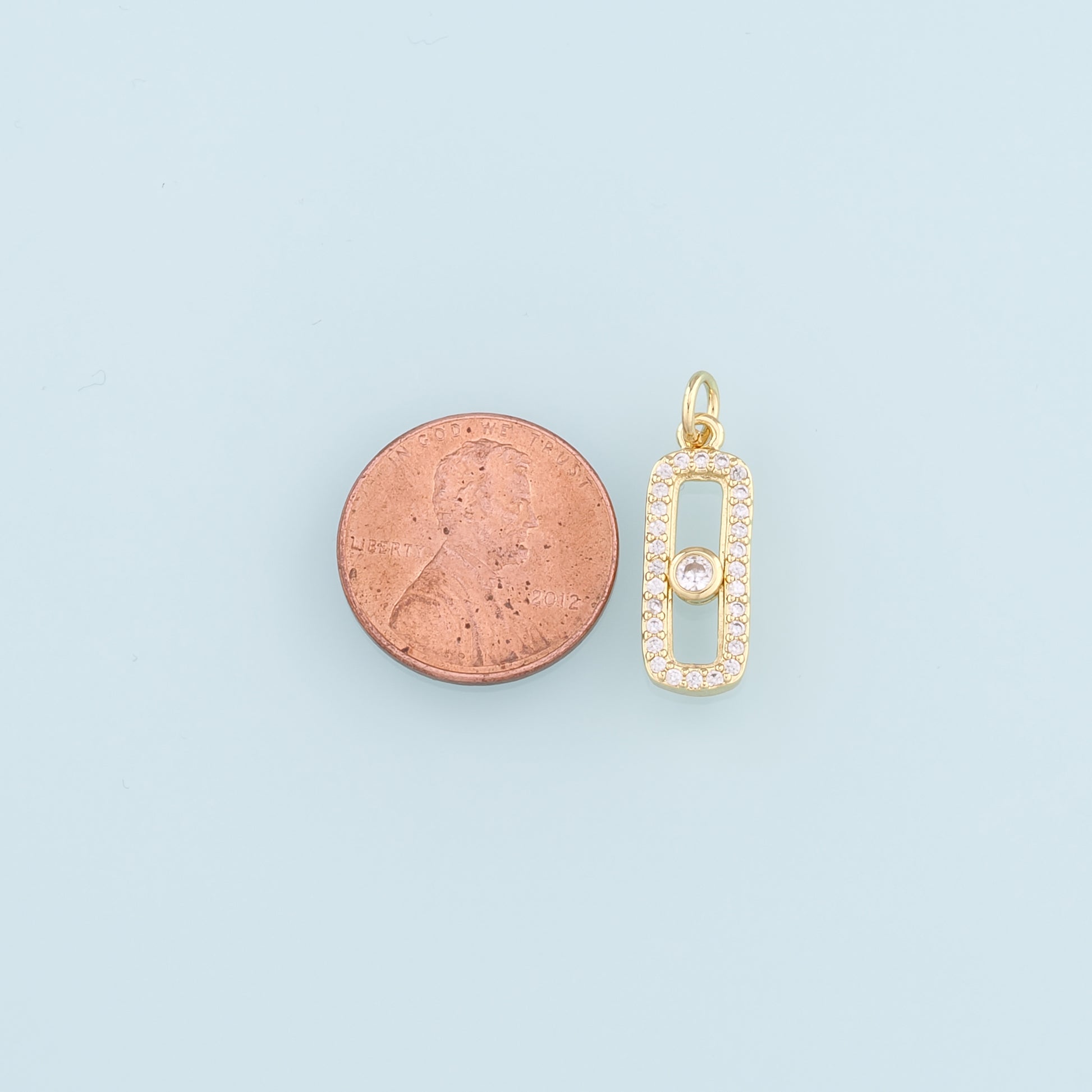 18K Gold Filled Rectangle Pendant,CZ Micro Pave Rectangle Charm Bracelet Necklace for DIY Jewelry Making Supply