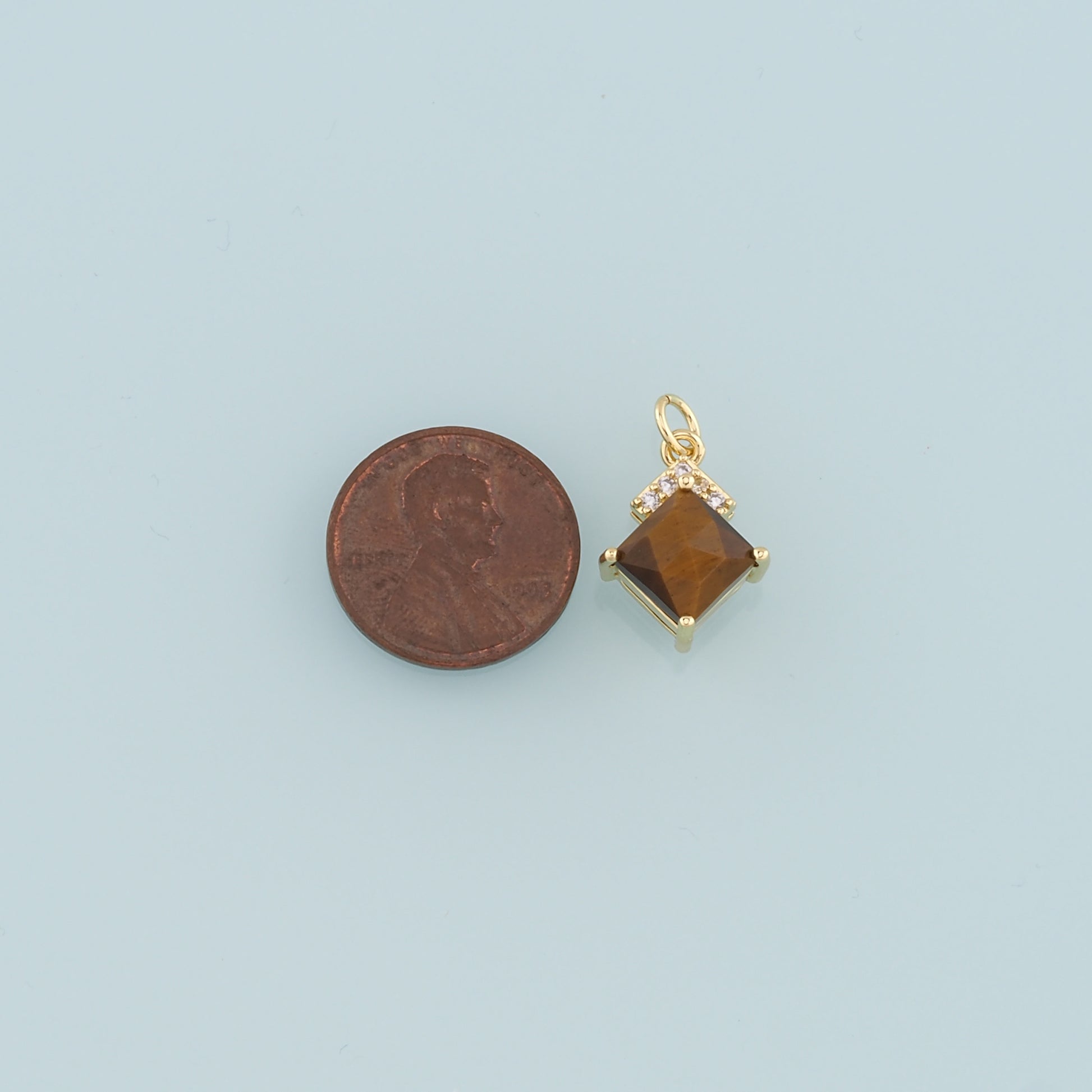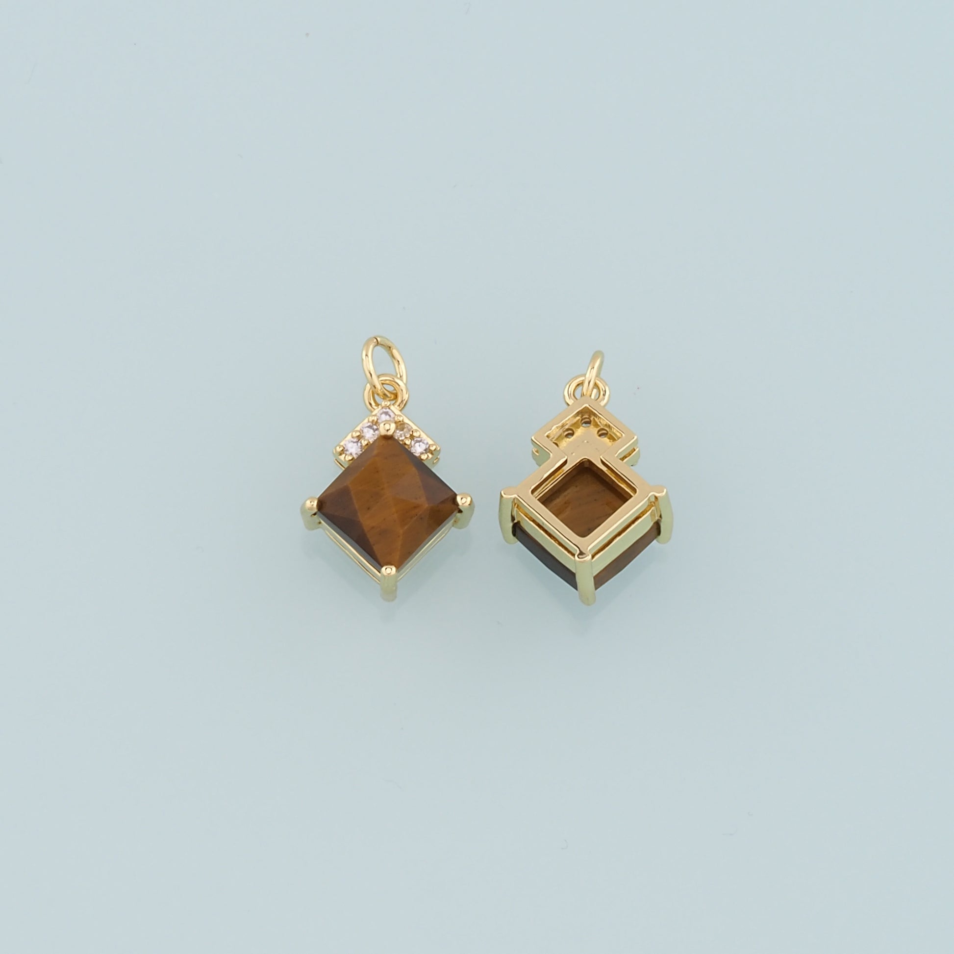 18K Gold Filled Rhombus Gem Pendant,Gem Charm Bracelet Necklace for DIY Jewelry Making Supply