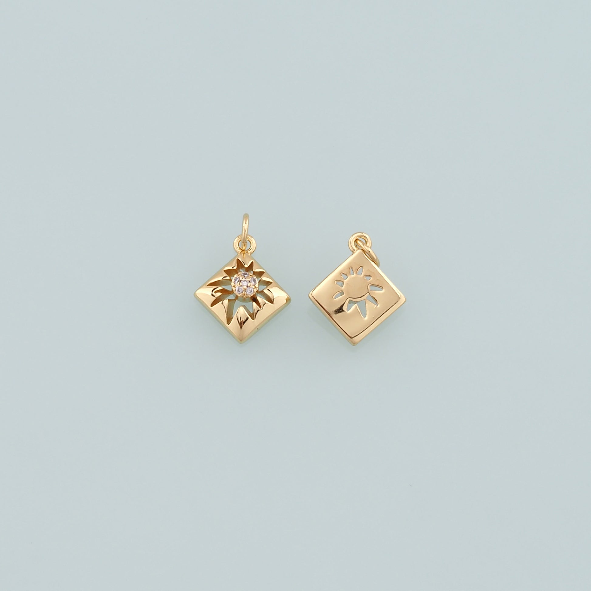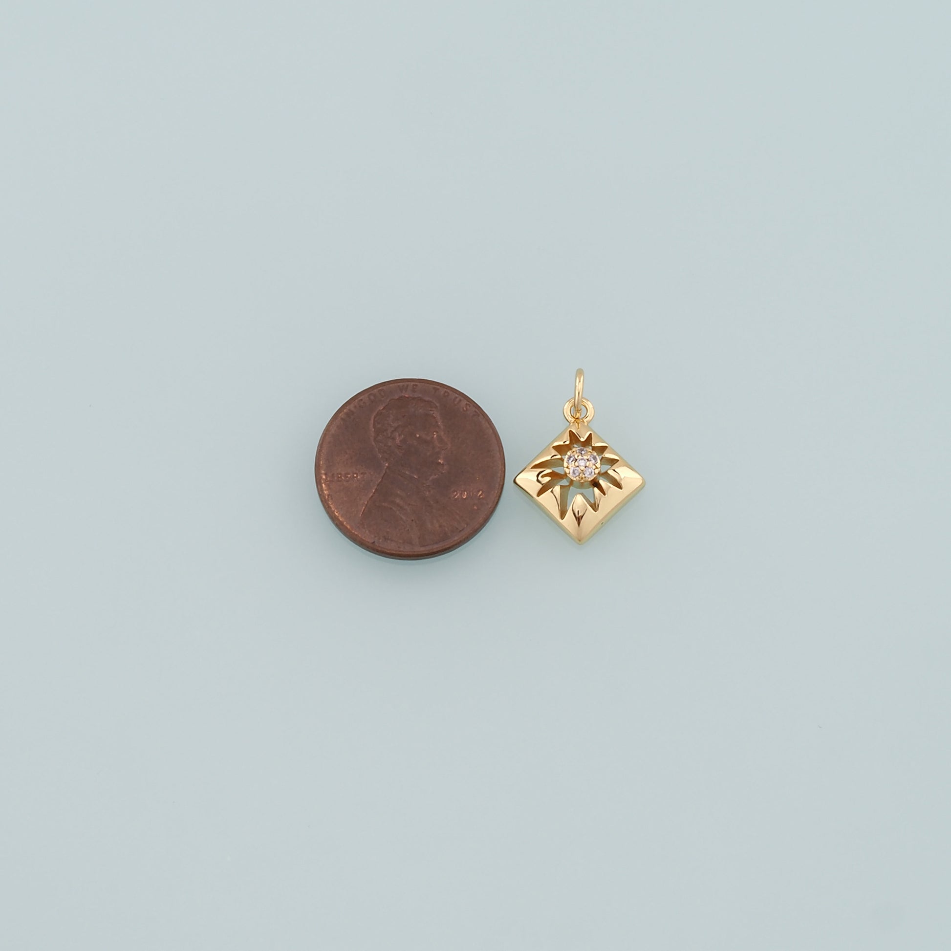 18K Gold Filled Rhombus Pendant,CZ Micro Pave Rhombus Charm Bracelet Necklace for DIY Jewelry Making Supply