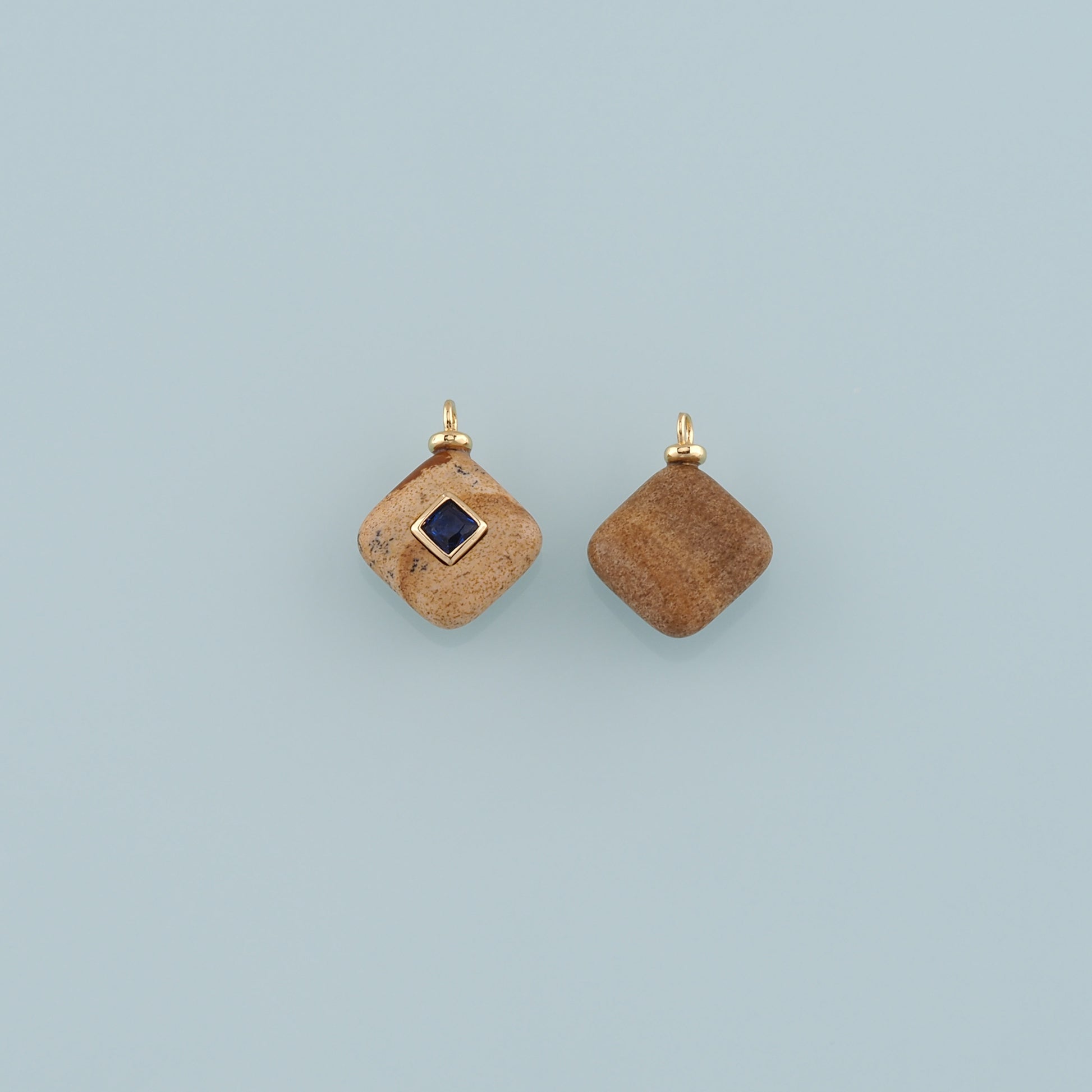 18K Gold Filled Rhombus Pendant,Natural Stone Charm Bracelet Necklace for DIY Jewelry Making Supply