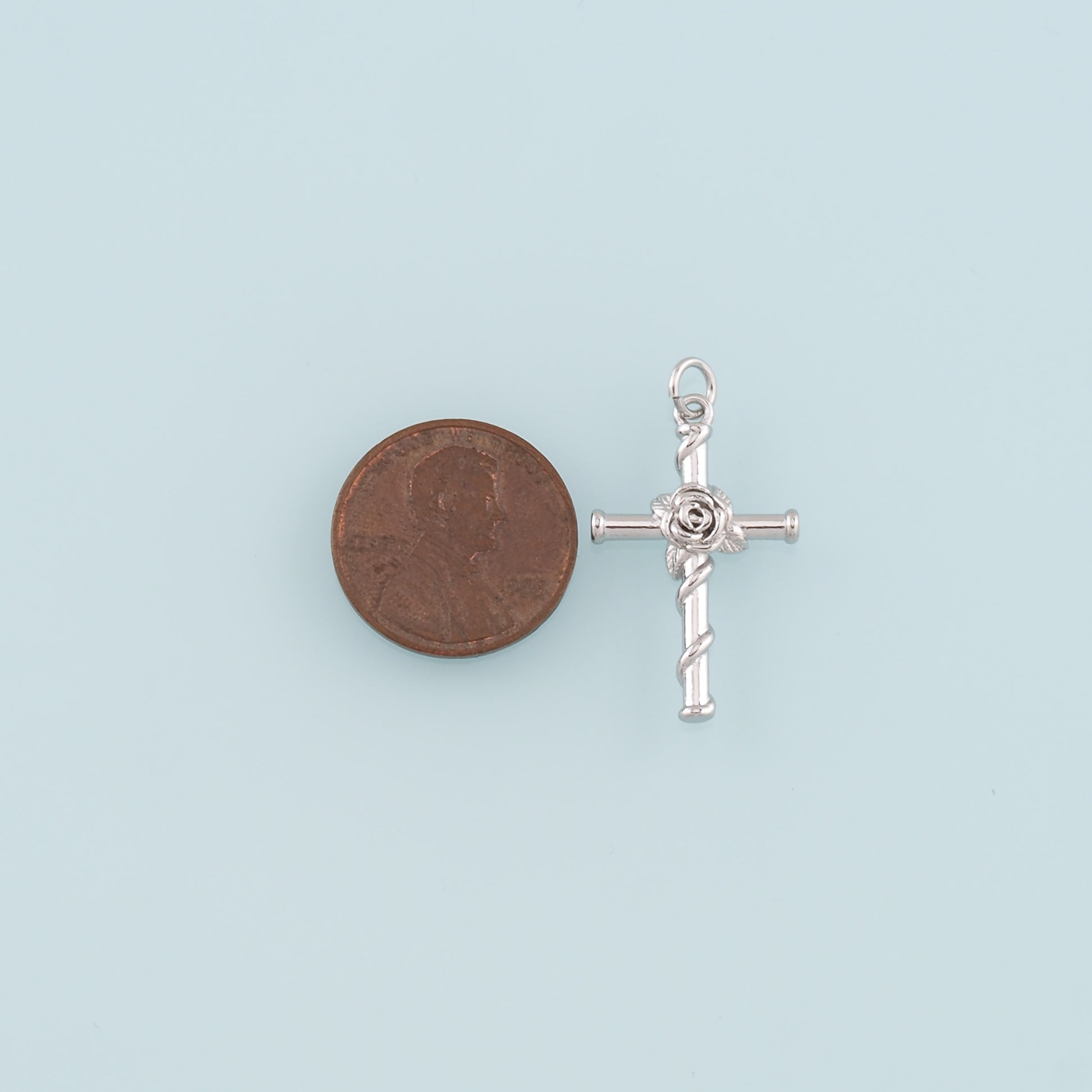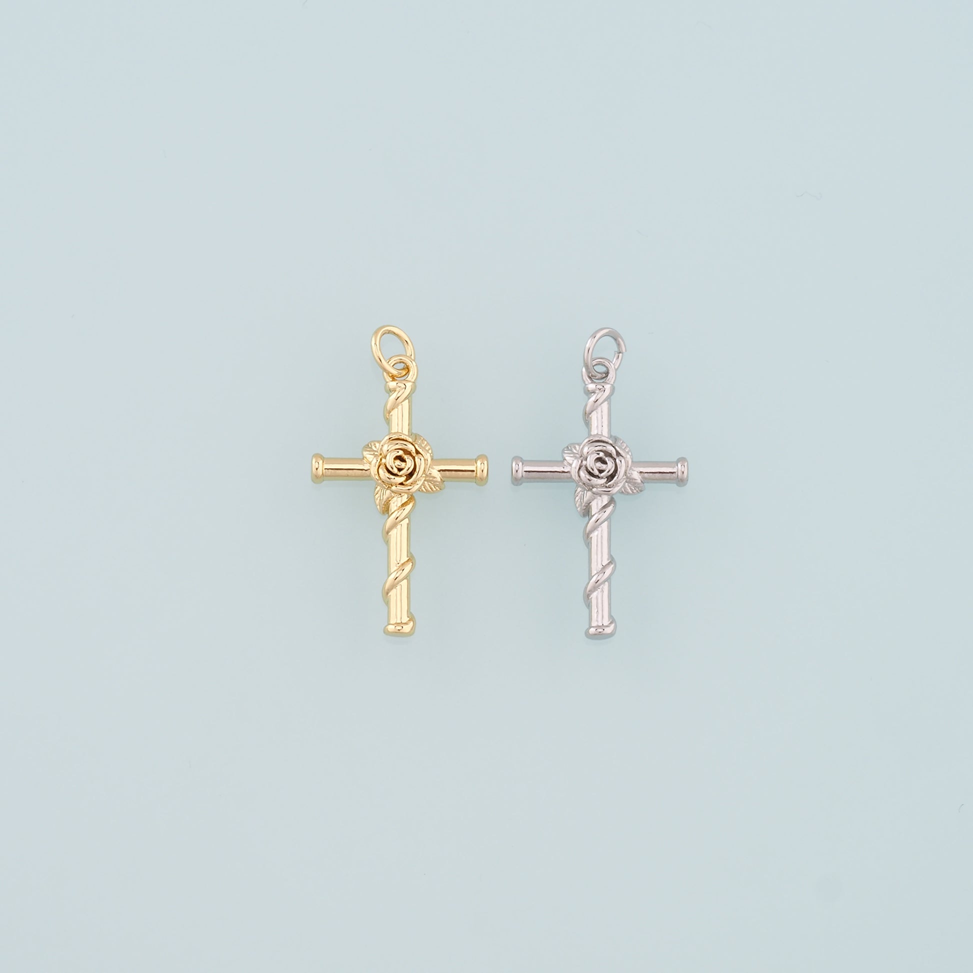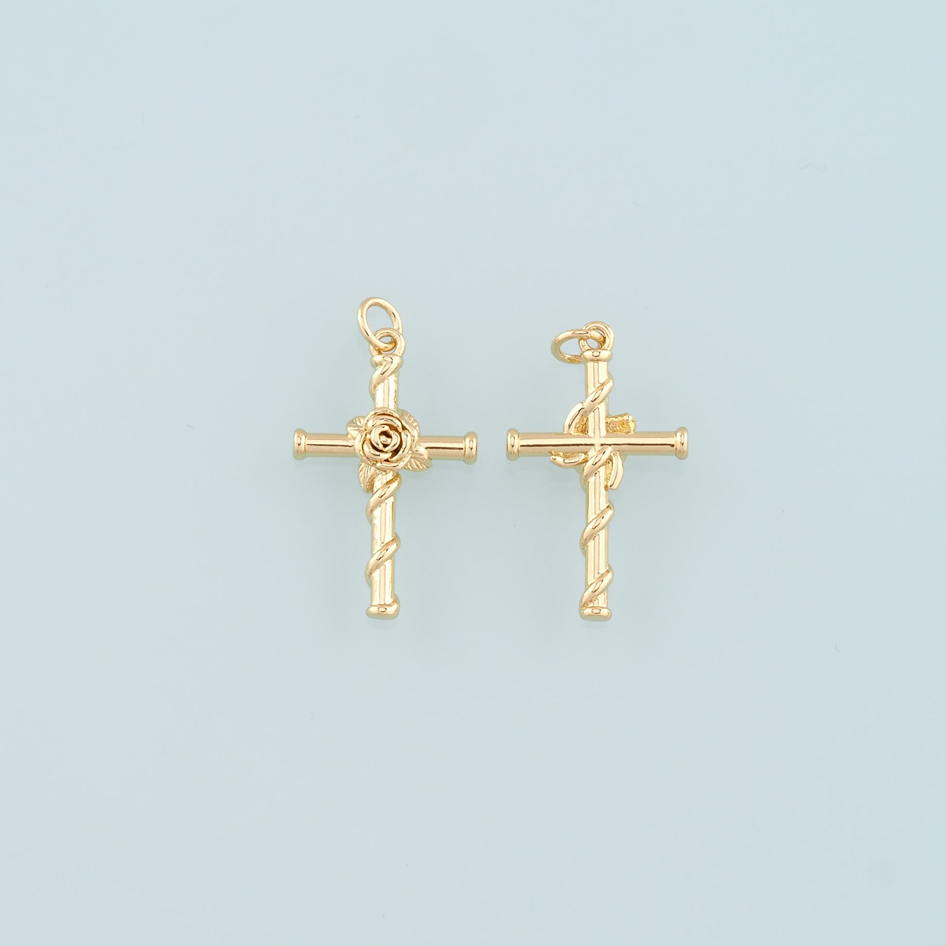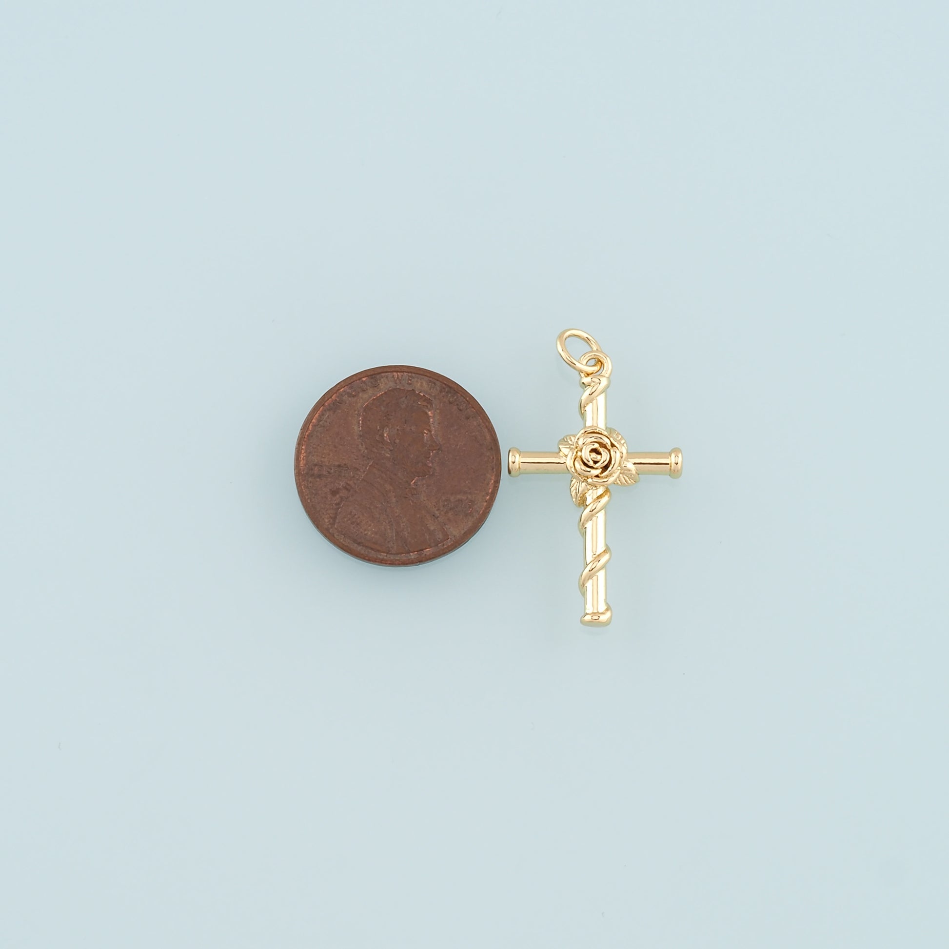 18K Gold Filled Rose Cross Pendant,Dainty Flower Charm Bracelet Necklace for DIY Jewelry Making Supply