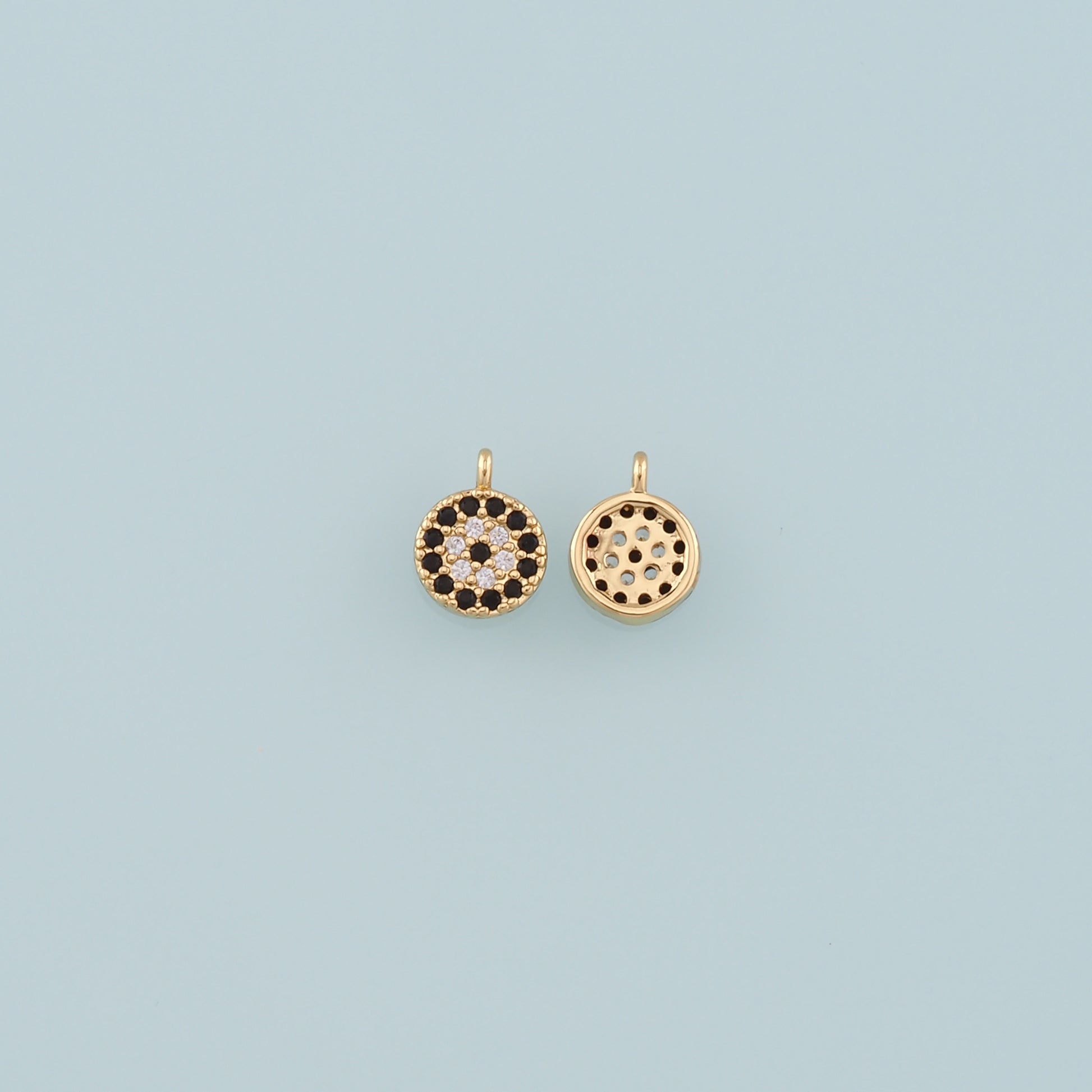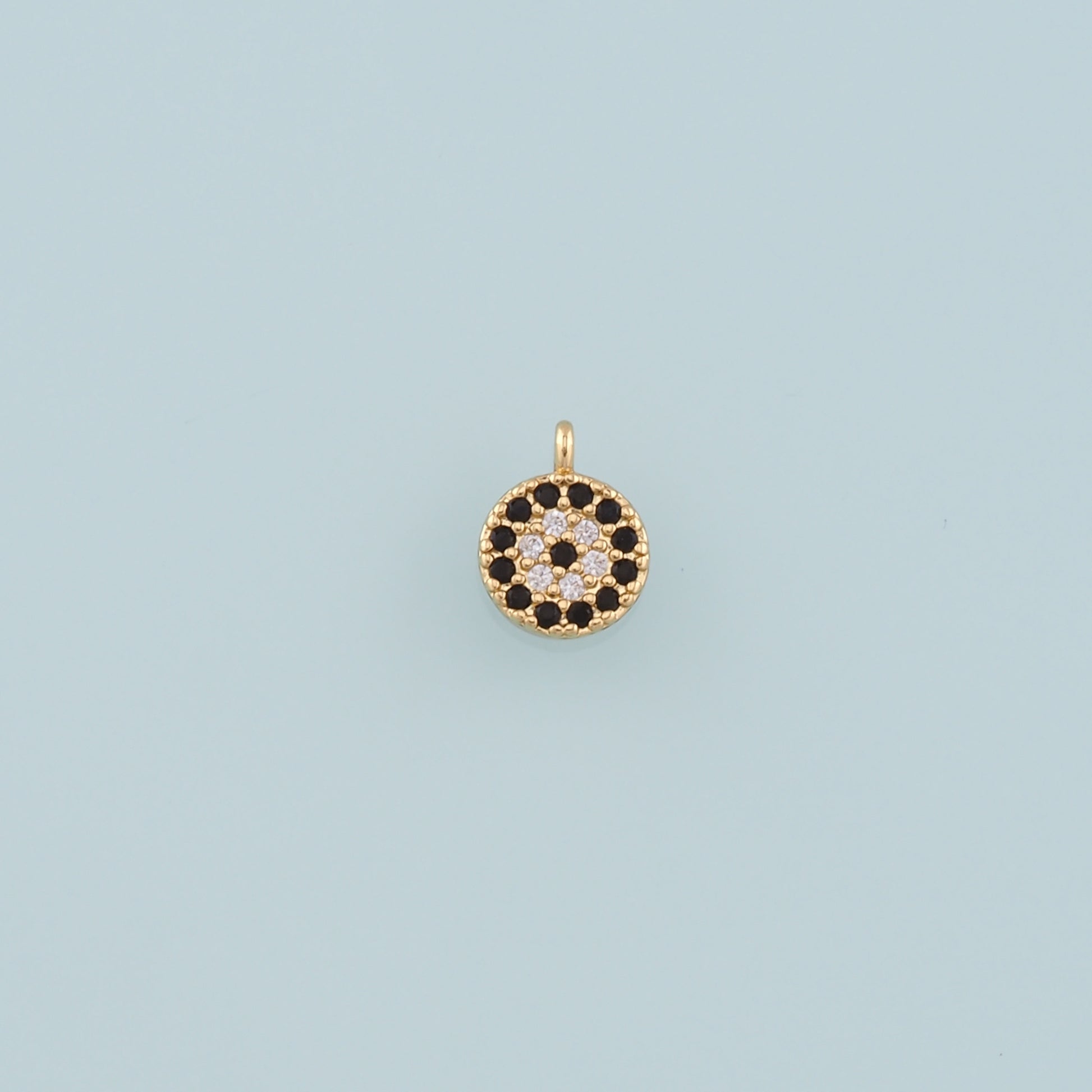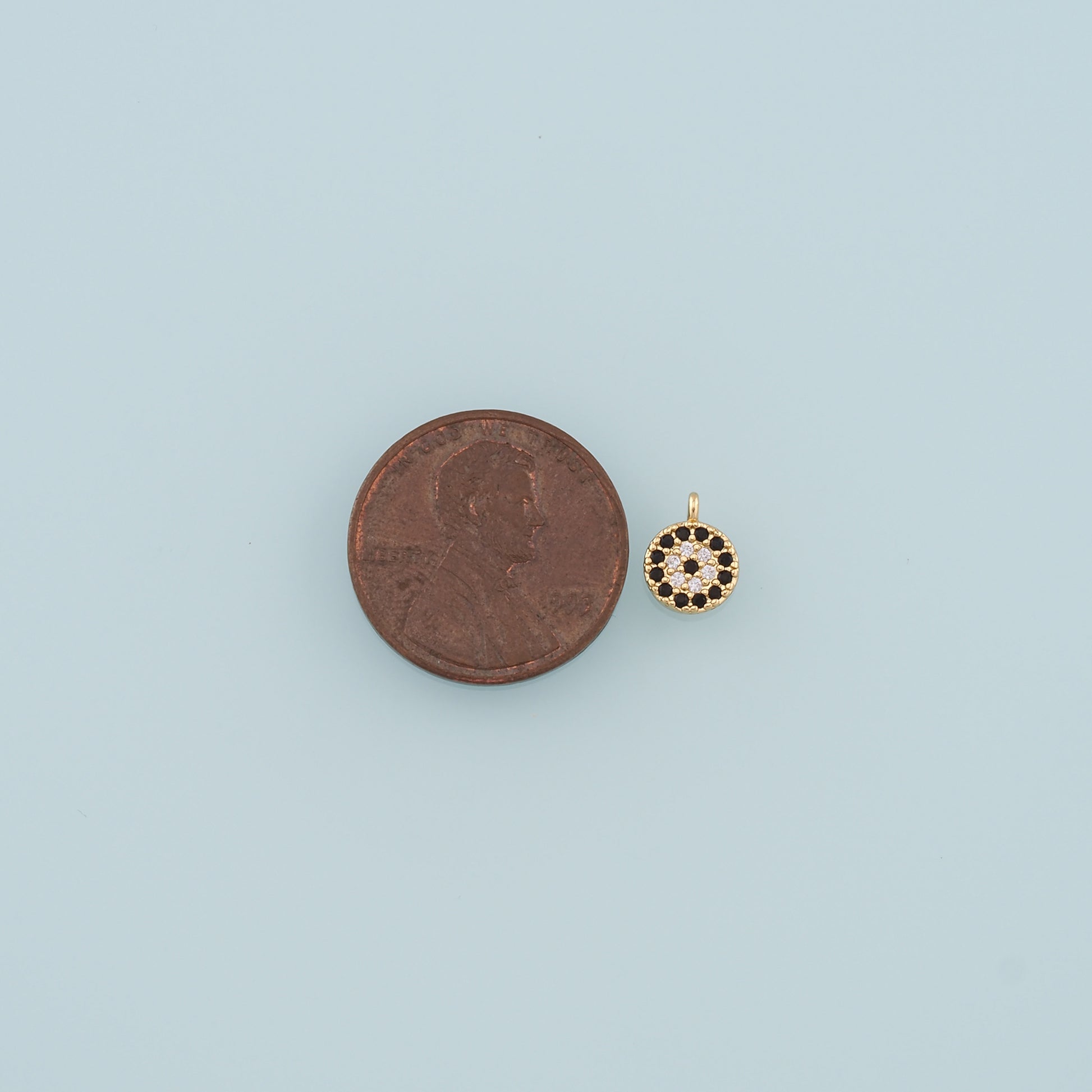 18K Gold Filled Round Evil Eye Pendant,CZ Micro Pave Evil Eye Charm Bracelet Necklace for DIY Jewelry Making Supply