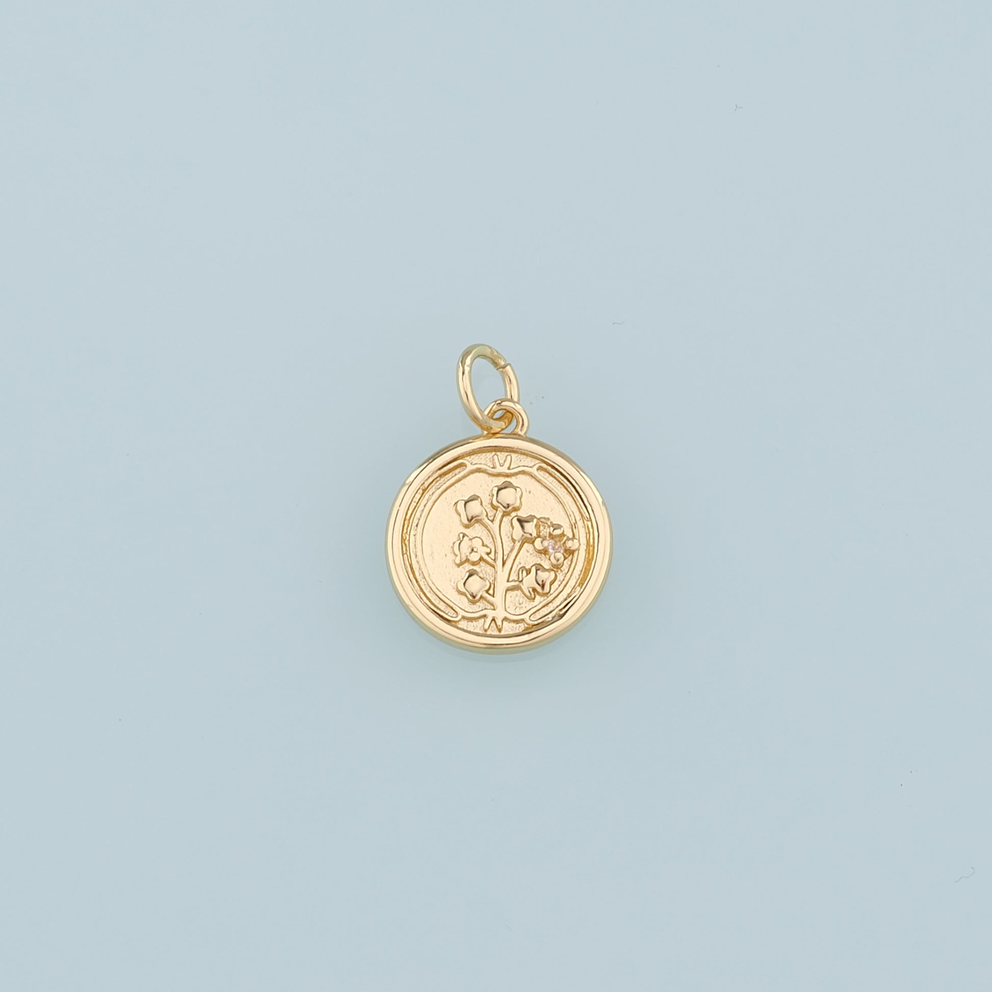 18K Gold Filled Round Flower Pendant,Flower Charm Bracelet Necklace for DIY Jewelry Making Supply