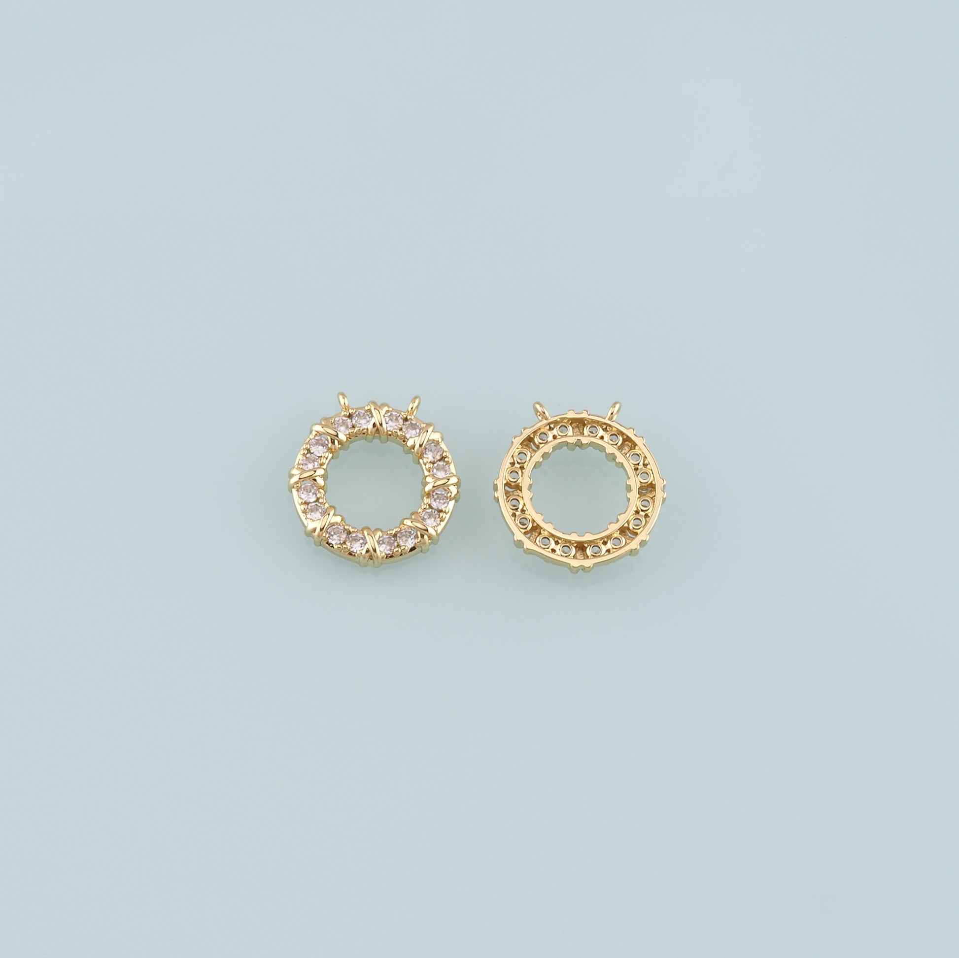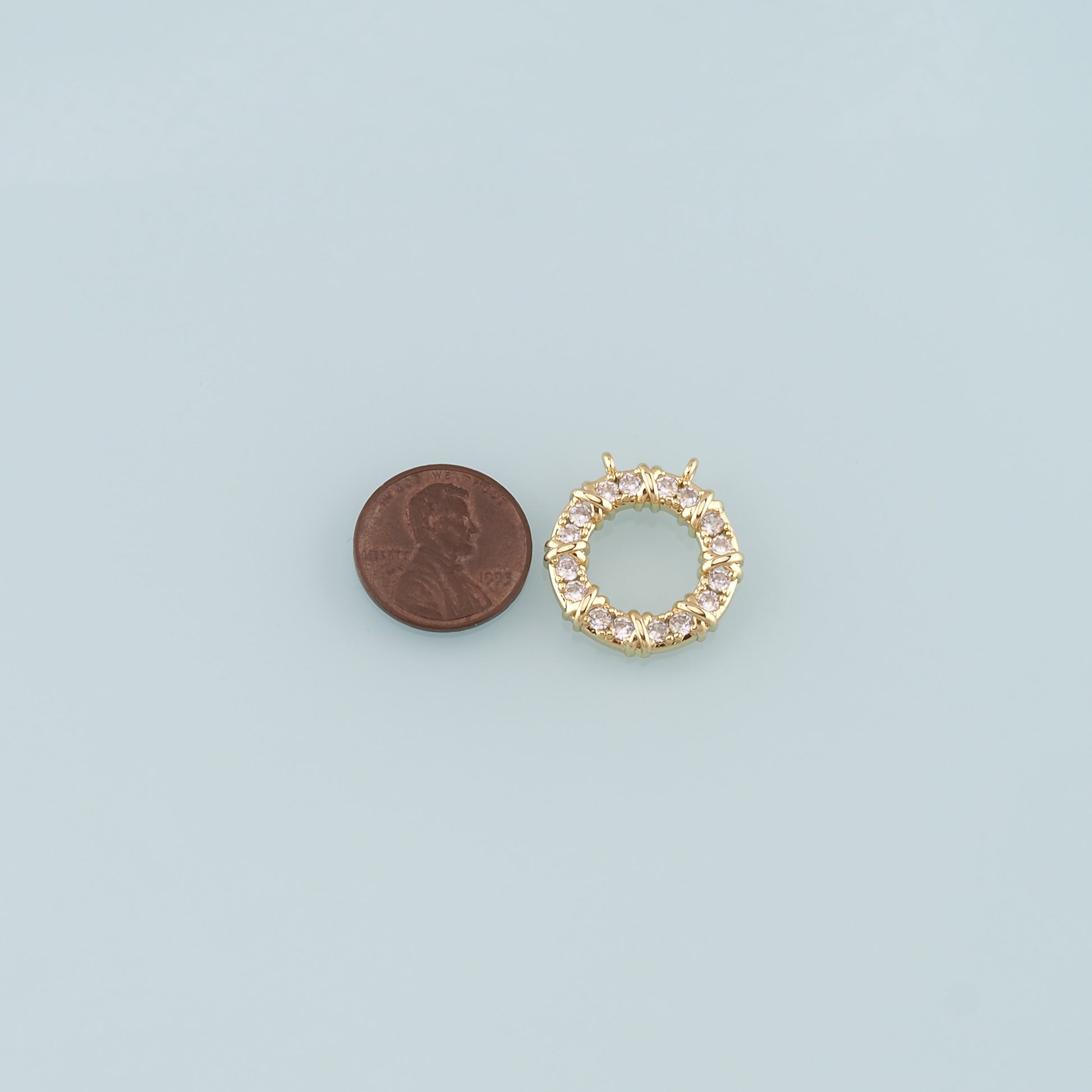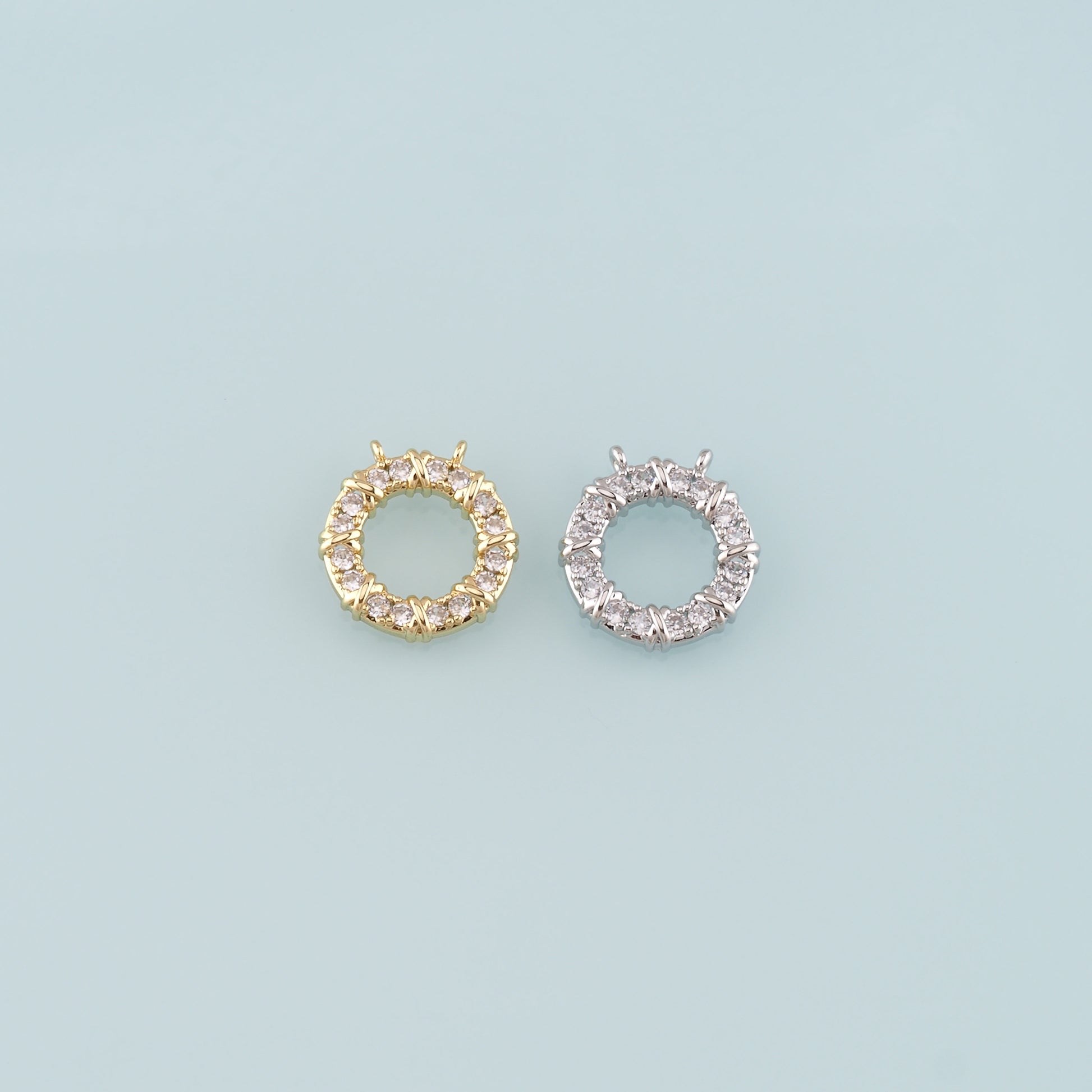 18K Gold Filled Round Pendant,CZ Micro Pave Round Charm Bracelet Necklace for DIY Jewelry Making Supply