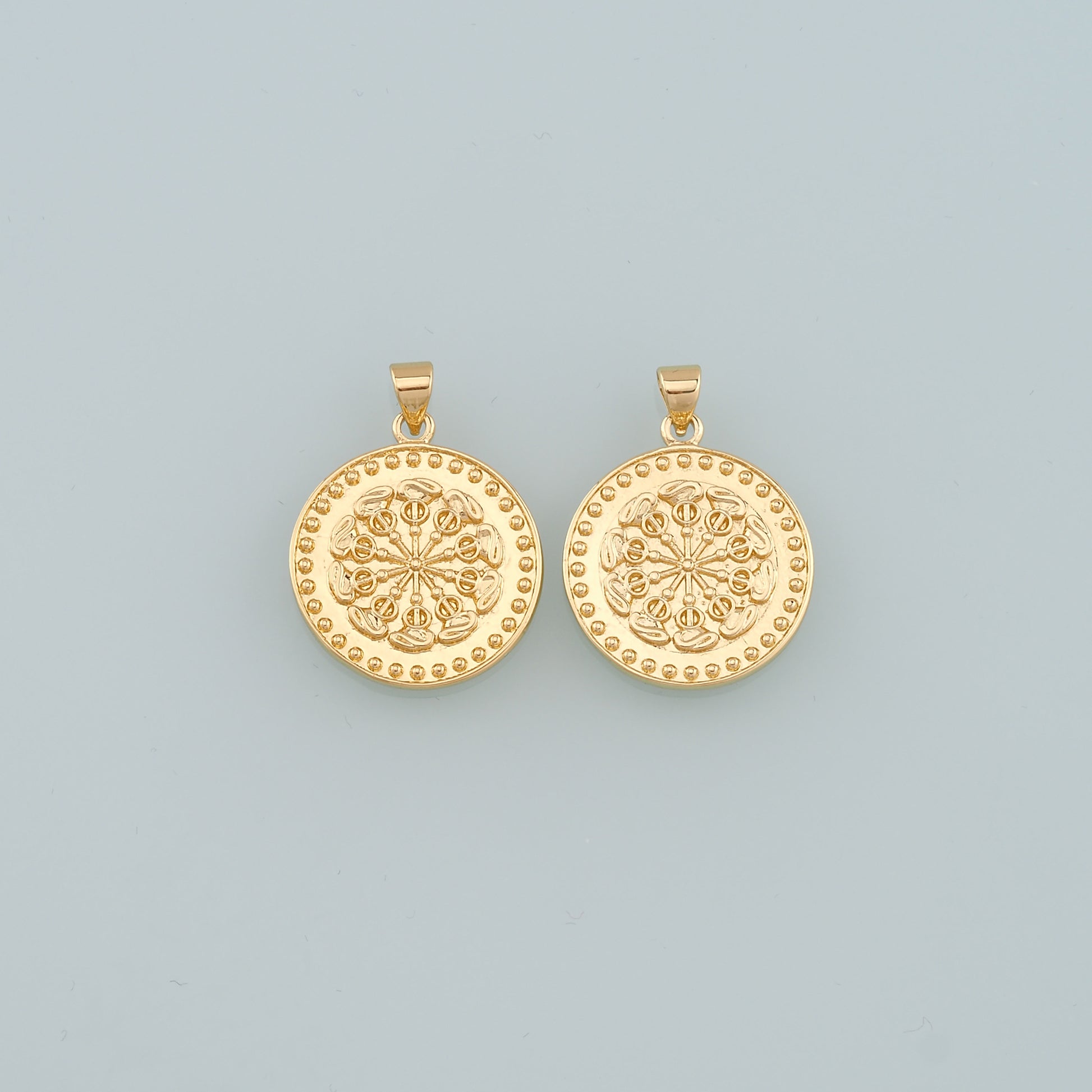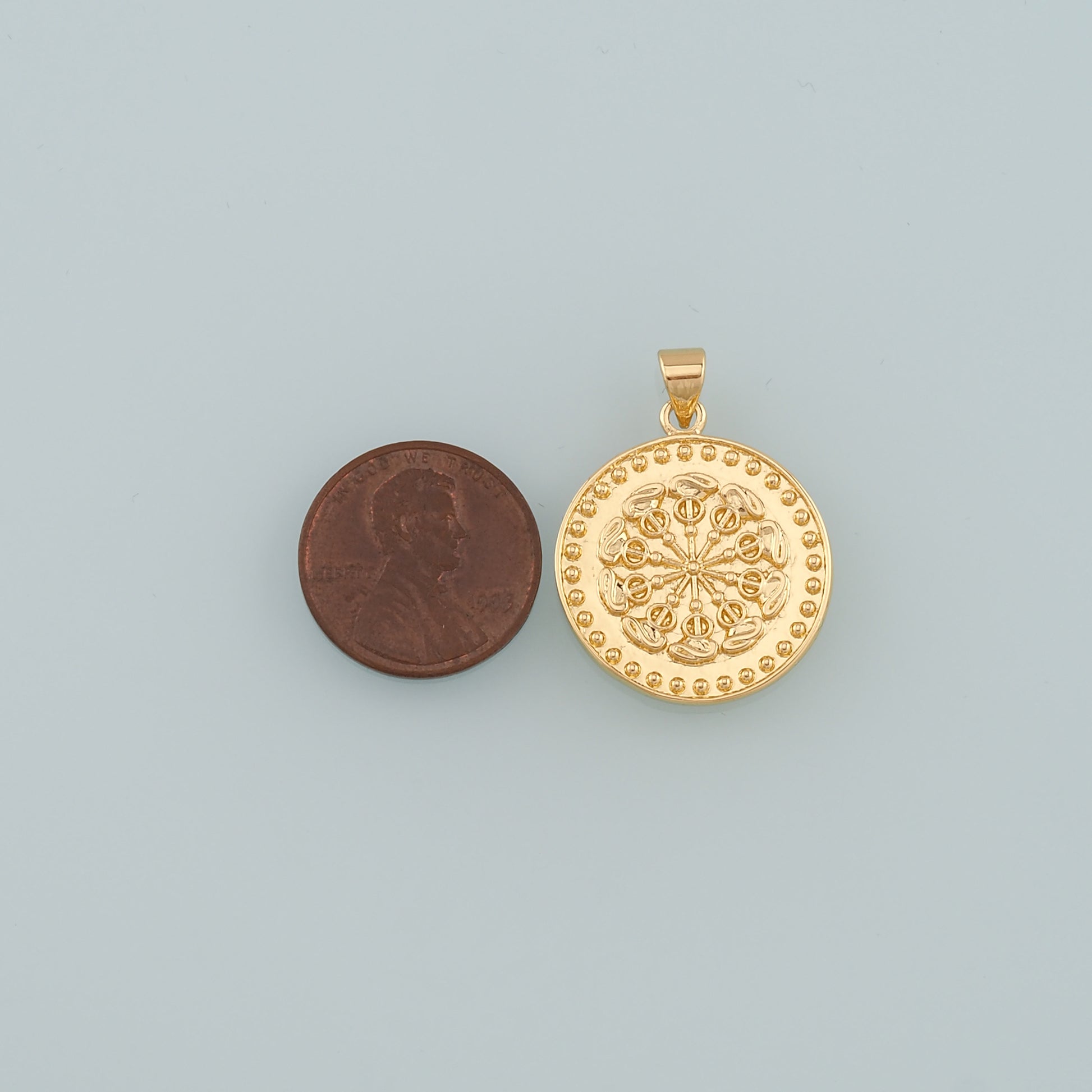 18K Gold Filled Round Pendant,Dainty Round Coin Charm Bracelet Necklace for DIY Jewelry Making Supply