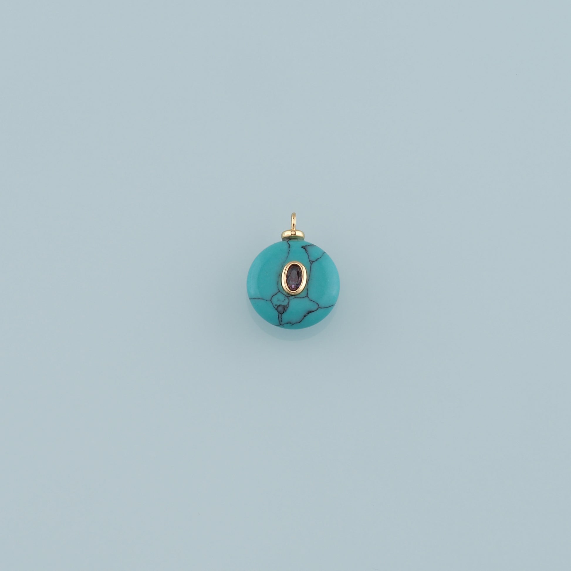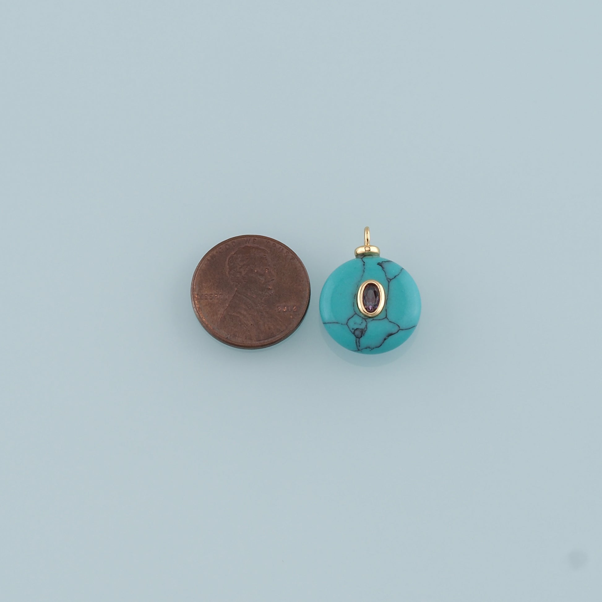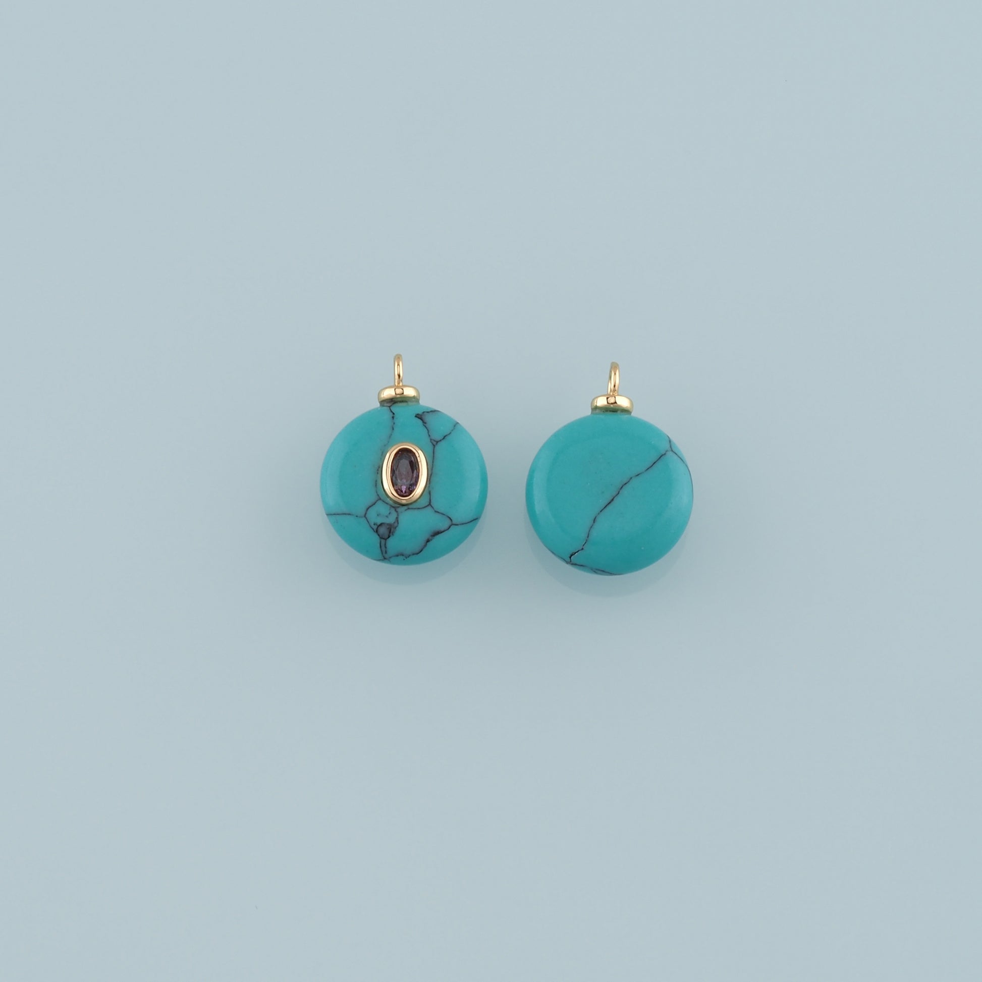 18K Gold Filled Round Pendant,Natural Stone Charm Bracelet Necklace for DIY Jewelry Making Supply