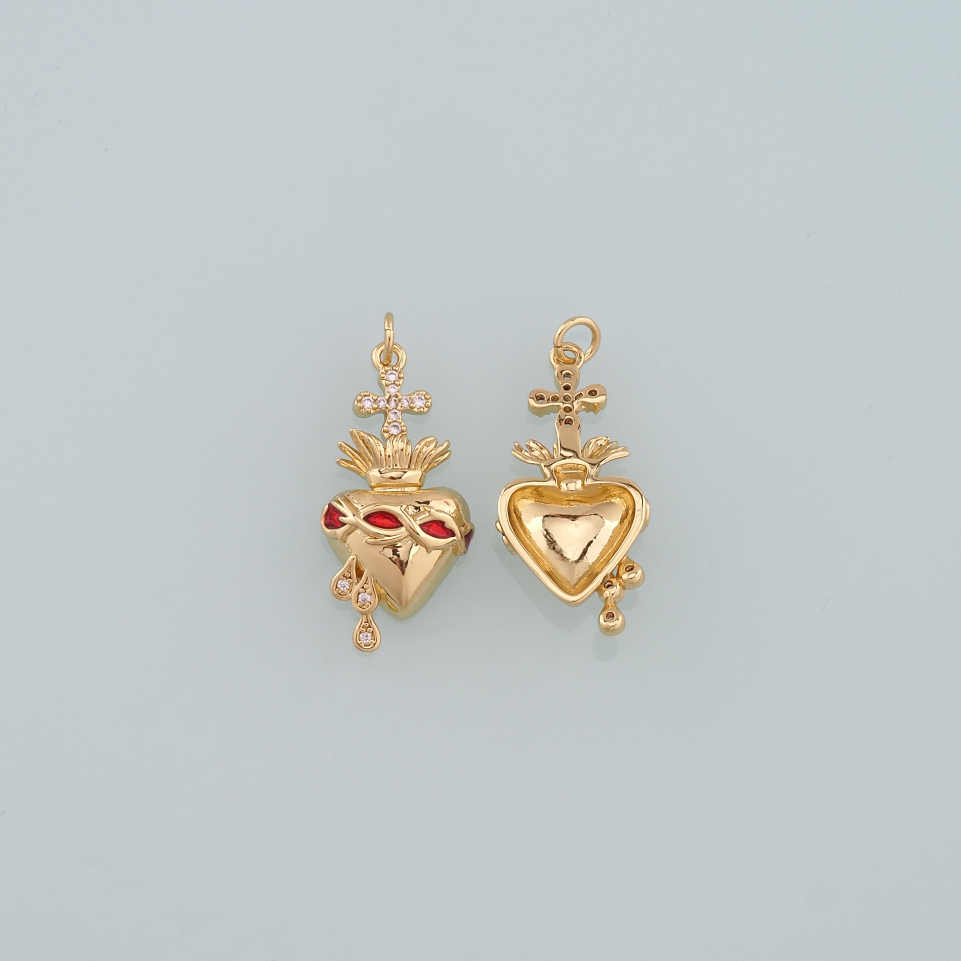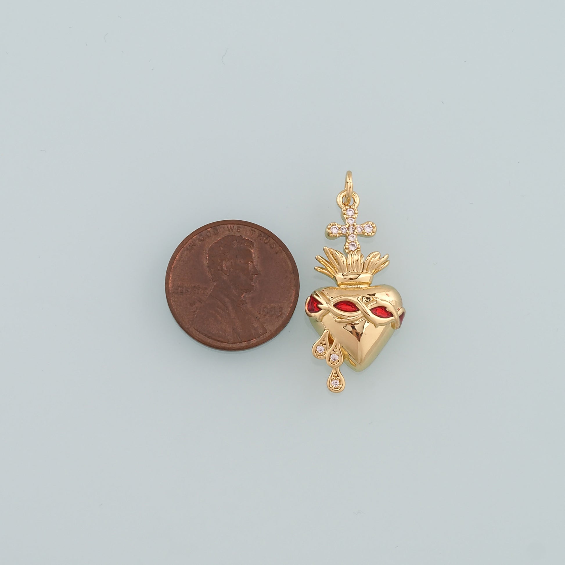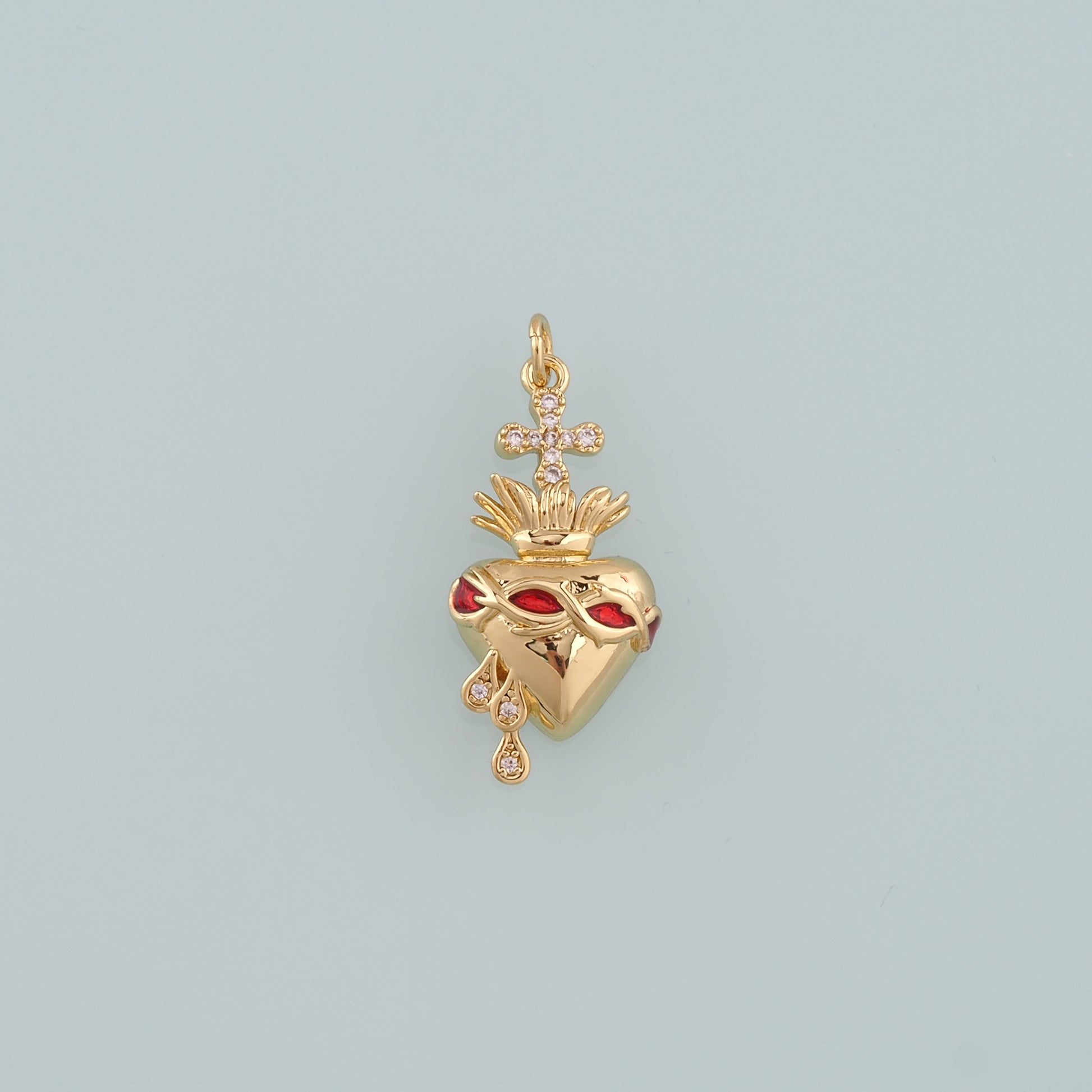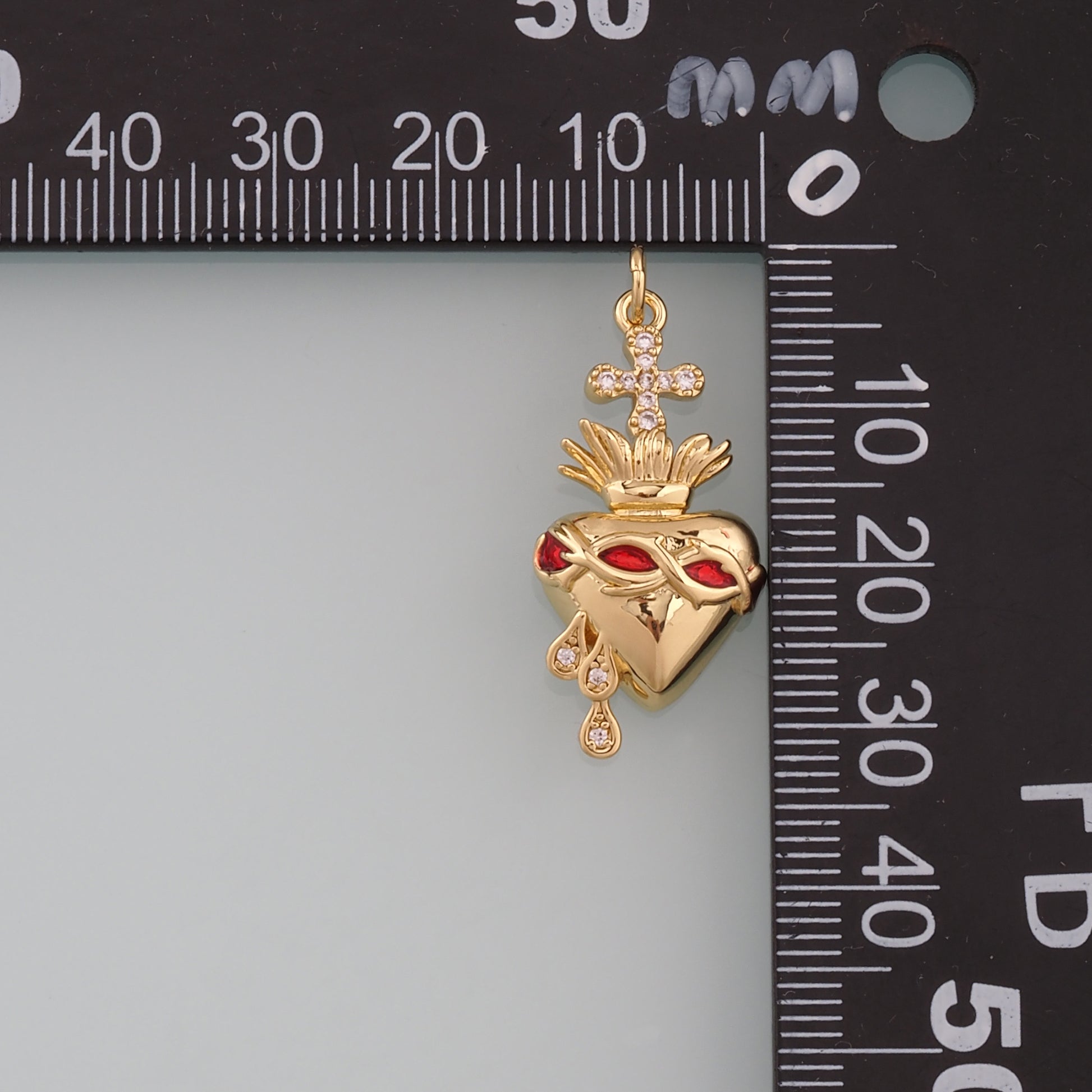 18K Gold Filled Sacred heart Pendant,CZ Micro Pave Religion Charm Bracelet Necklace for DIY Jewelry Making Supply
