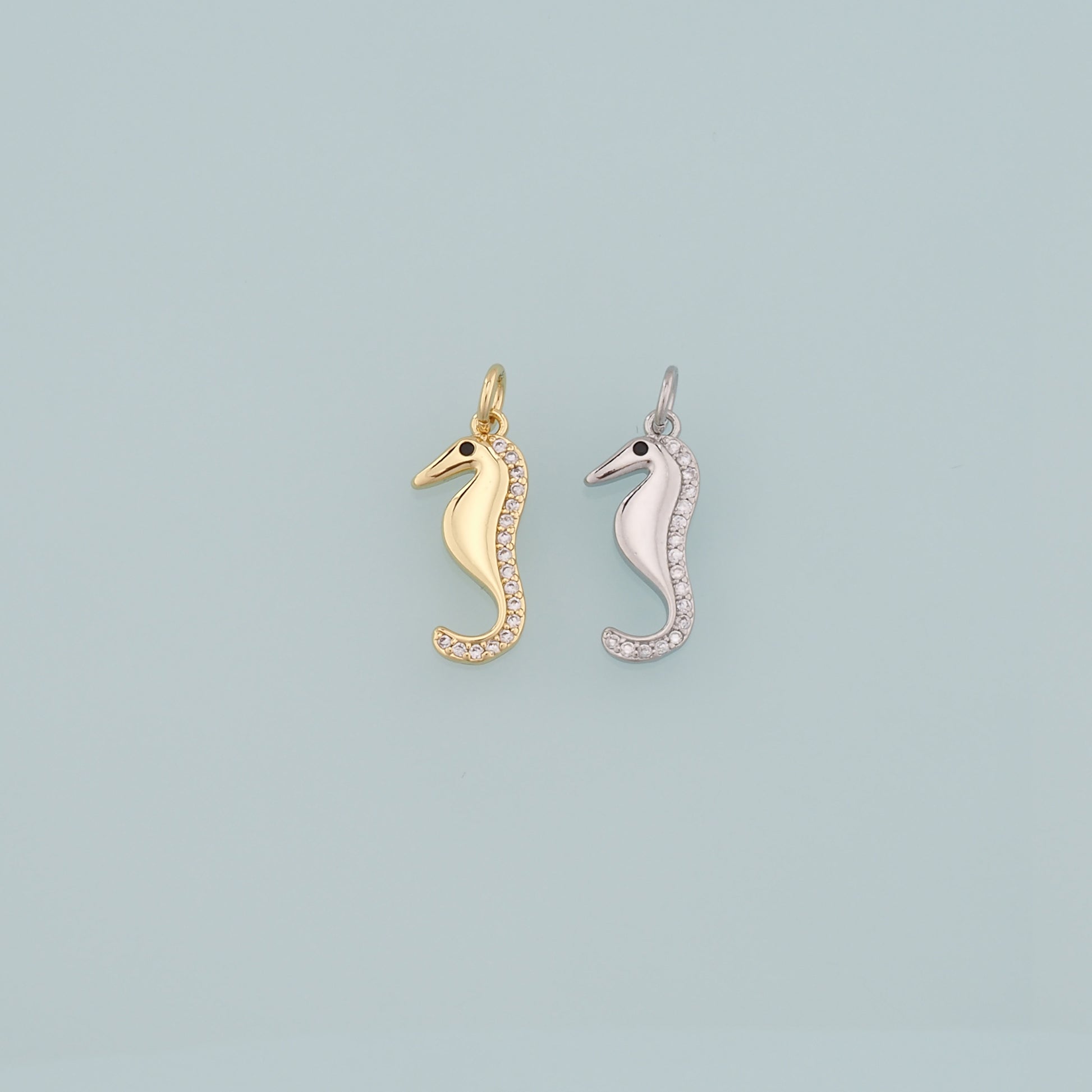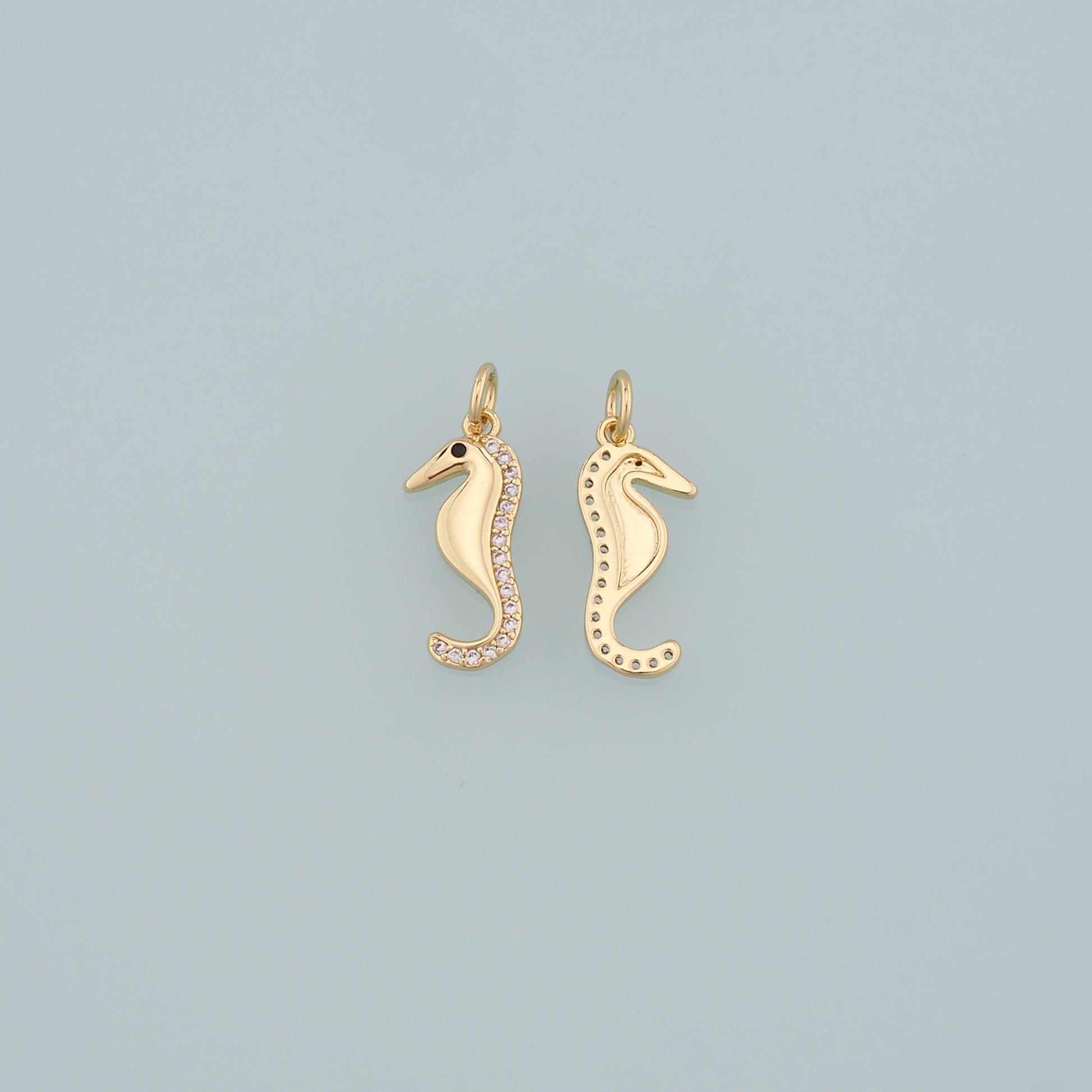 18K Gold Filled Seahorse Pendant,CZ Micro Pave Seahorse Charm Bracelet Necklace for DIY Jewelry Making Supply
