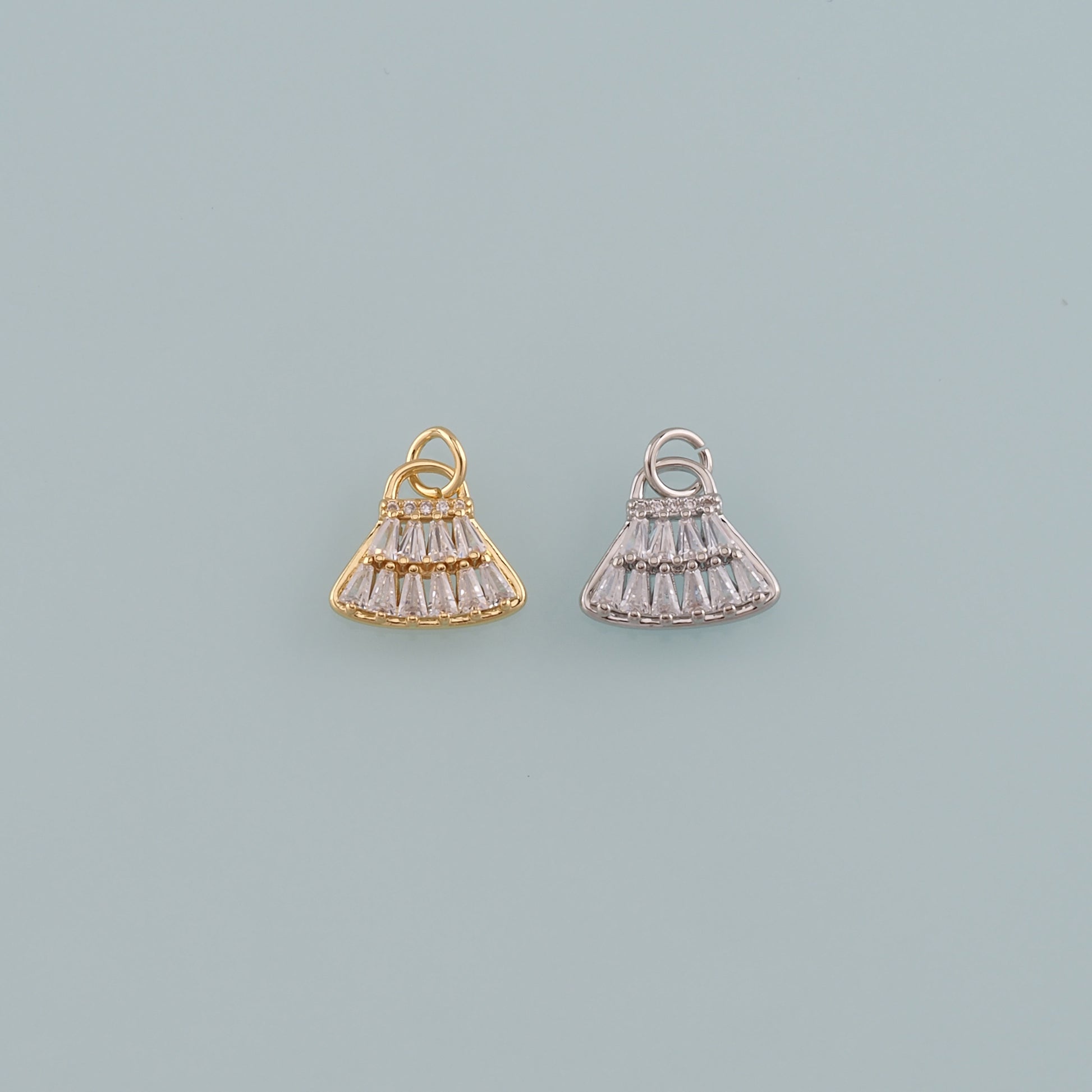 18K Gold Filled Sector Pendant,CZ Micro Pave Sector Charm Bracelet Necklace for DIY Jewelry Making Supply