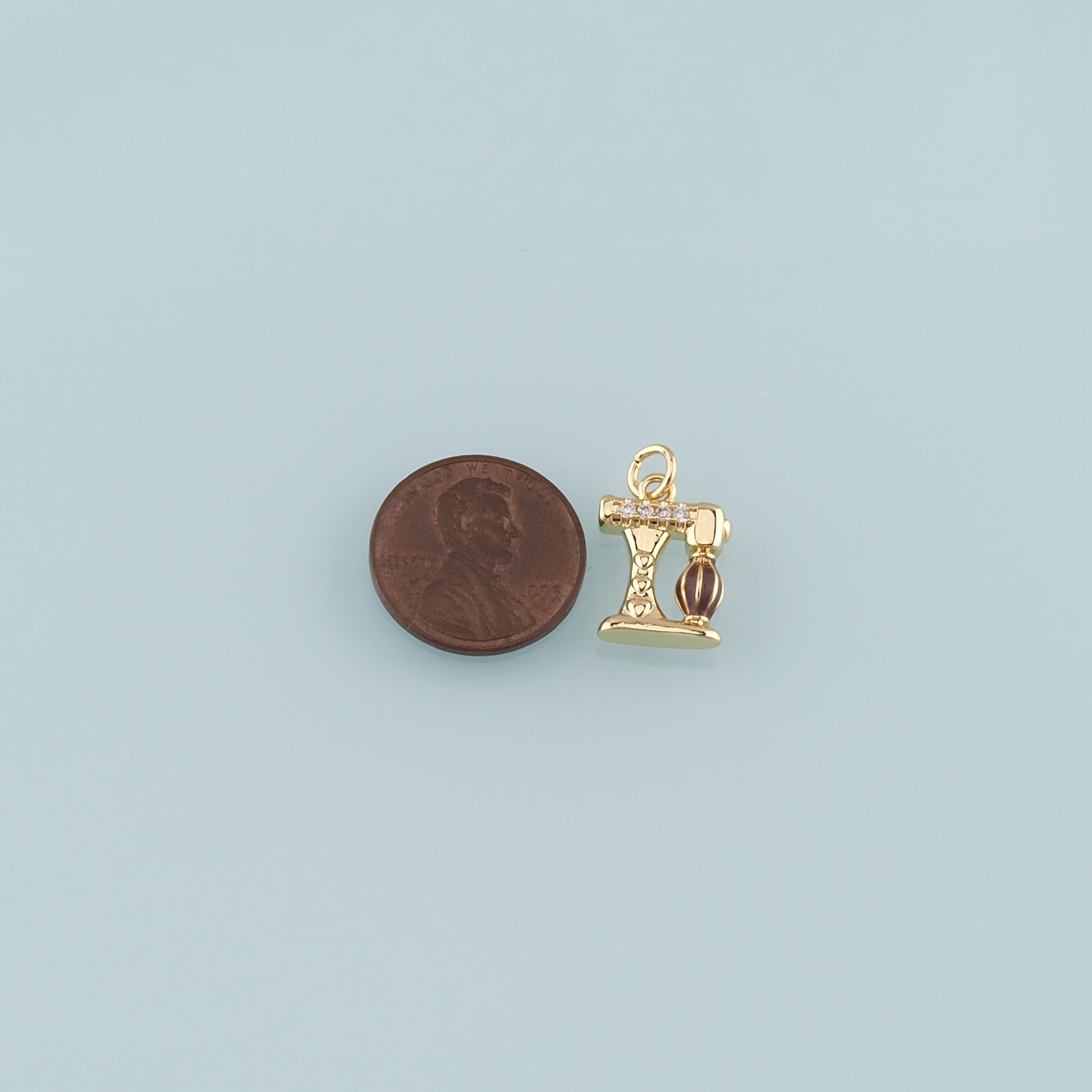 18K Gold Filled Sewing Machine Pendant,Enamel Sewing Machine Charm Bracelet Necklace for DIY Jewelry Making Supply