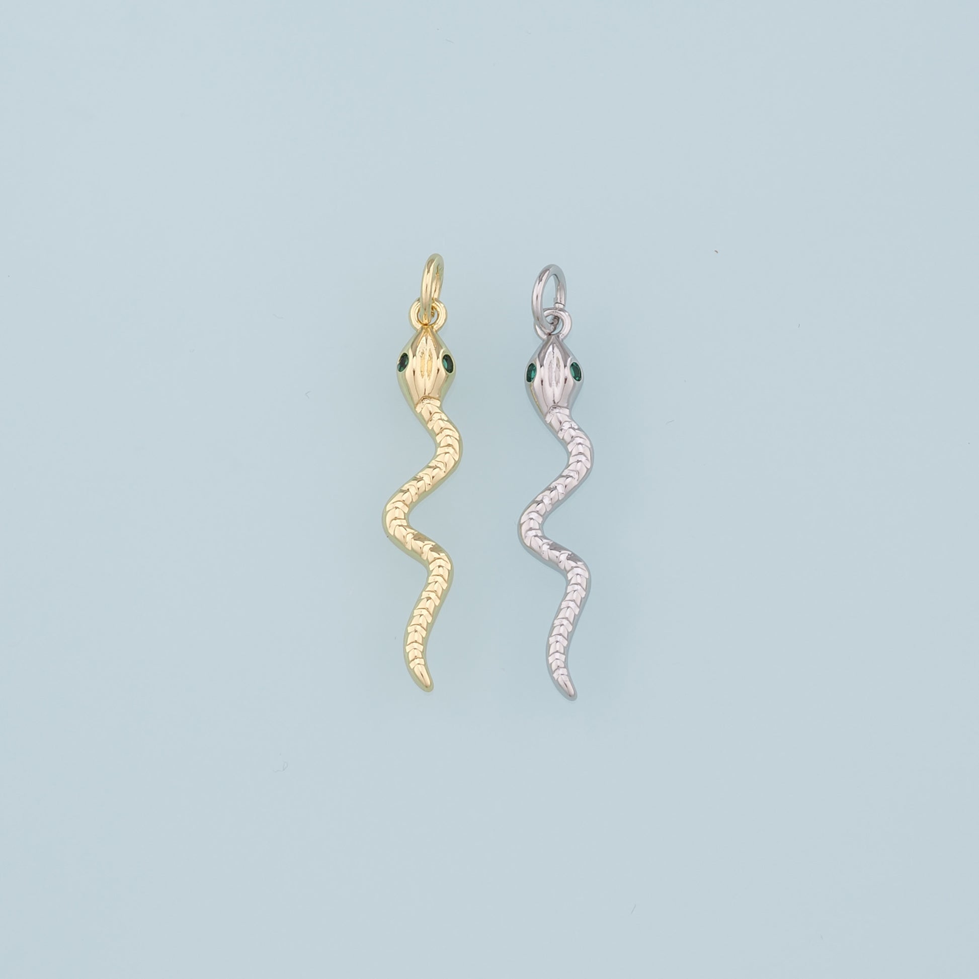 18K Gold Filled Snake Pendant,Dainty Snake Charm Bracelet Necklace for DIY Jewelry Making Supply