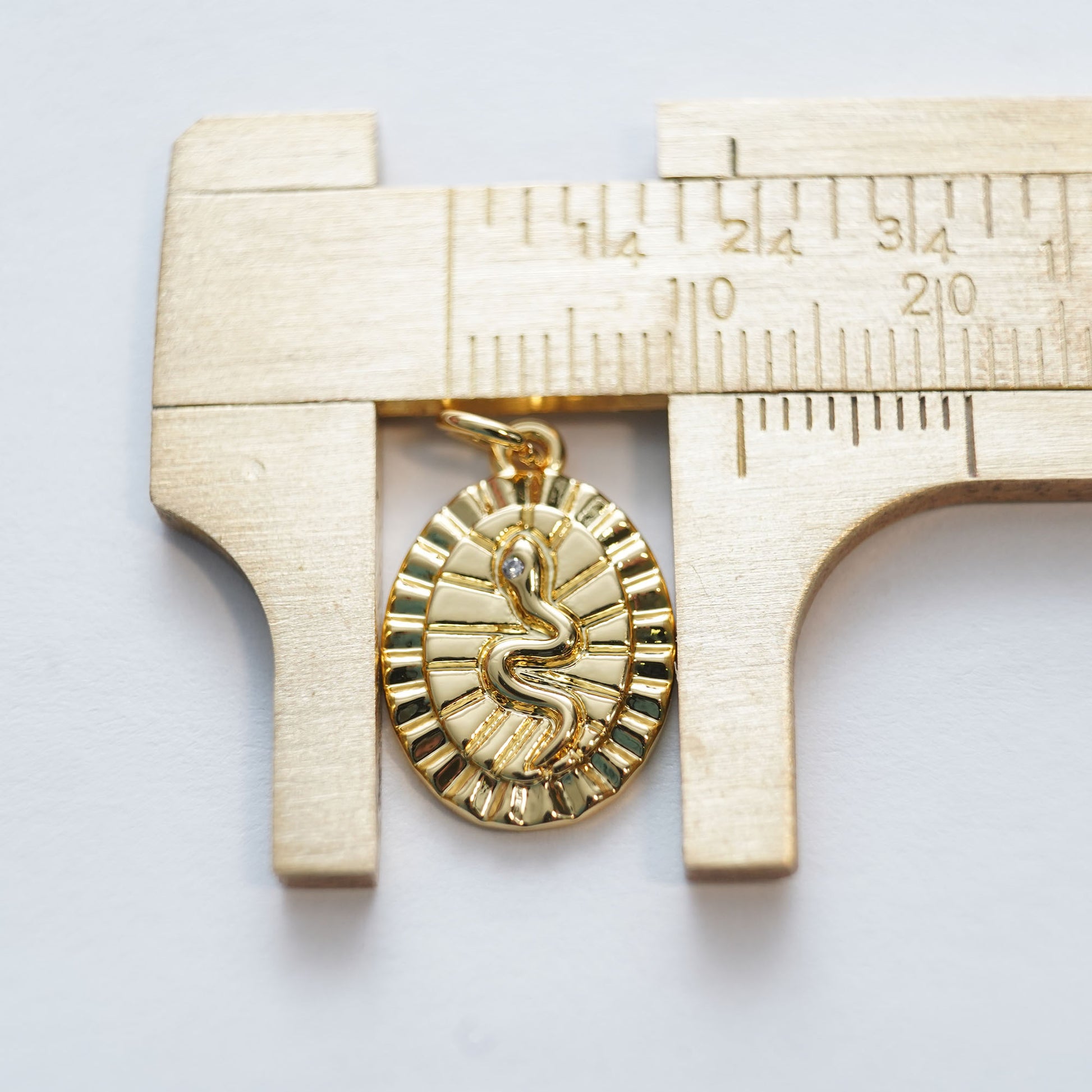 18K Gold Filled Snake Pendant,Oval Snake Charms Bracelet Necklace for DIY Jewelry Making Supply
