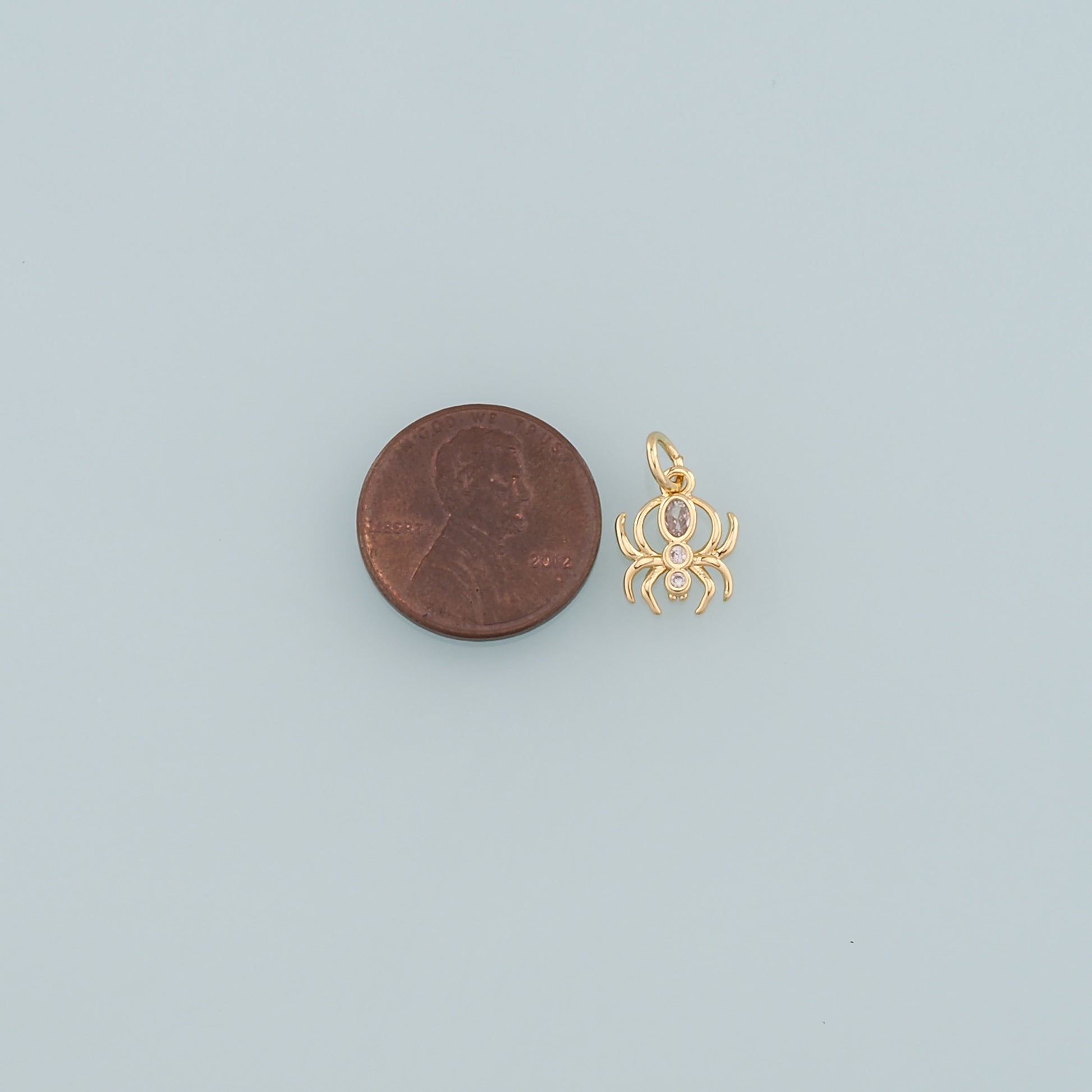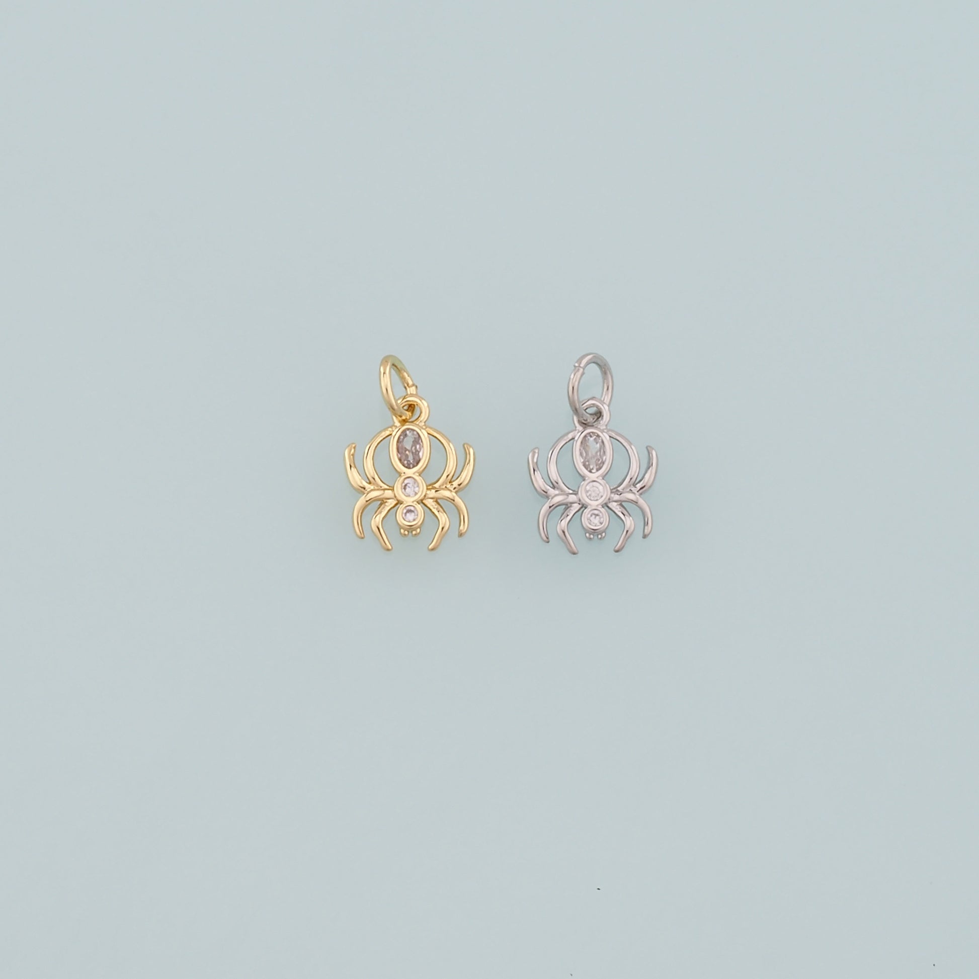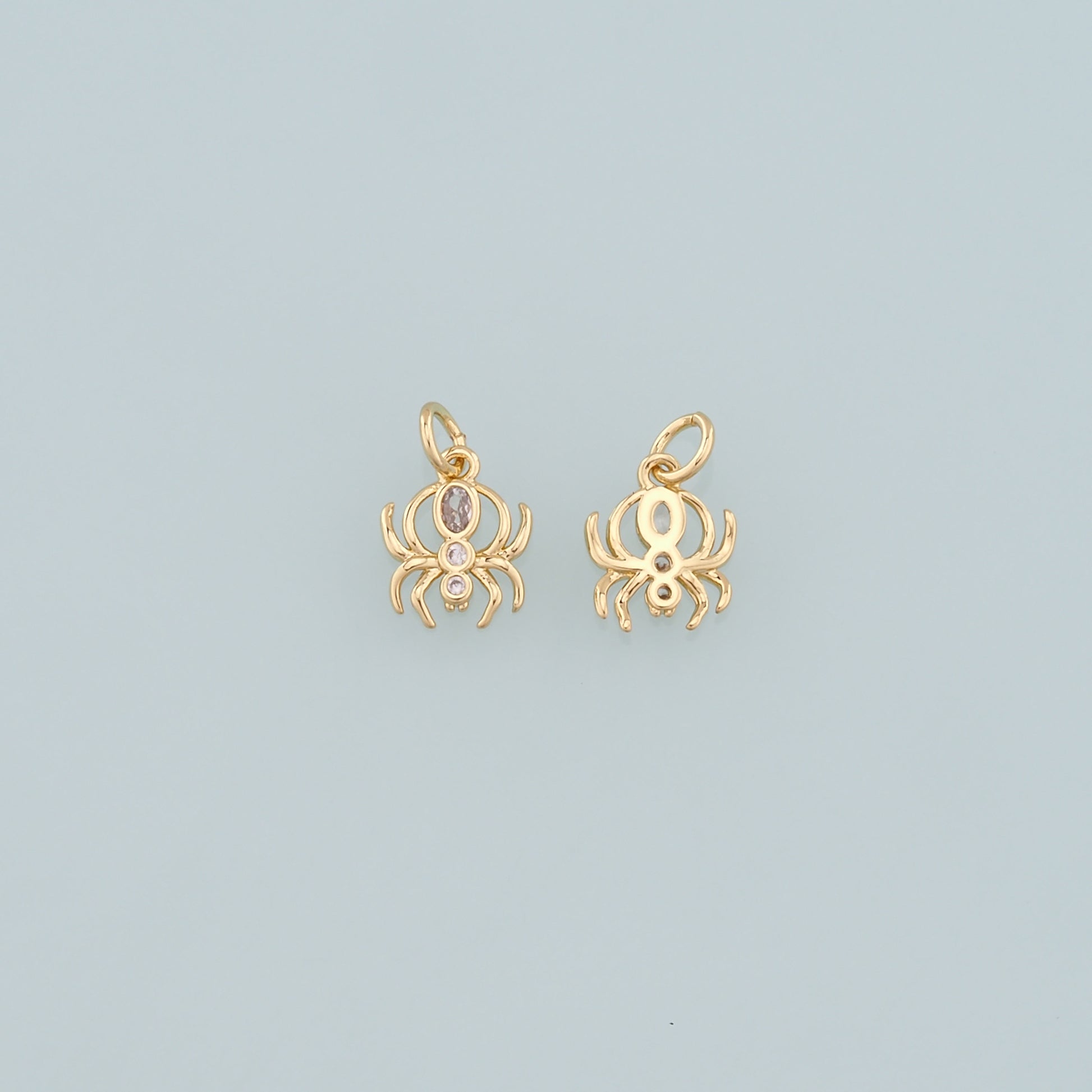 18K Gold Filled Spider Pendant,CZ Micro Pave Spider Charm Bracelet Necklace for DIY Jewelry Making Supply