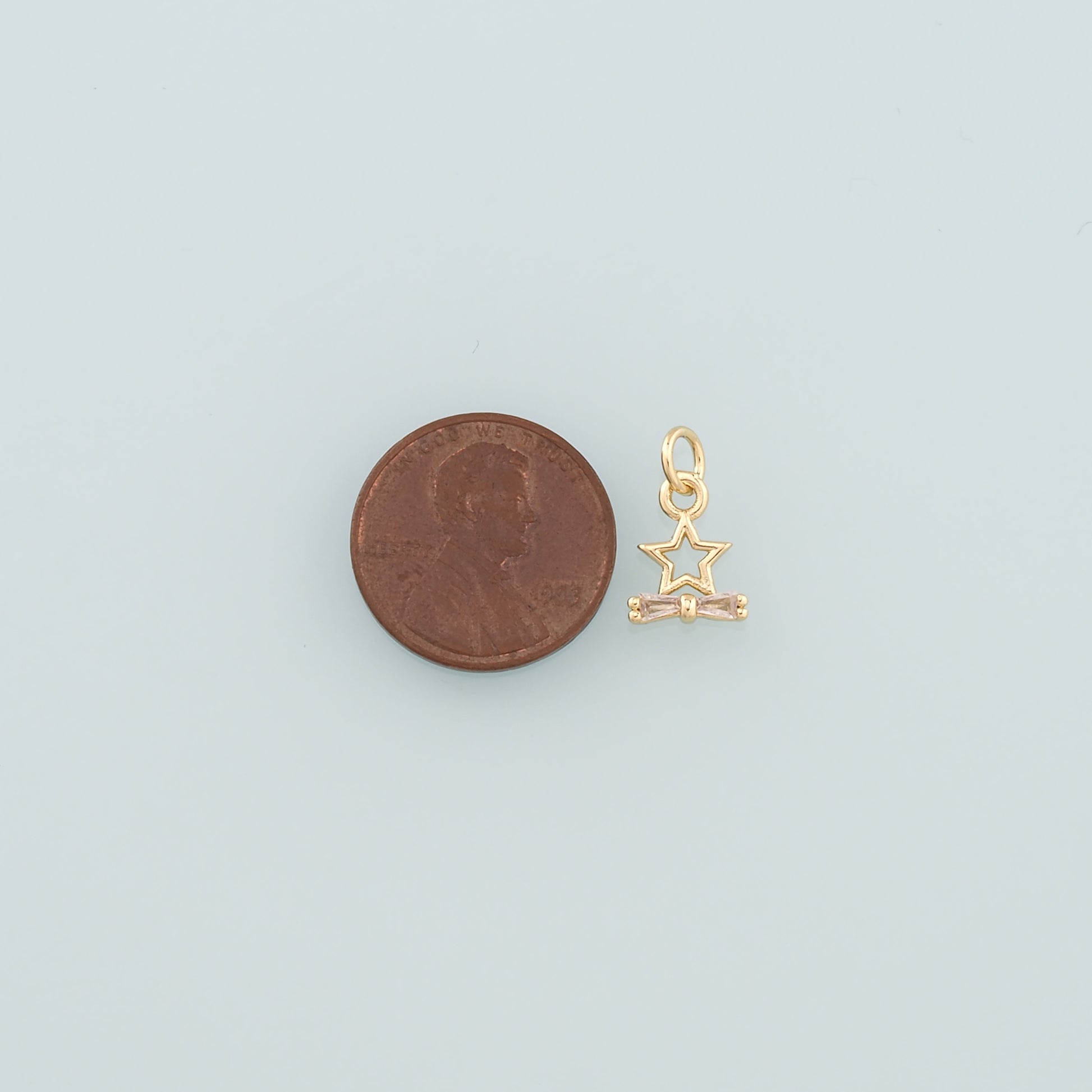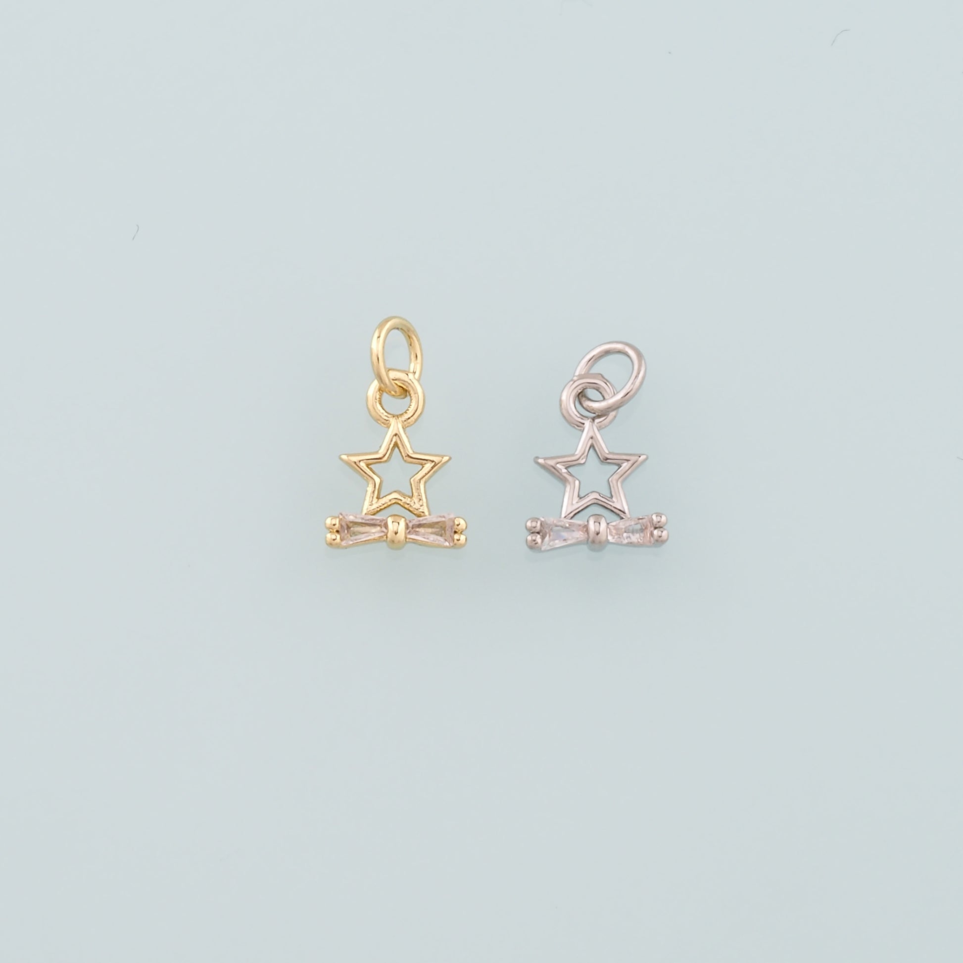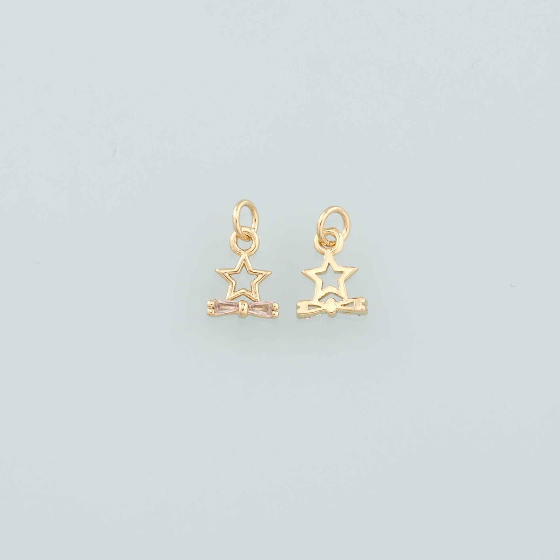 18K Gold Filled Star Bow Pendant,Dainty Celestial Charm Bracelet Necklace for DIY Jewelry Making Supply