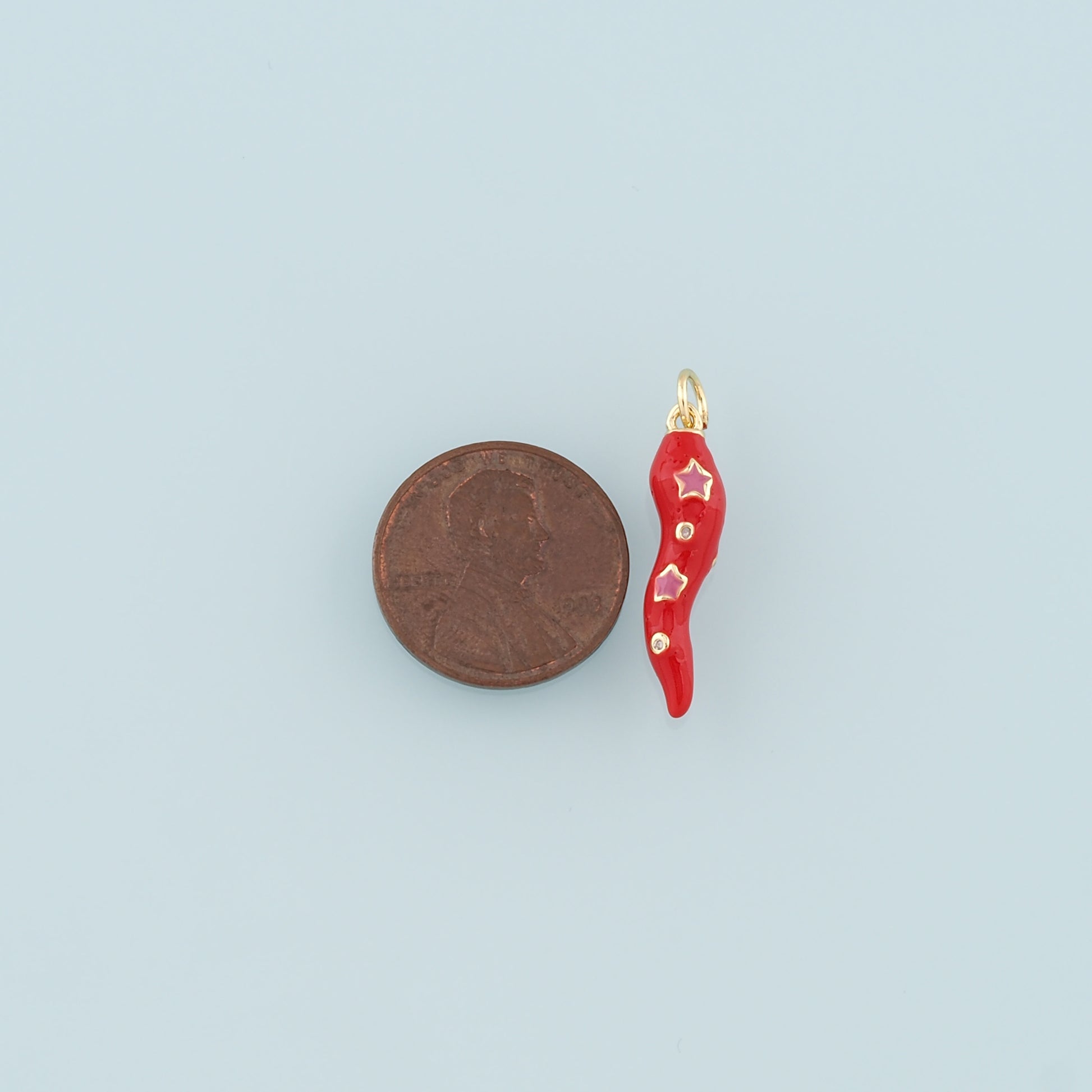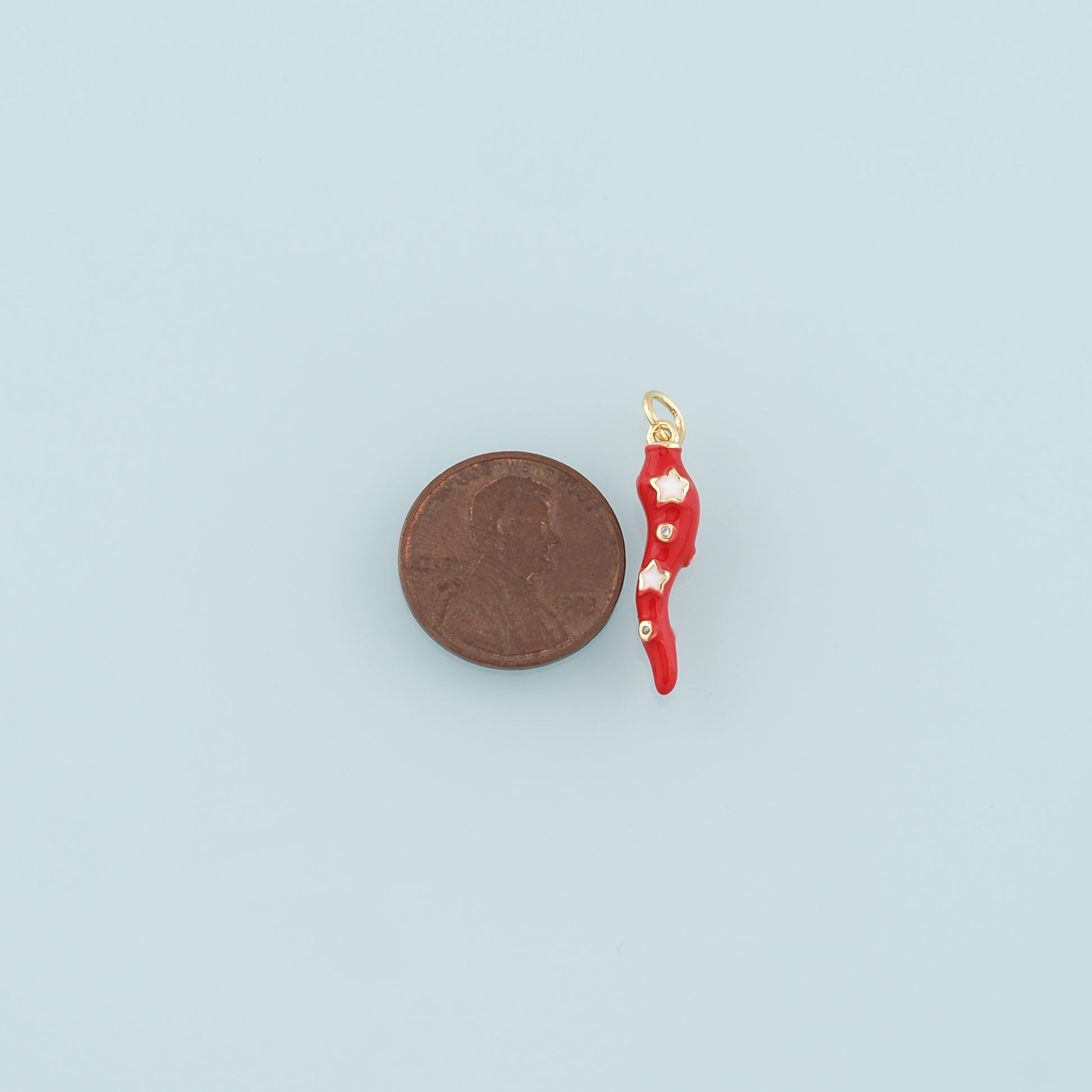 18K Gold Filled Star Chili Pendant,Enamel Pepper Charm Bracelet Necklace for DIY Jewelry Making Supply