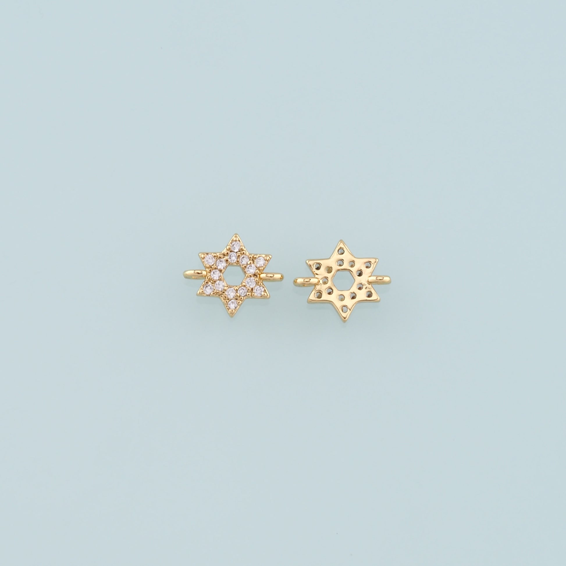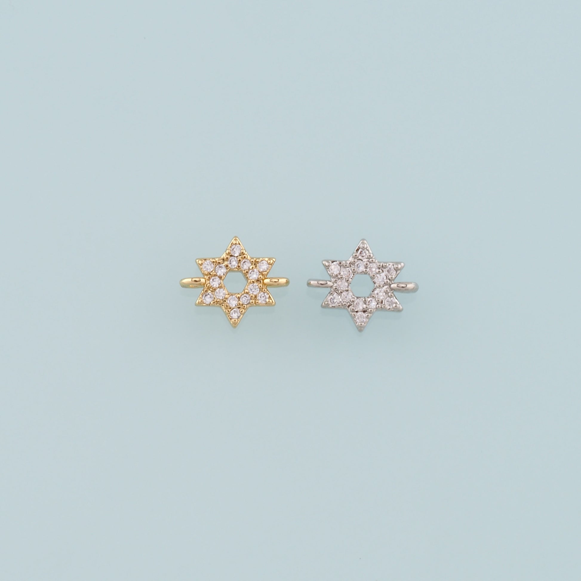 18K Gold Filled Star Connector,CZ Micro Pave Celestial Charm Bracelet Necklace for DIY Jewelry Making Supply