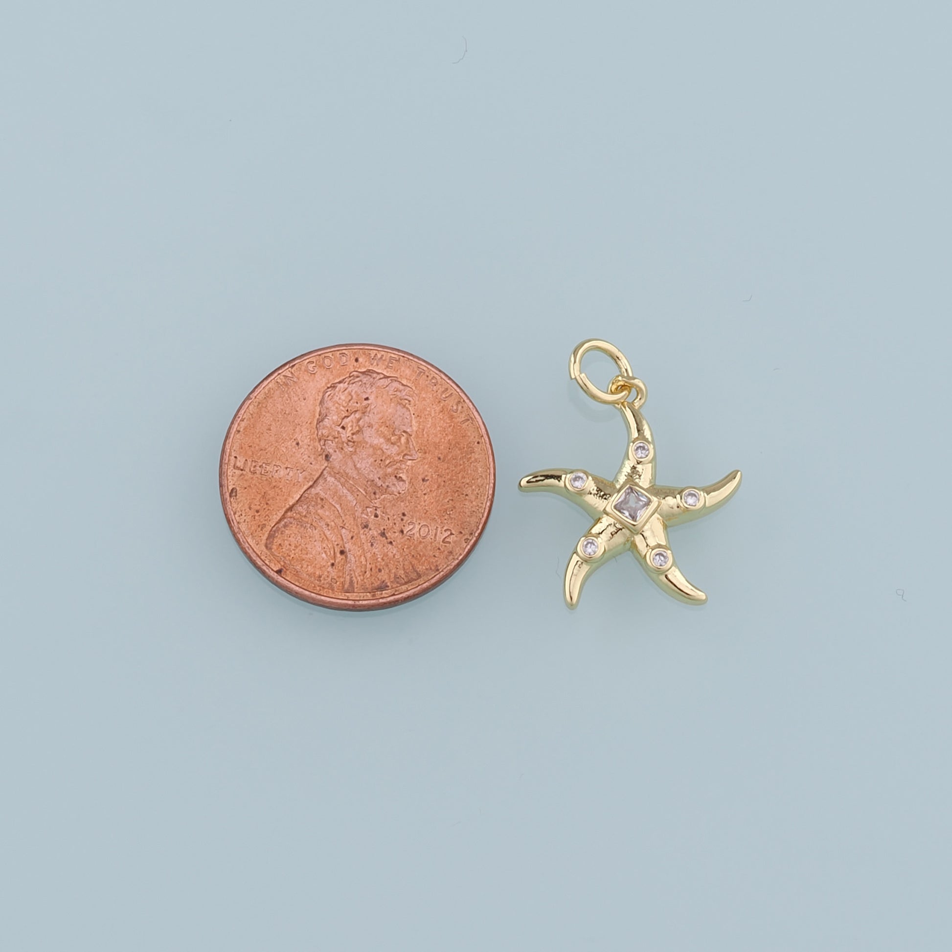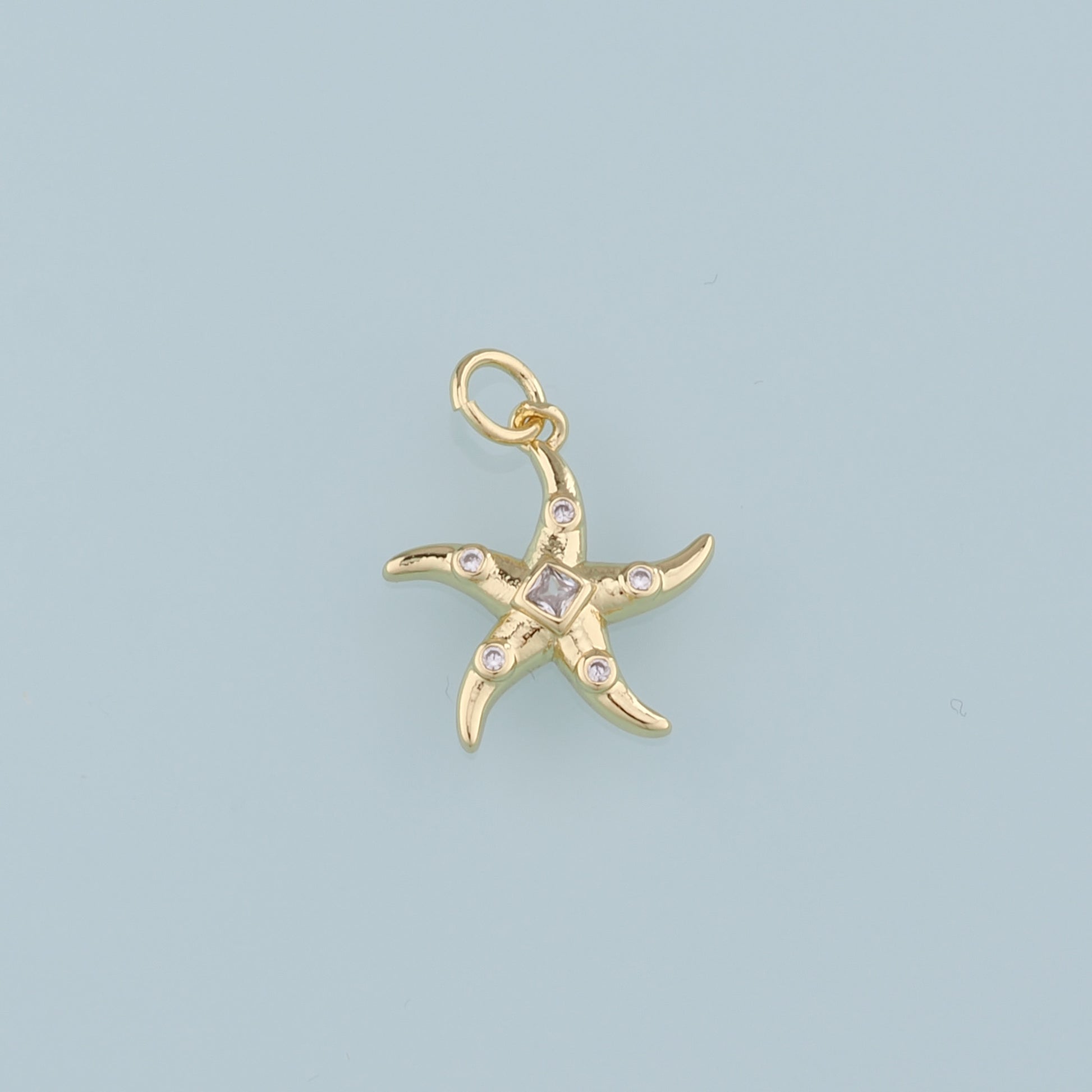 18K Gold Filled Starfish Pendant,CZ Starfish Charm Bracelet Necklace for DIY Jewelry Making Supply