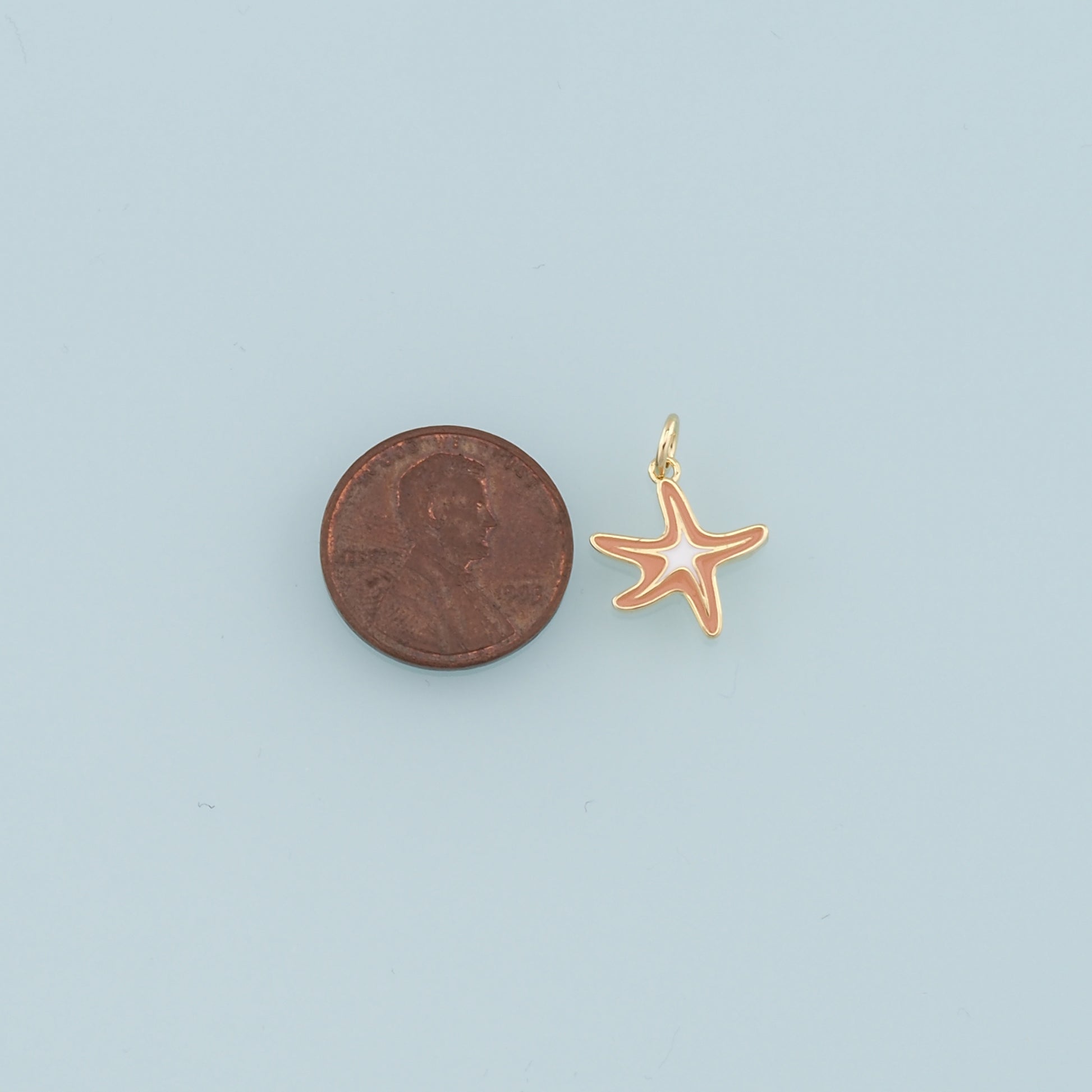 18K Gold Filled Starfish Pendant,Enamel Starfish Charm Bracelet Necklace for DIY Jewelry Making Supply