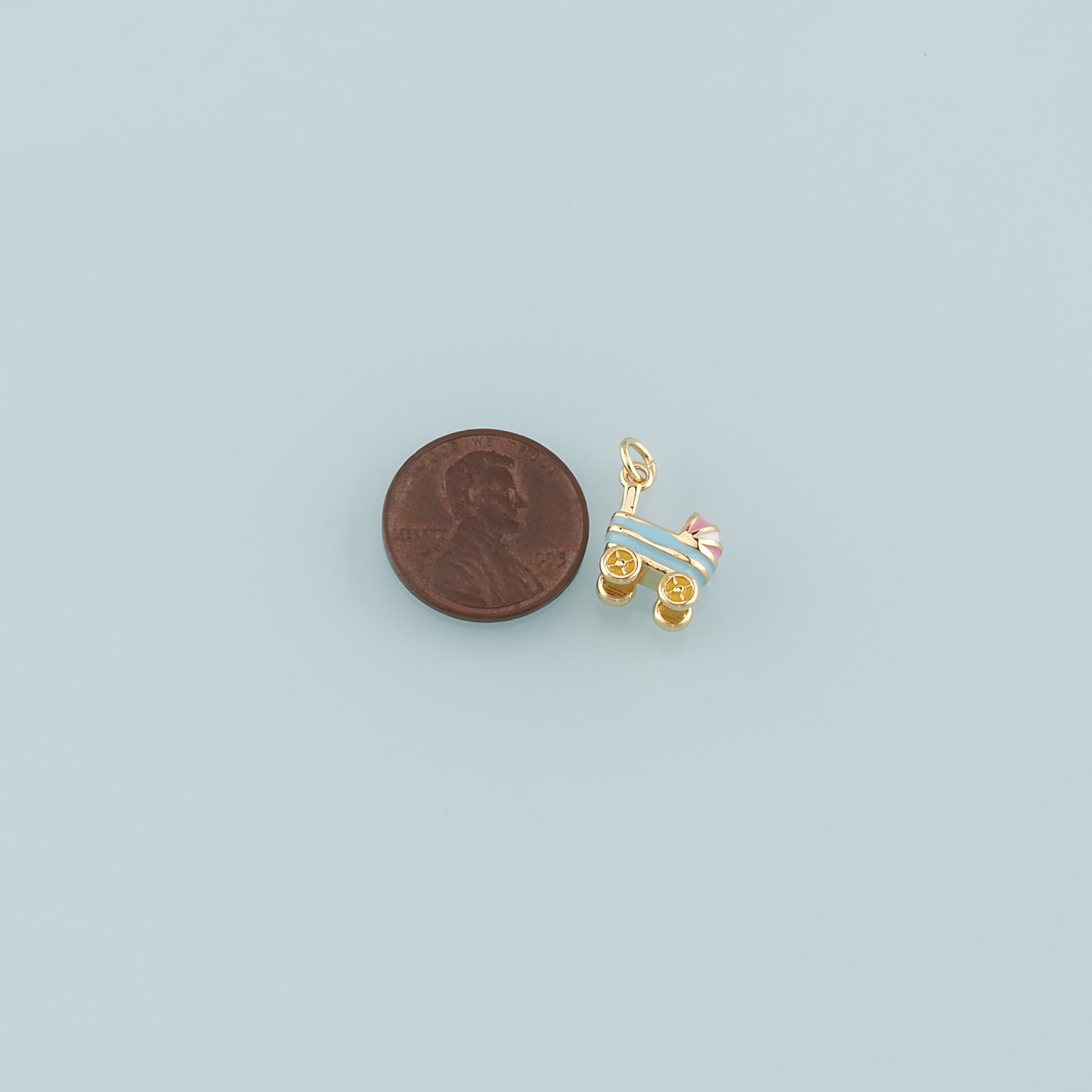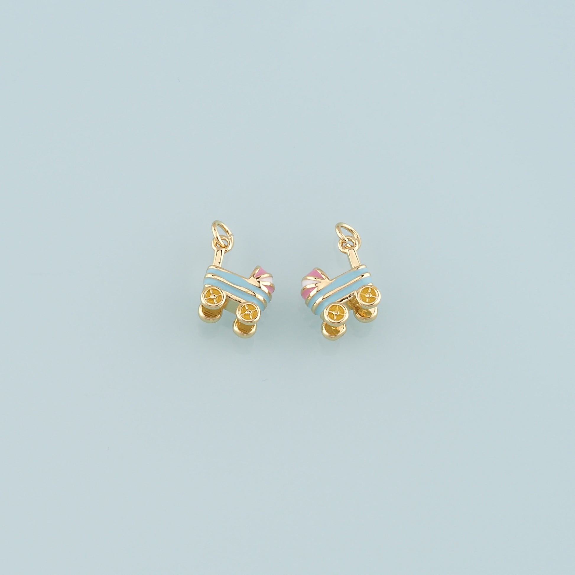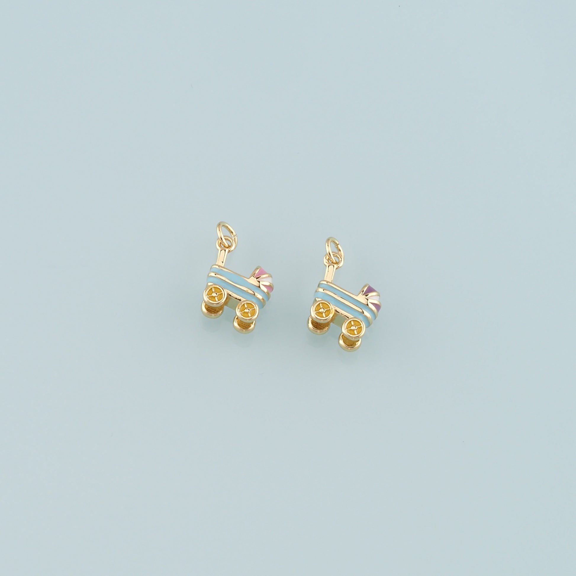 18K Gold Filled Stroller Pendant,Enamel Stroller Charm Bracelet Necklace for DIY Jewelry Making Supply