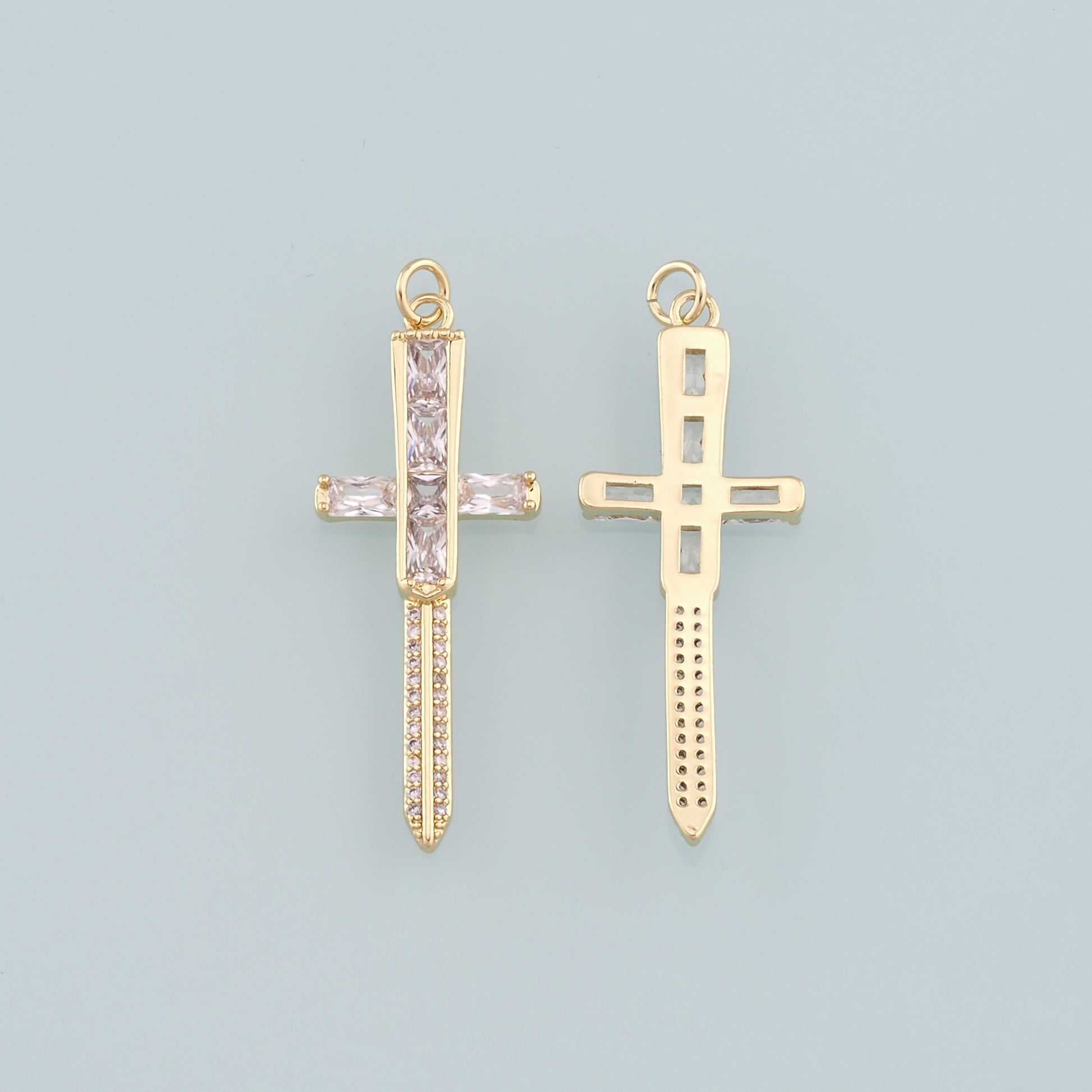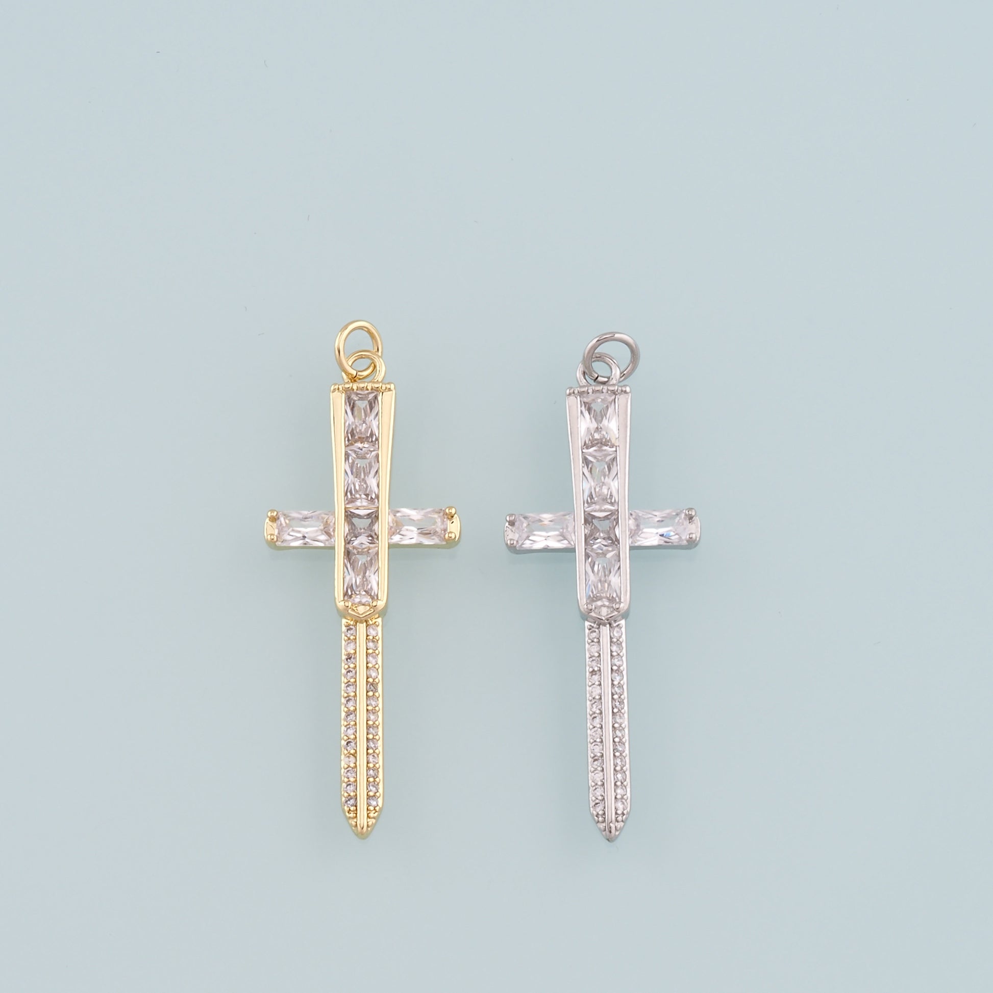 18K Gold Filled Sword Pendant,CZ Micro Pave Sword Charm Bracelet Necklace for DIY Jewelry Making Supply