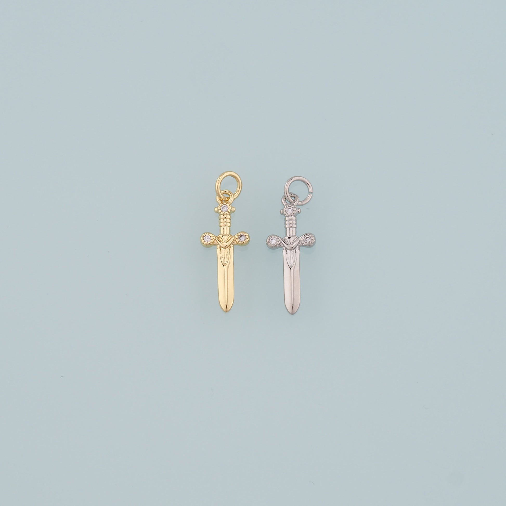 18K Gold Filled Sword Pendant,CZ Micro Pave Sword Charm Bracelet Necklace for DIY Jewelry Making Supply