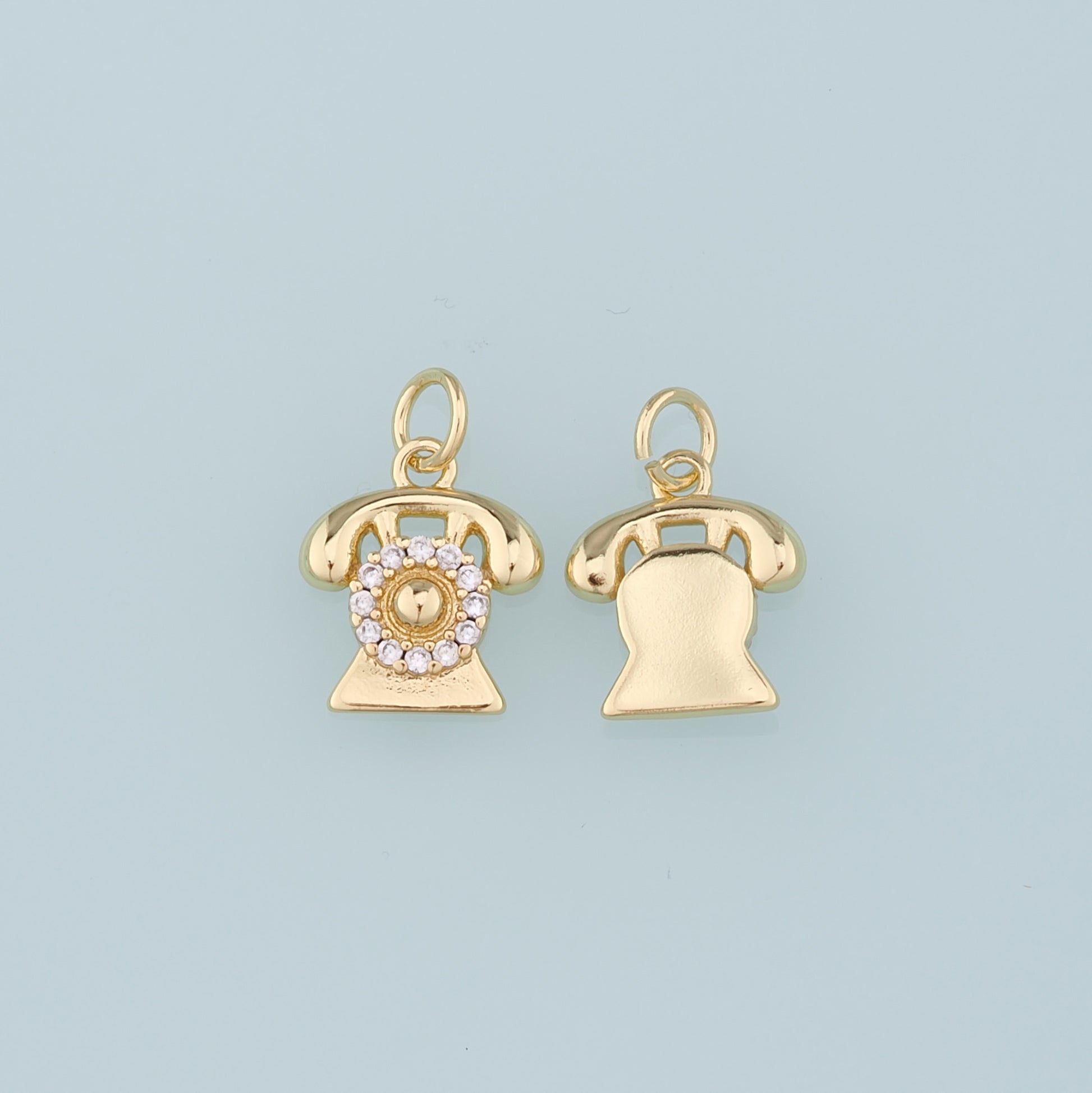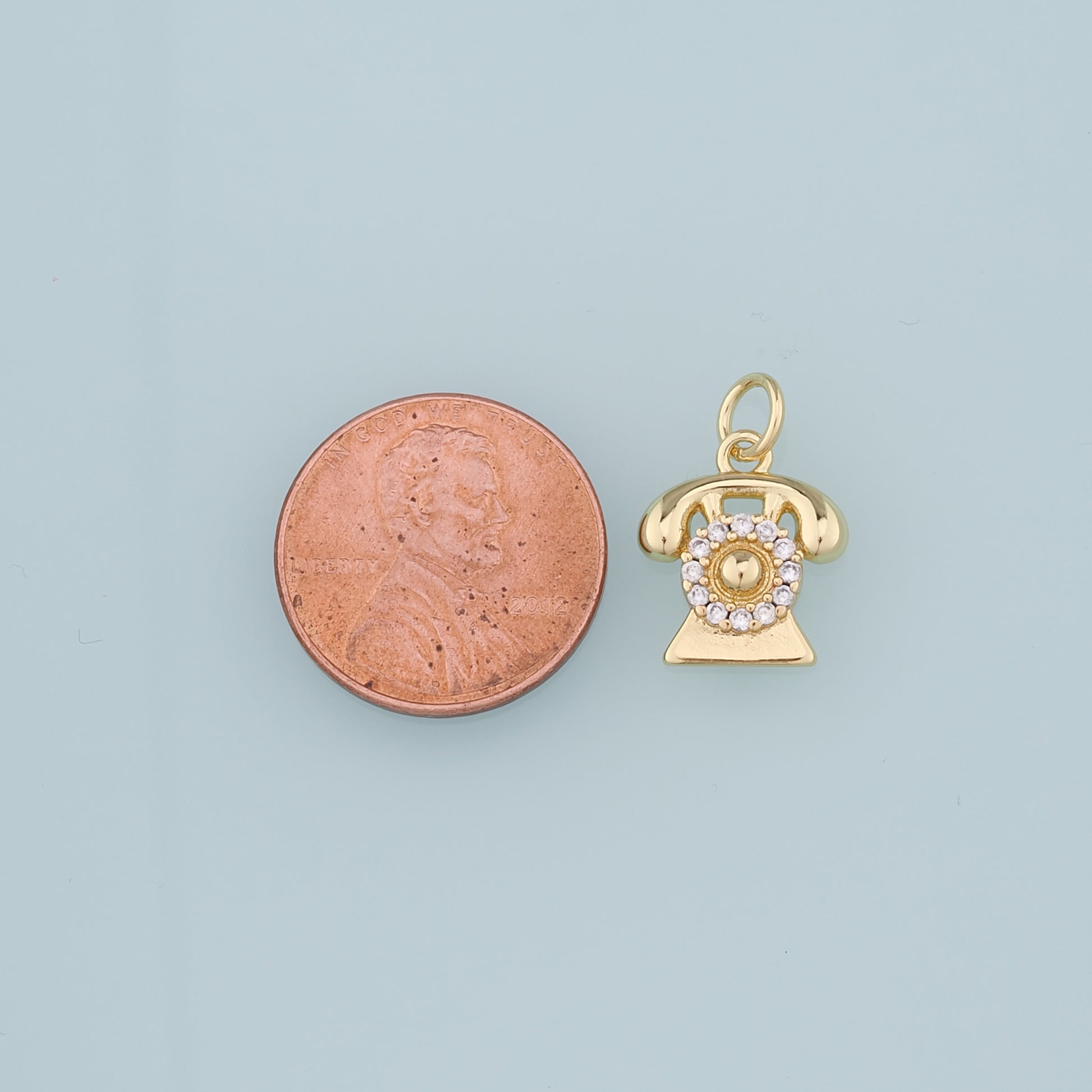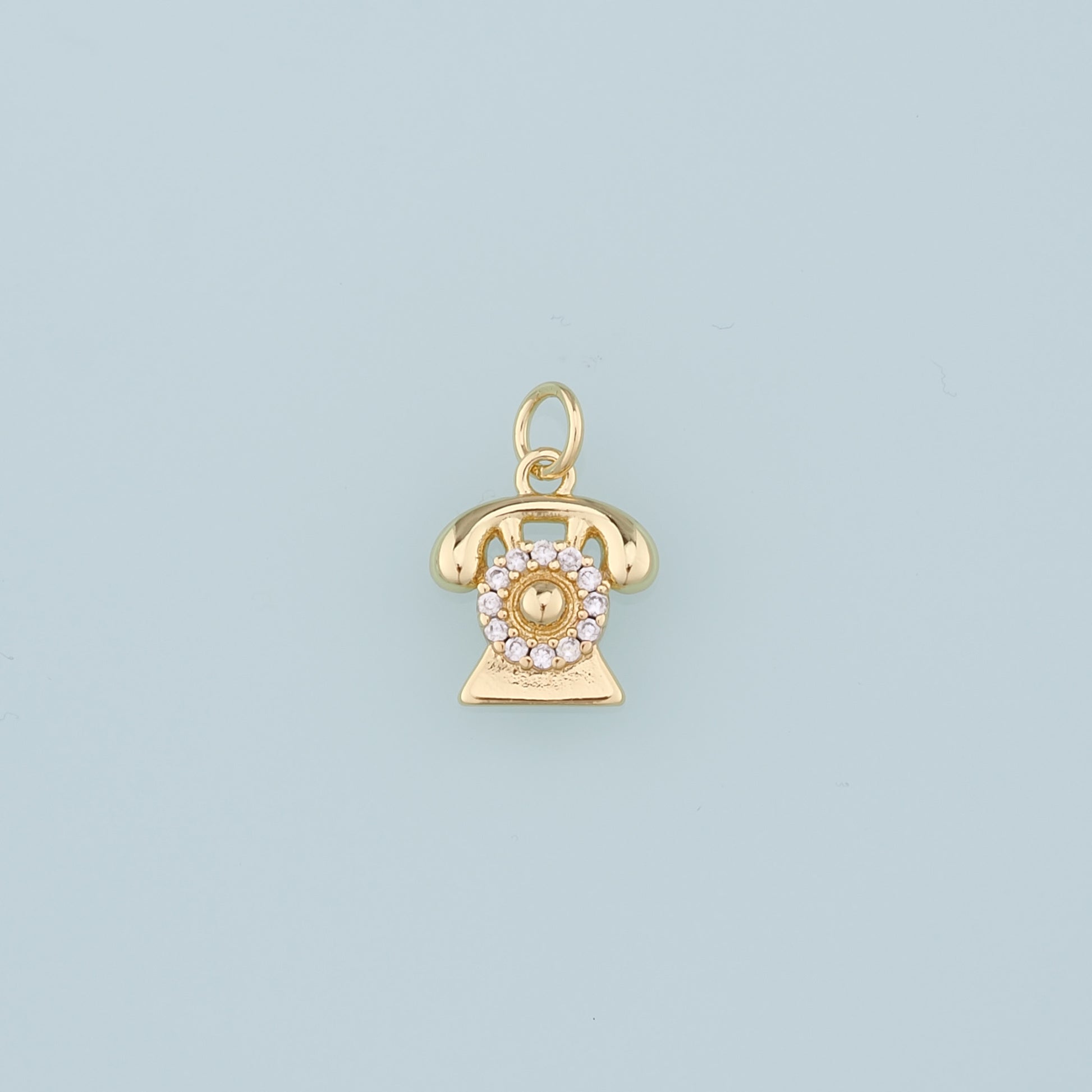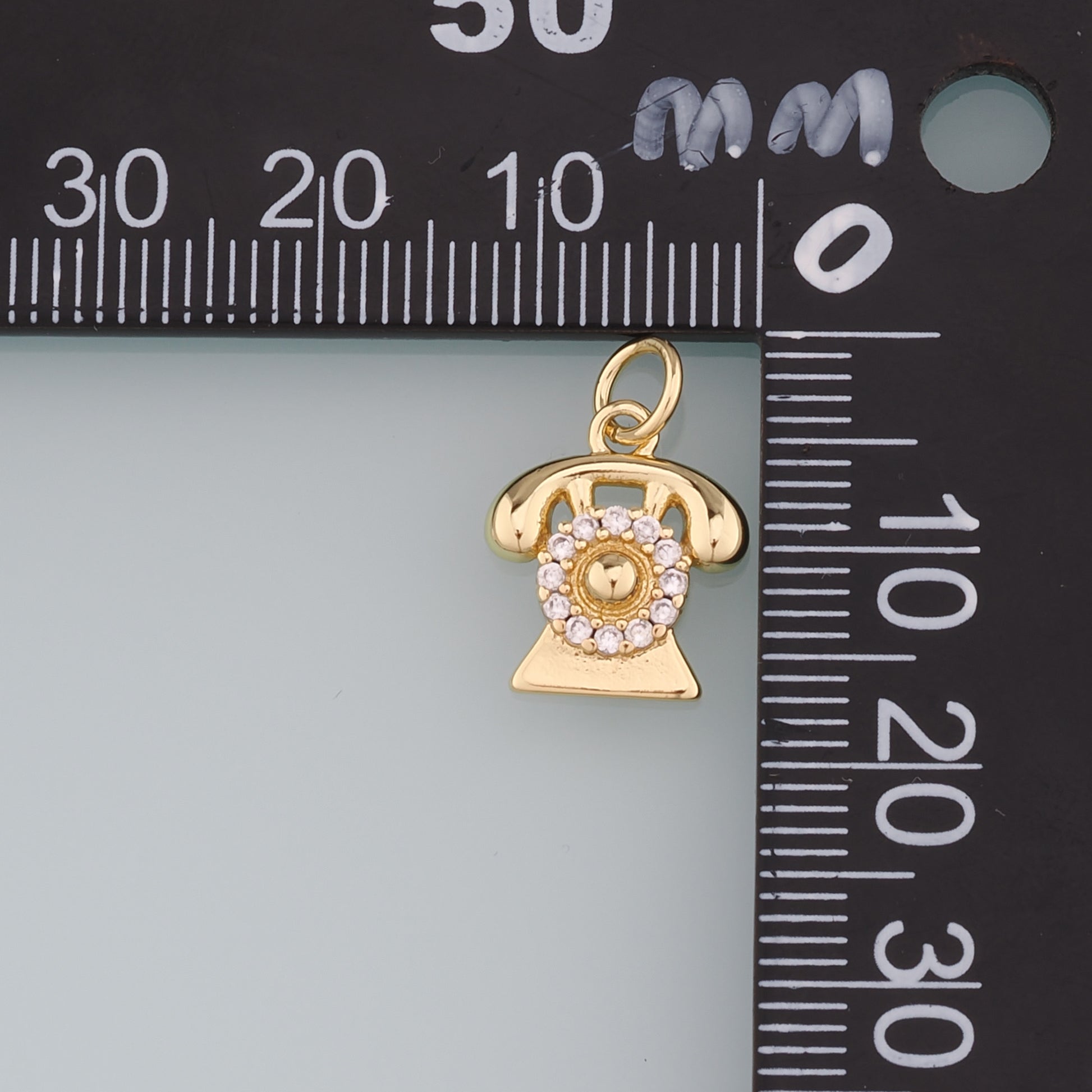 18K Gold Filled Telephone Pendant,CZ Micro Pave Telephone Charm Bracelet Necklace for DIY Jewelry Making Supply