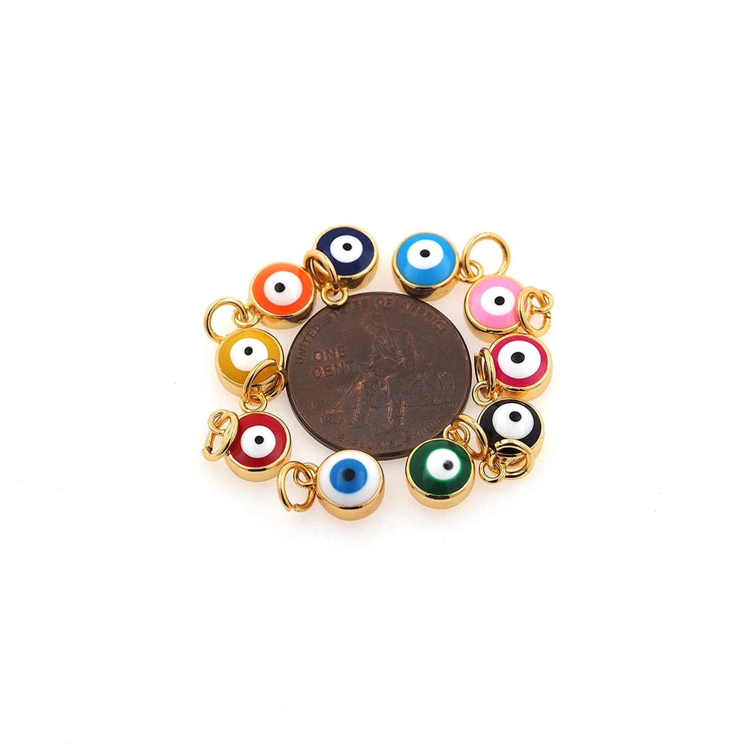 18K Gold Filled Tiny Evil Eye Pendant,Blue Evil Eye Charm Necklace for DIY Jewelry Making Supply(12.5x7x4mm)