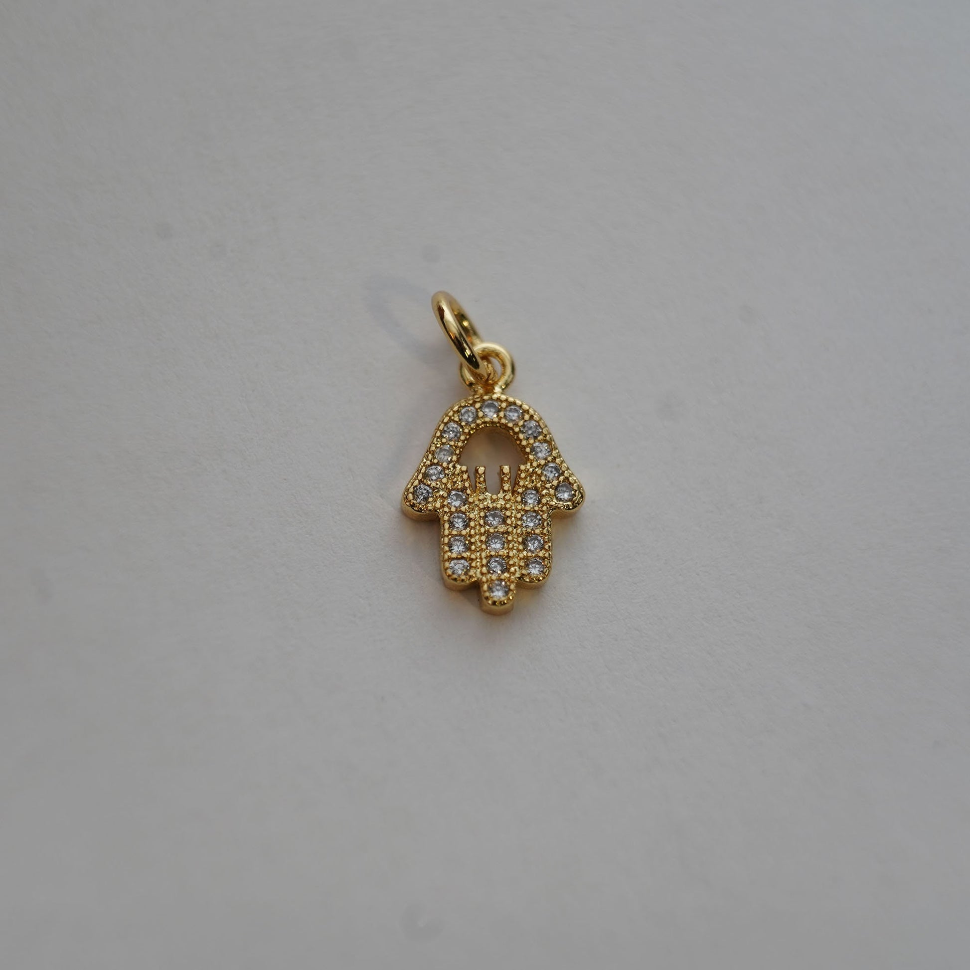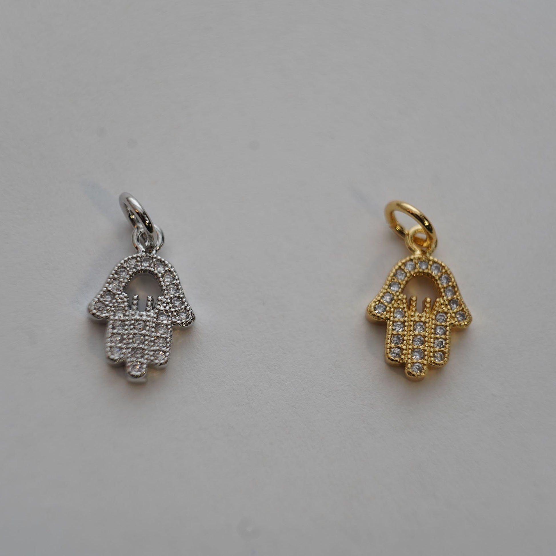 18K Gold Filled Tiny Hamsa Pendant,CZ Hand Hamsa Charm Necklace for DIY Jewelry Making Supply