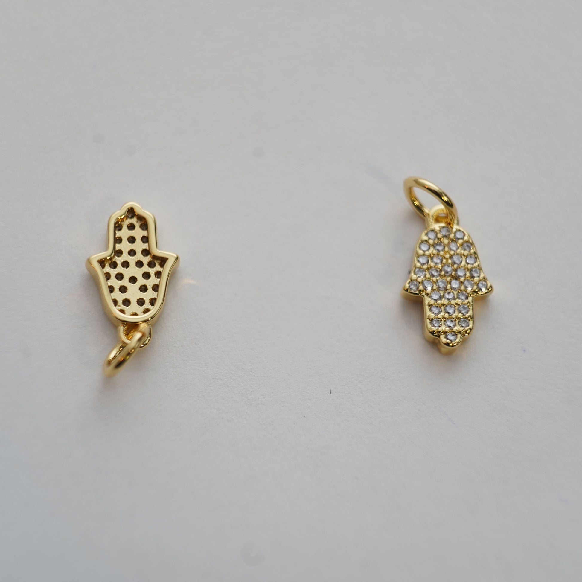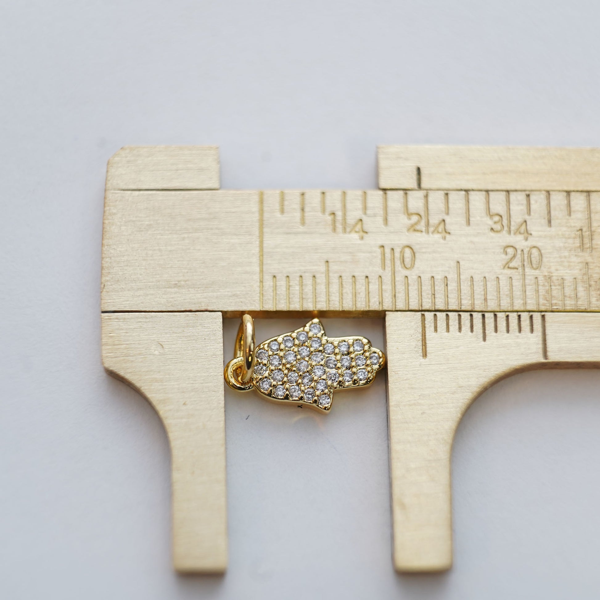 18K Gold Filled Tiny Hamsa Pendant,CZ Hand Hamsa Charm Necklace for DIY Jewelry Making Supply
