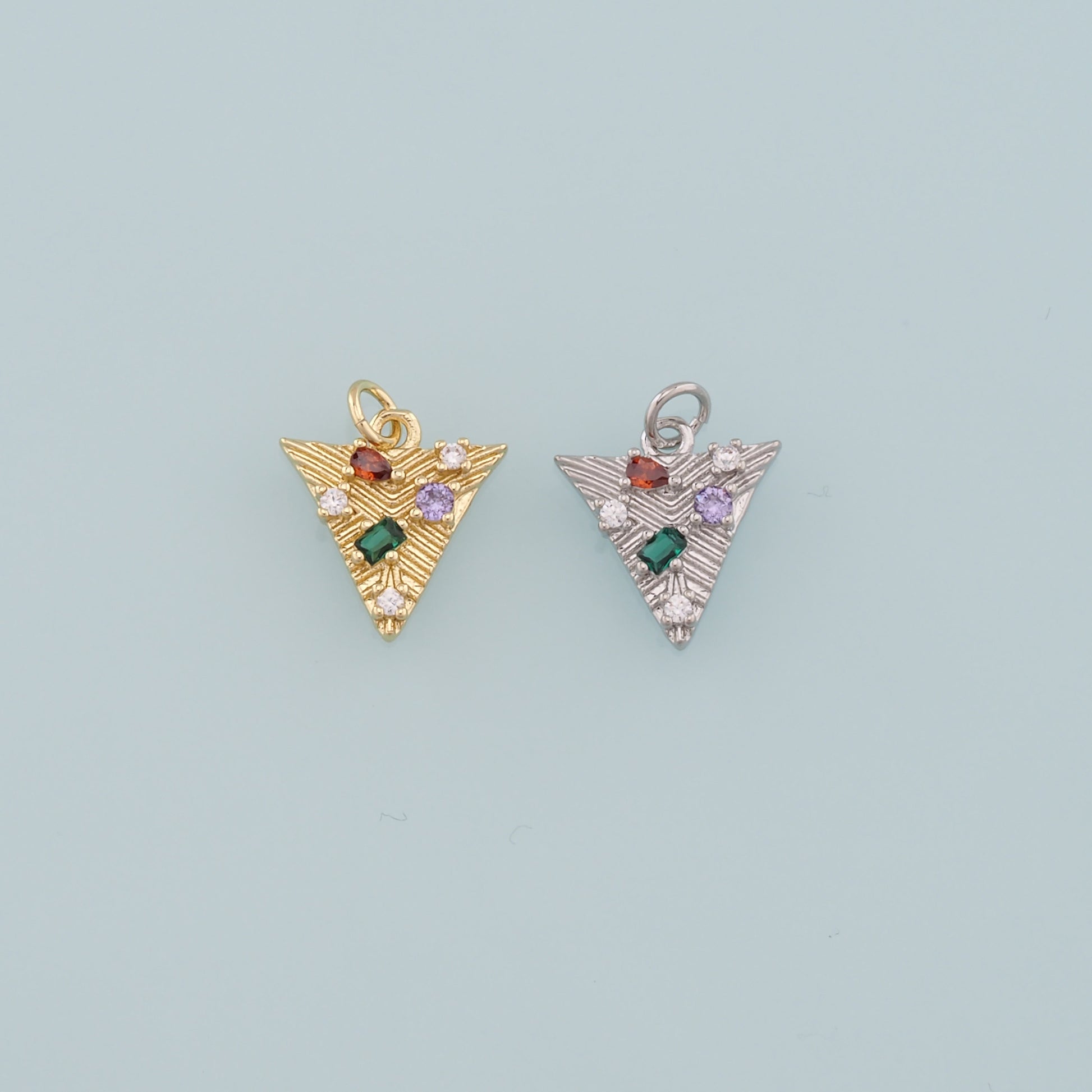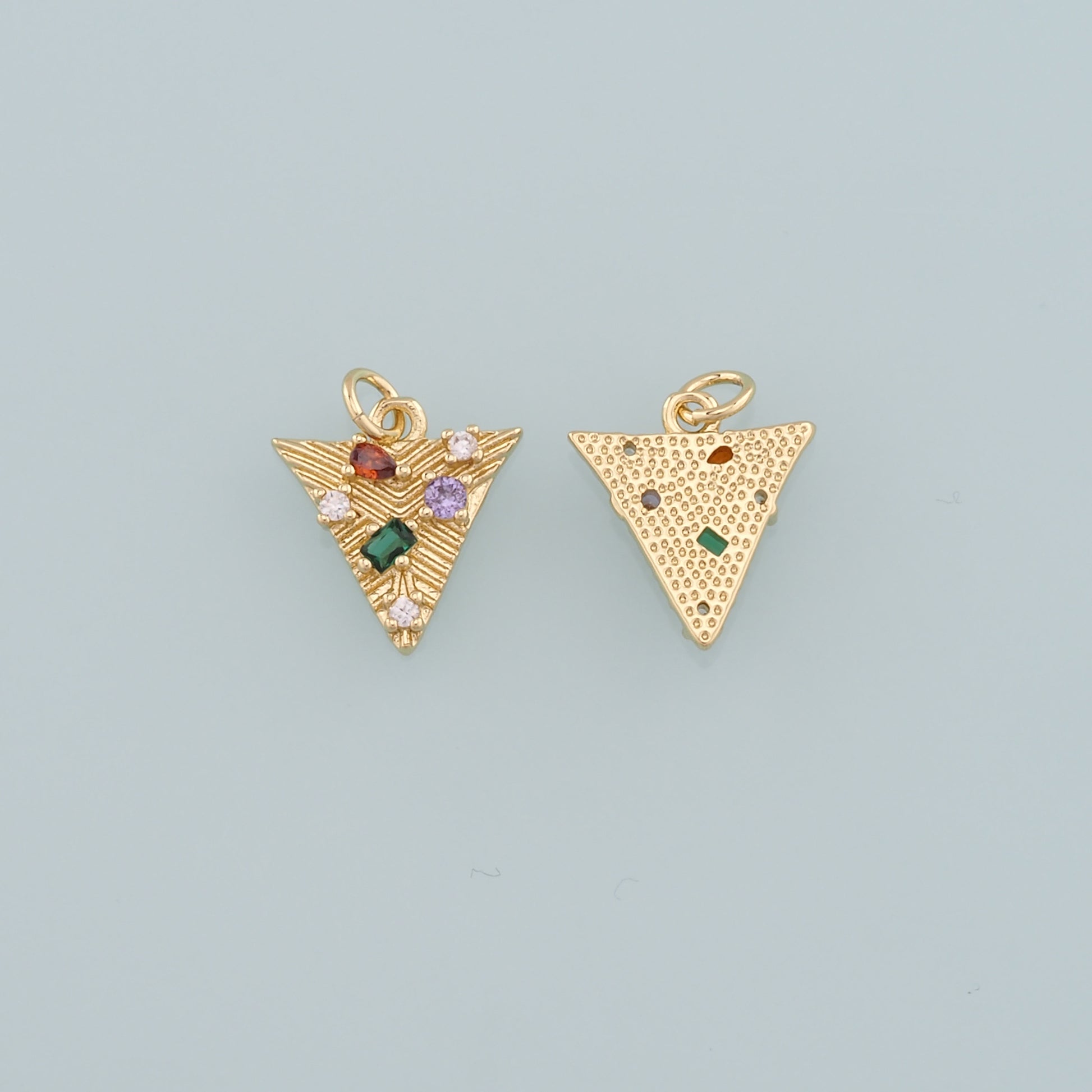 18K Gold Filled Triangle Pendant, CZ Micro Pave Triangle Charm Bracelet Necklace for DIY Jewelry Making Supply