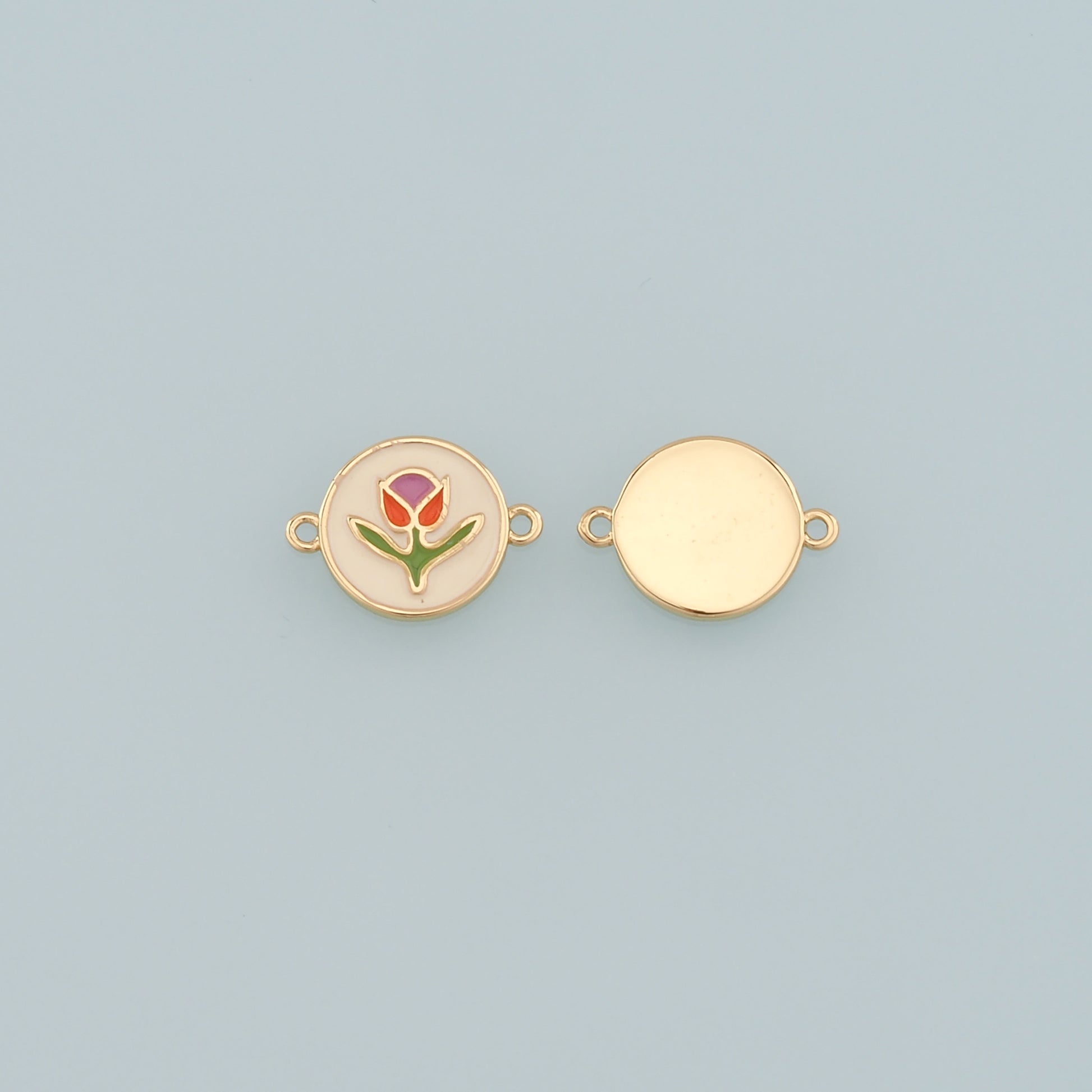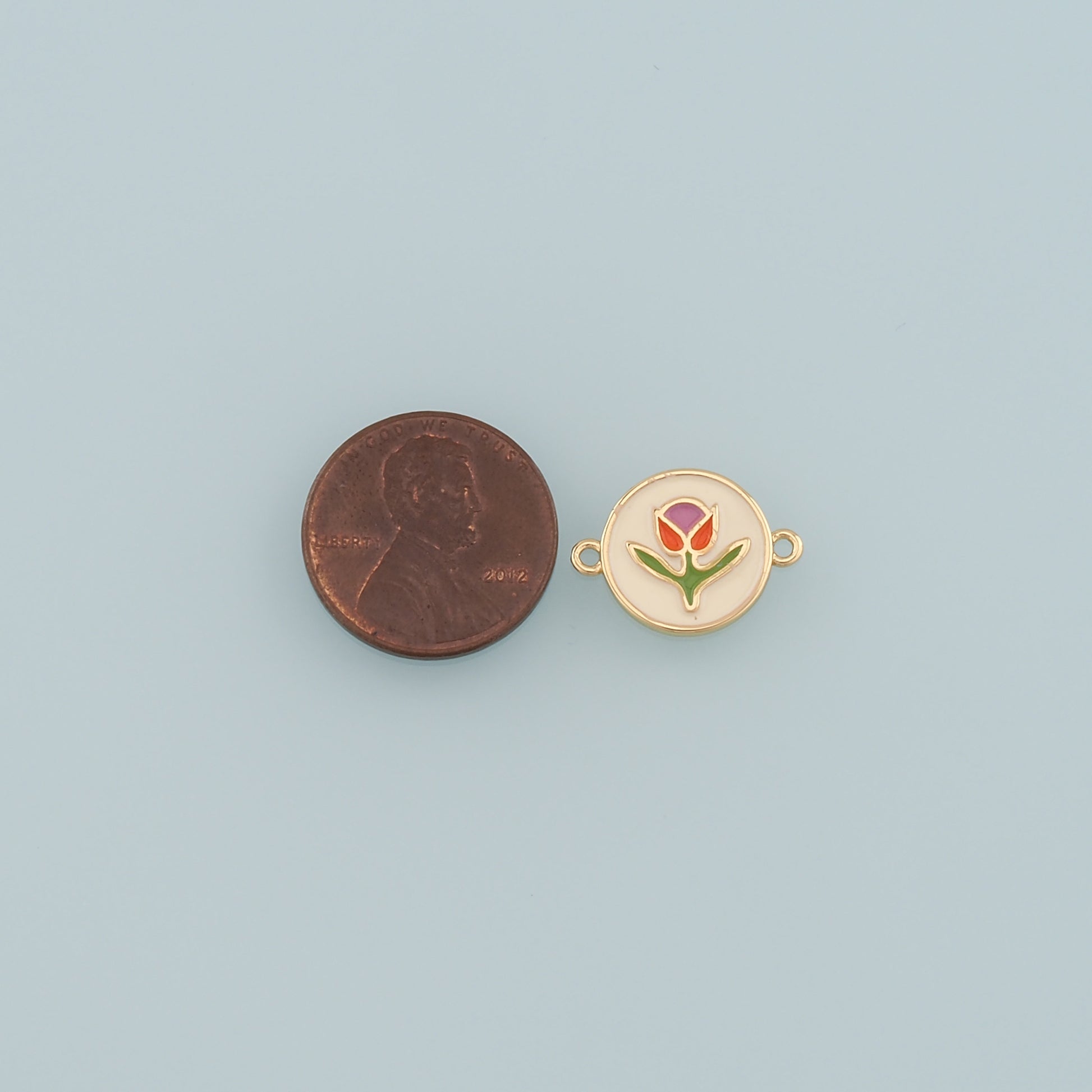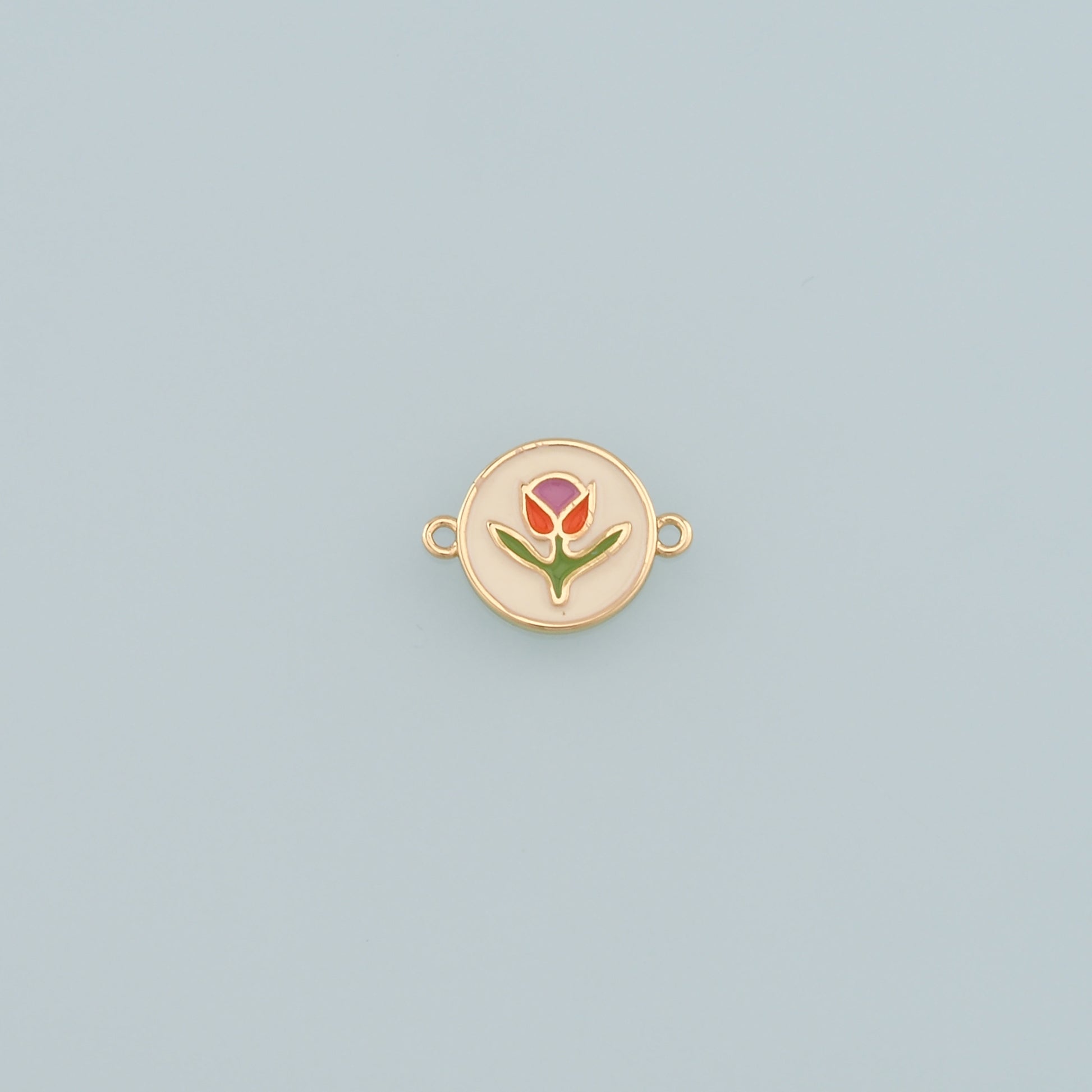 18K Gold Filled Tulip Connector,Enamel Flower Charm Bracelet Necklace for DIY Jewelry Making Supply