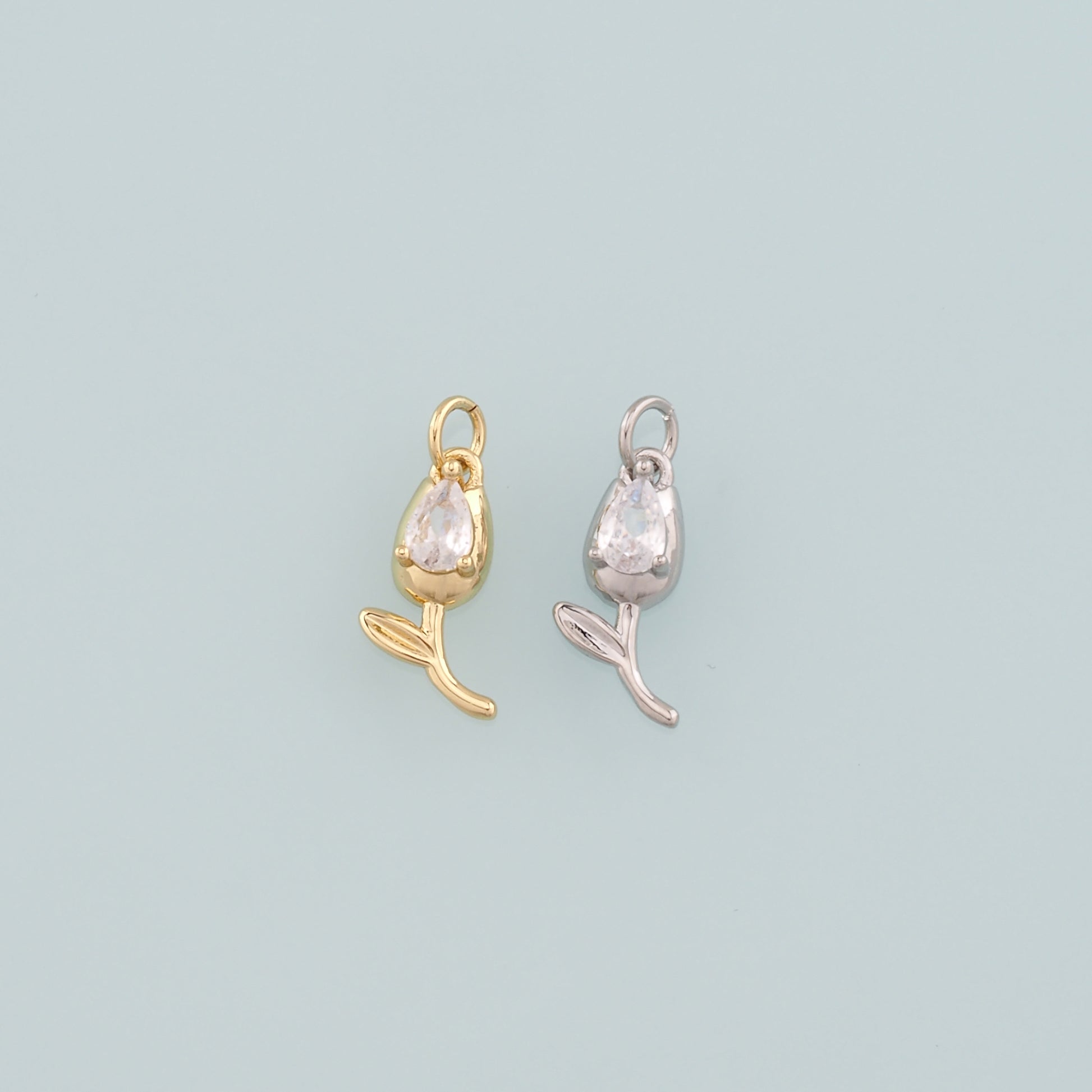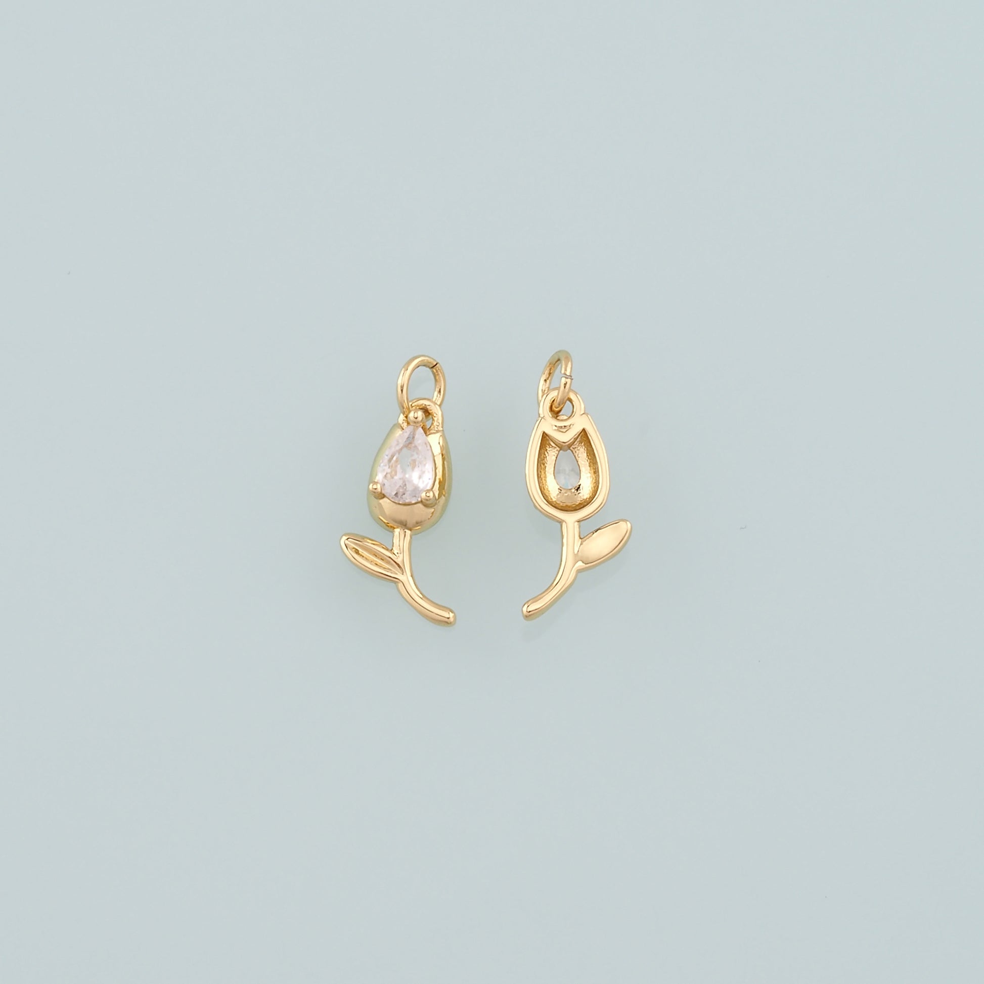 18K Gold Filled Tulip Pendant,CZ Micro Pave Flower Charm Bracelet Necklace for DIY Jewelry Making Supply