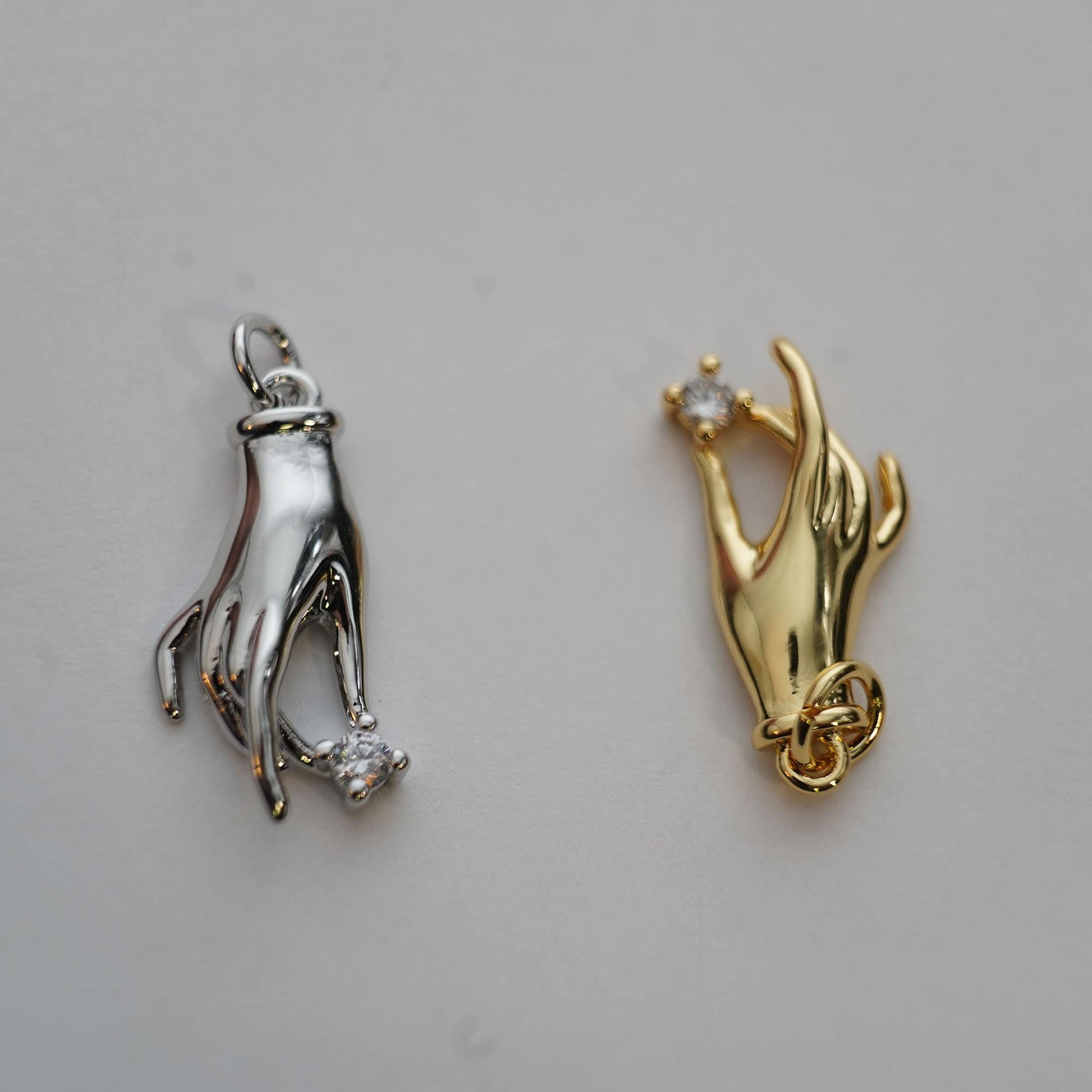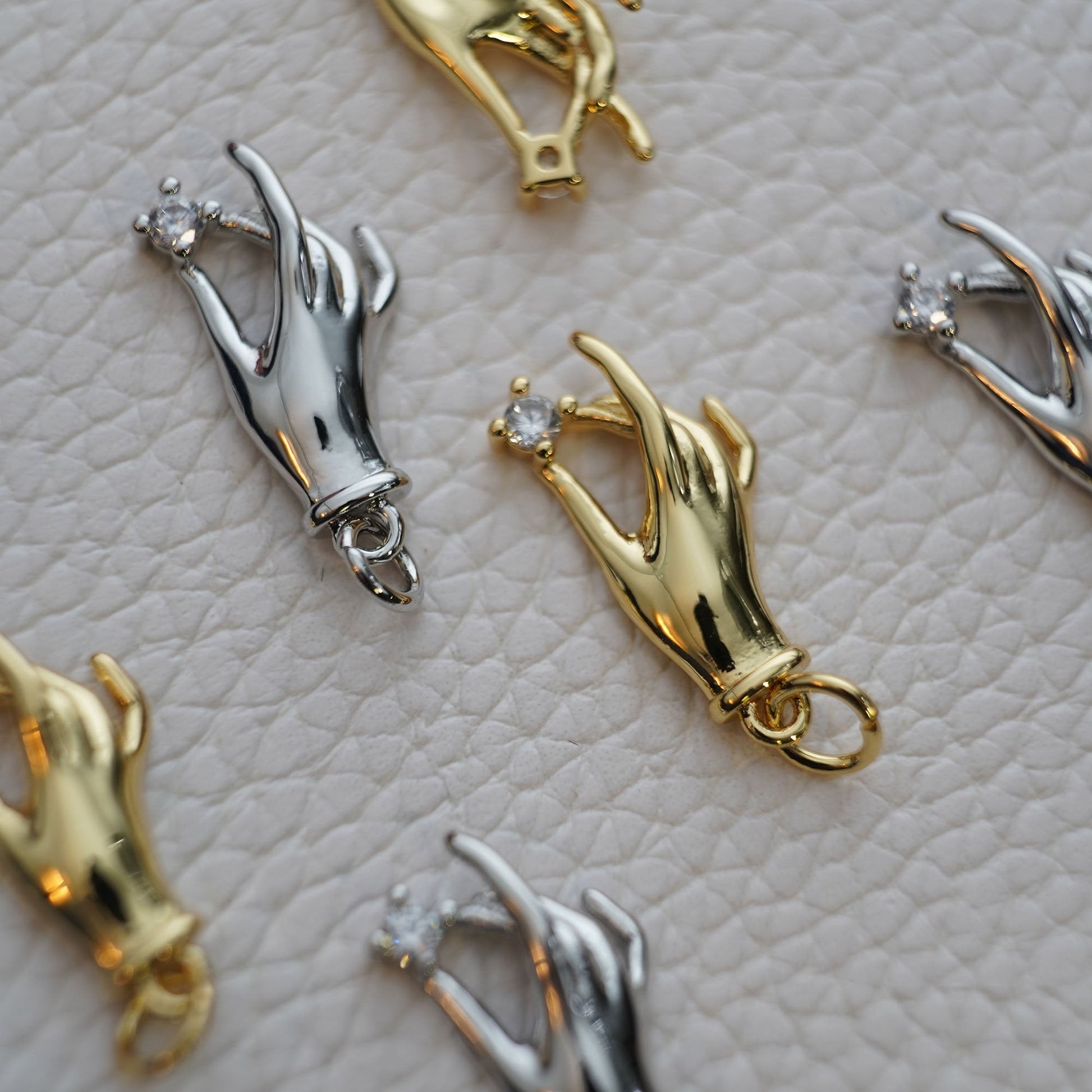 18K Gold Filled Victorian Hand Pendant,CZ Hand Hamsa Charm Necklace for DIY Jewelry Making Supply