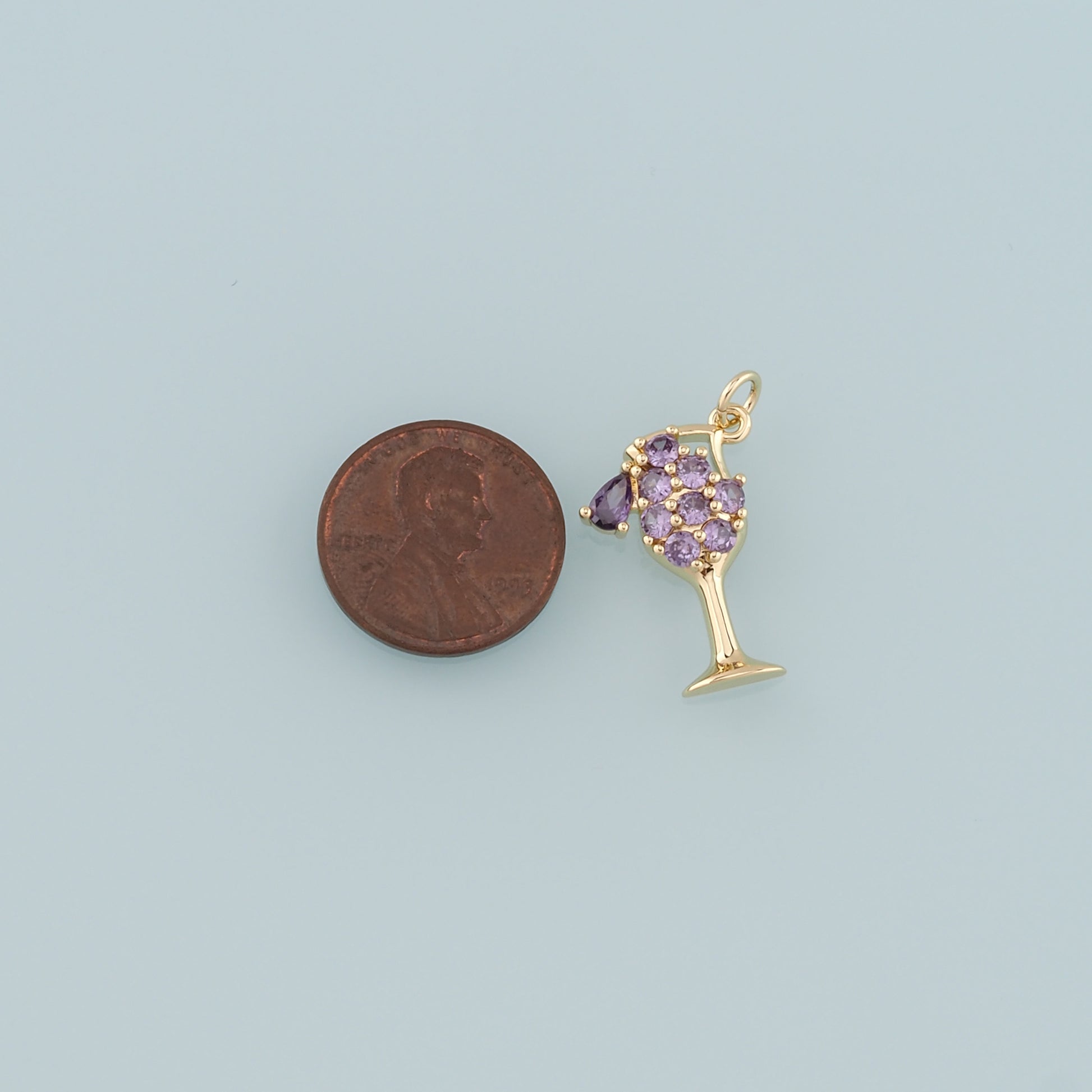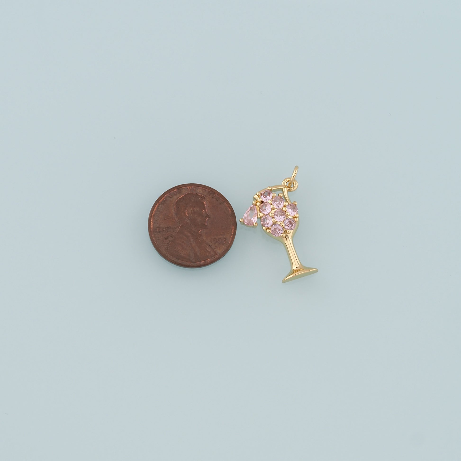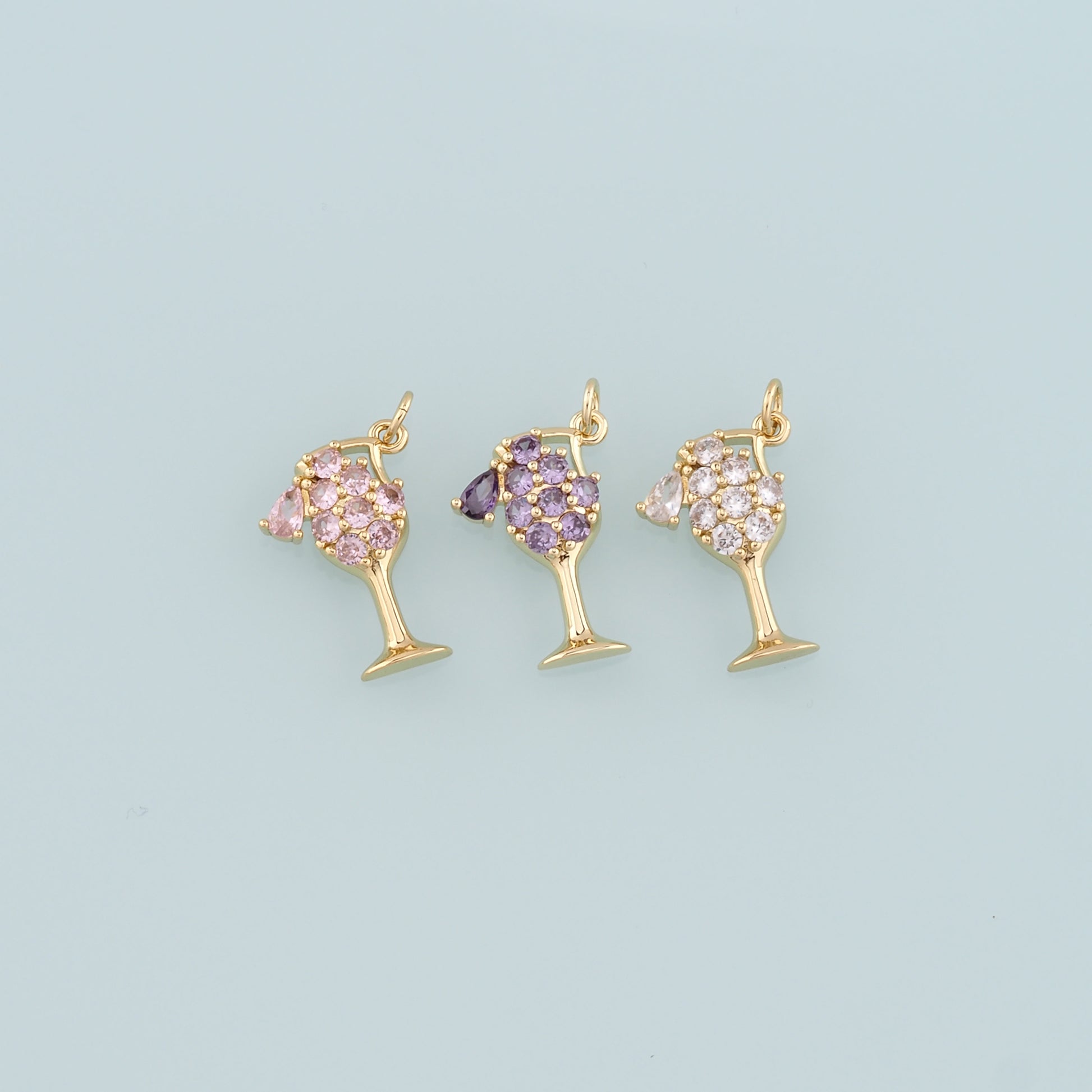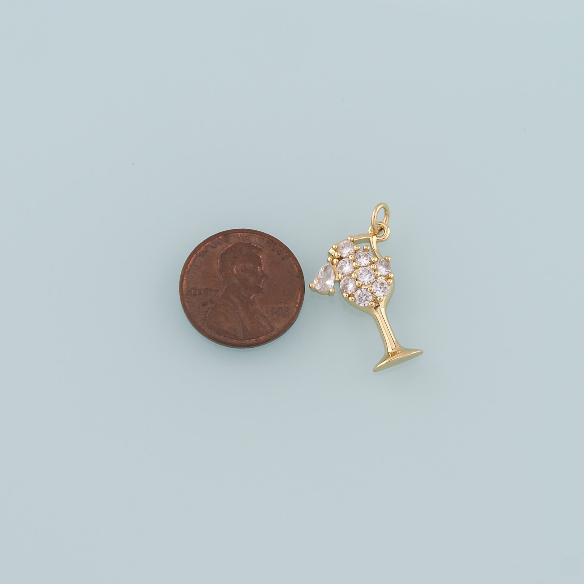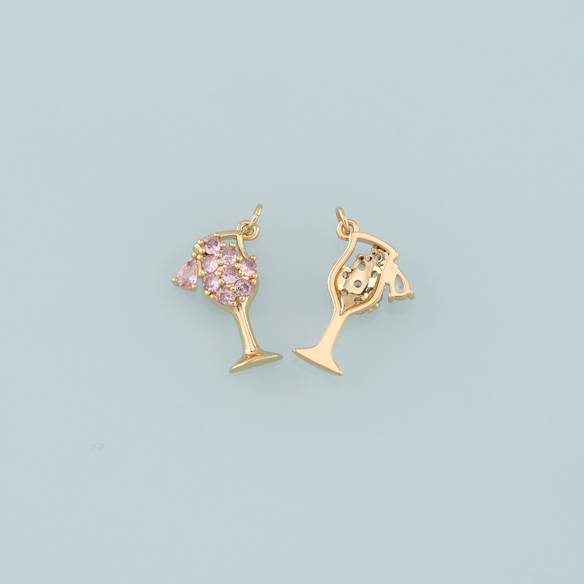 18K Gold Filled Wine Glass Pendant,CZ Micro Pave Wine Glass Charm Bracelet Necklace for DIY Jewelry Making Supply