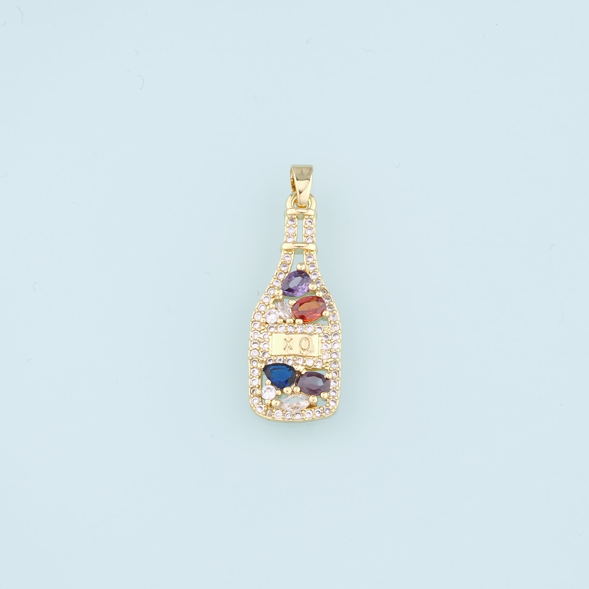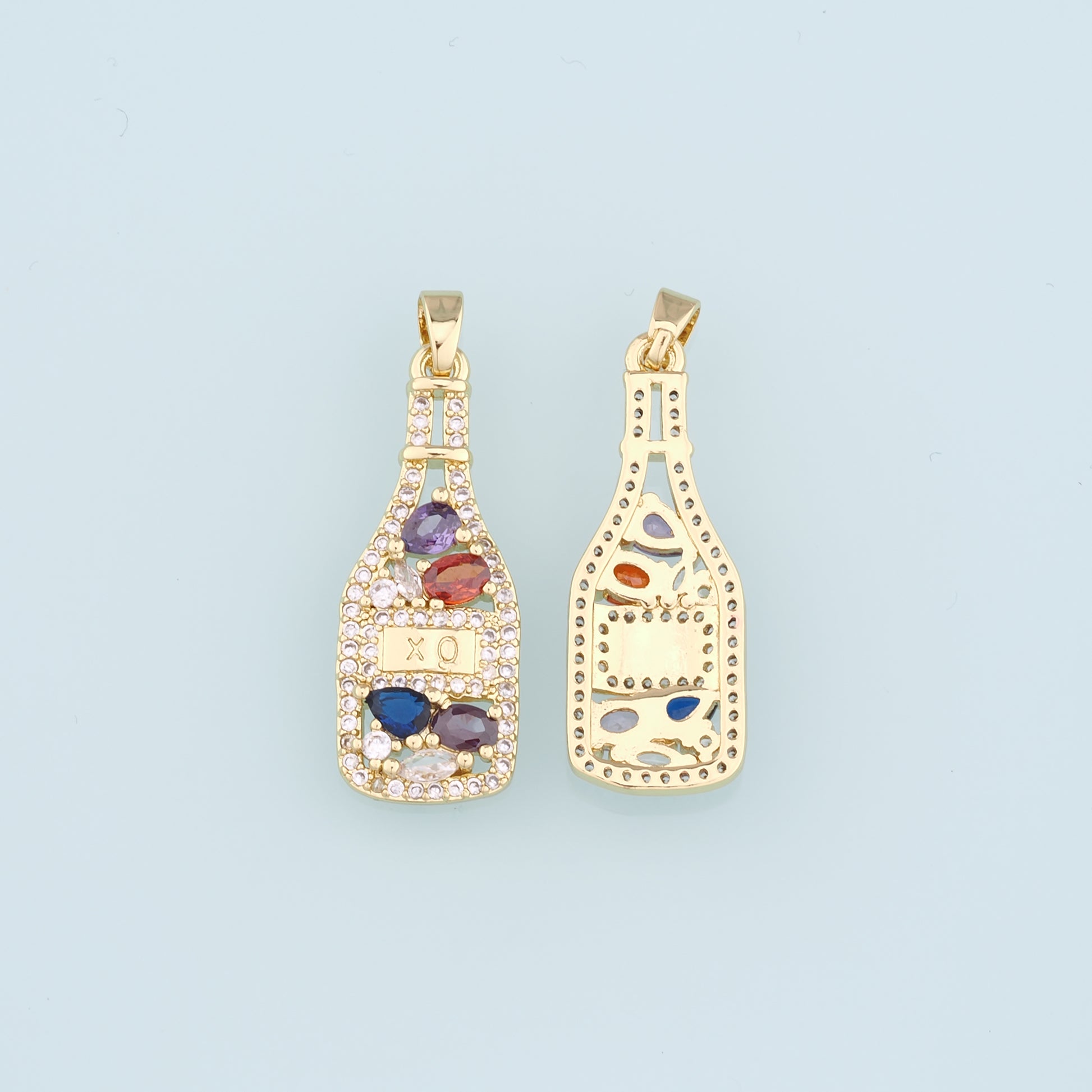 18K Gold Filled Wine Pendant,CZ Micro Pave Wine Bottle Charm Bracelet Necklace for DIY Jewelry Making Supply