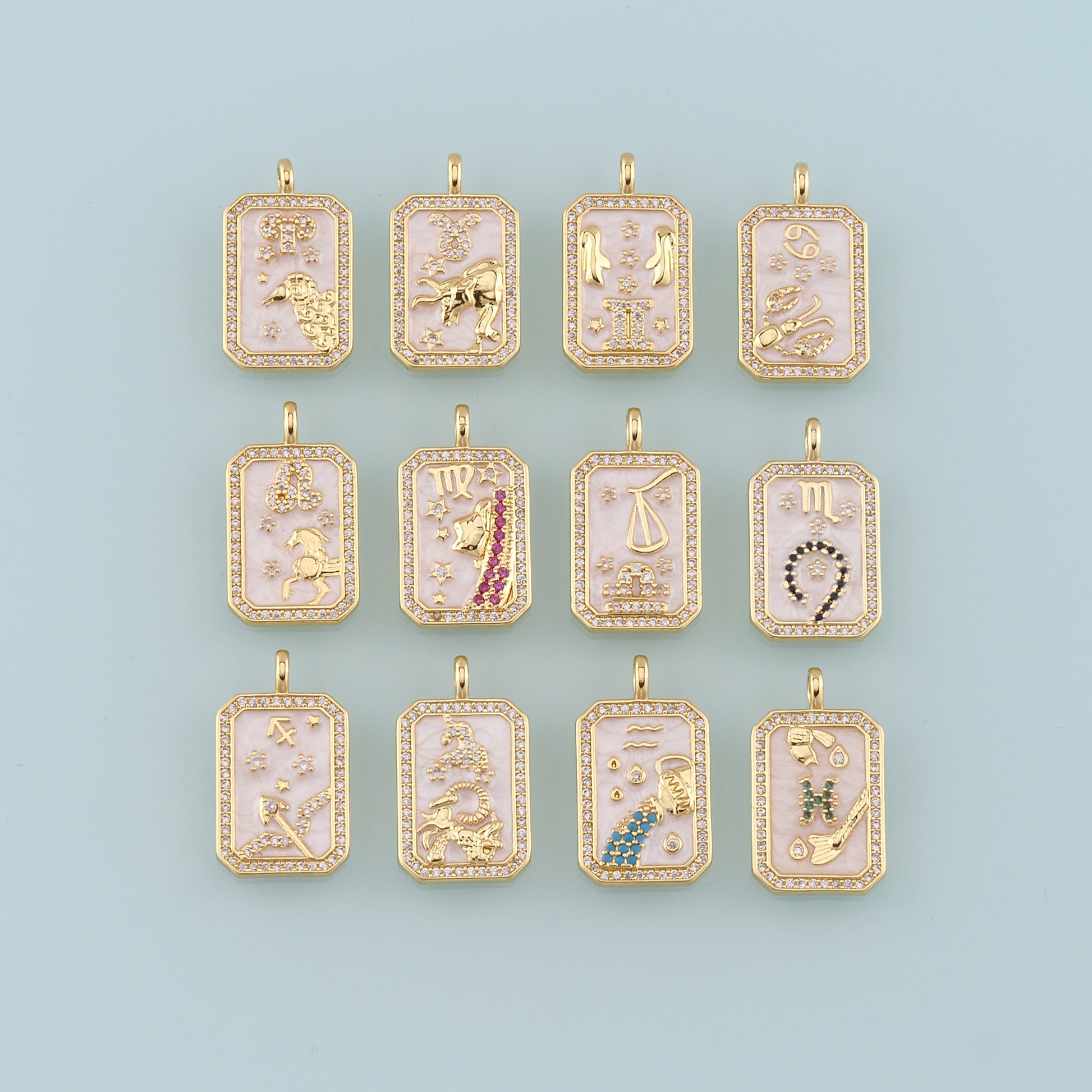 18K Gold Filled Zodiac Constellation Pendant,Enamel Constellation Charm Bracelet Necklace for DIY Jewelry Making Supply