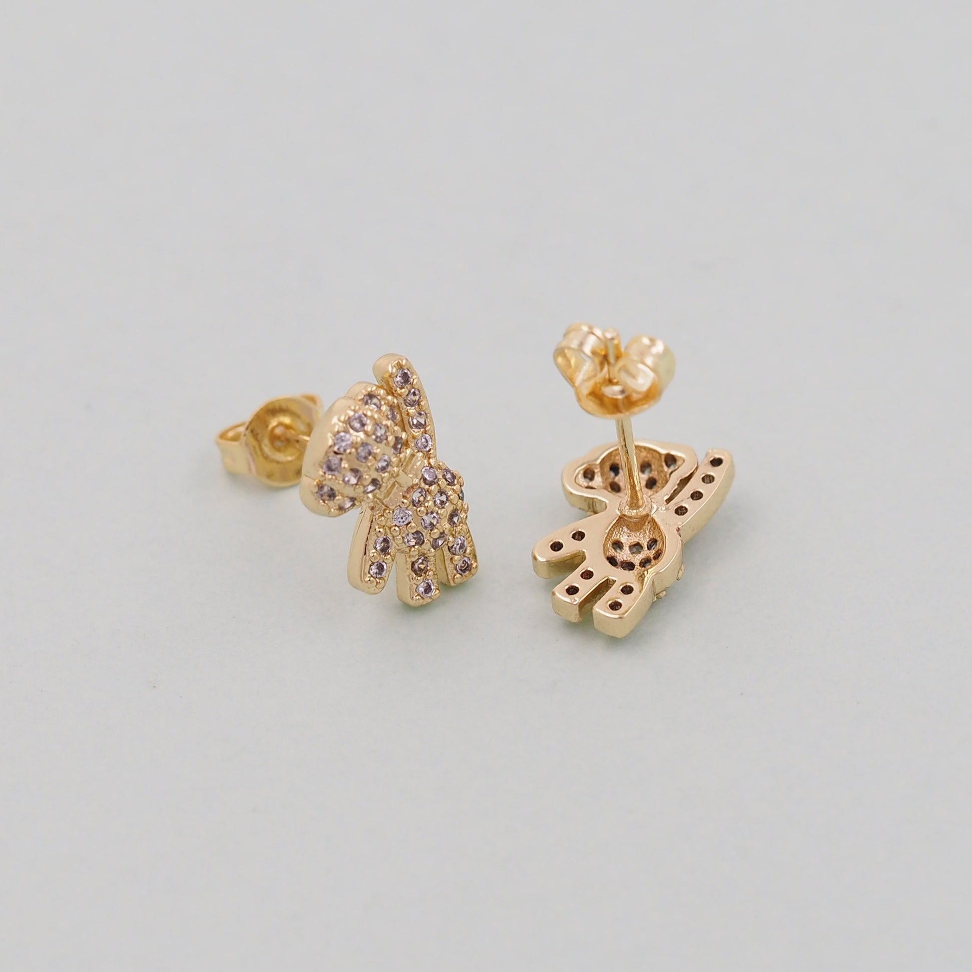 1pair 18K Gold Filled Bear Stud Earrings,Gold Earrings,Dainty Hoops Huggie,Gold Huggies Hoop Earrings