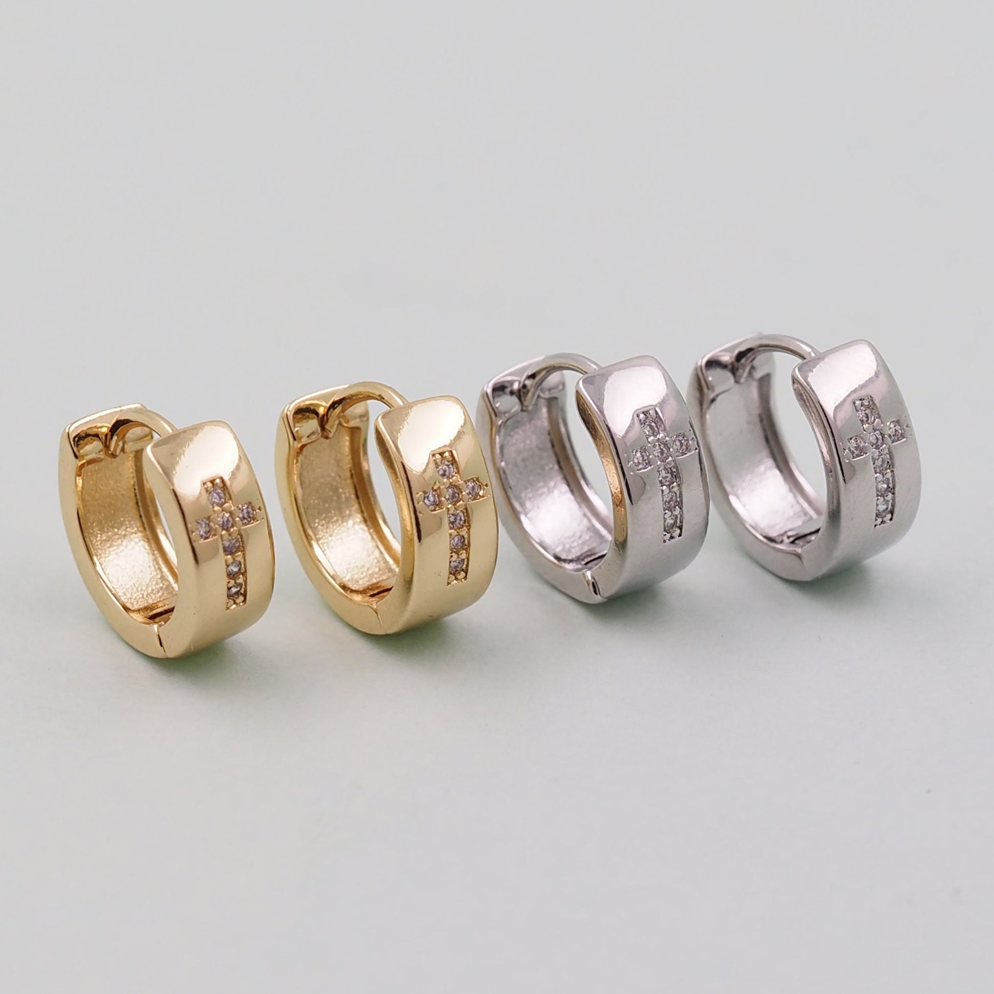 1pair 18K Gold Filled Cross Hoops Earrings,Gold Earrings,Dainty Hoops Huggie,Gold Huggies Hoop Earrings