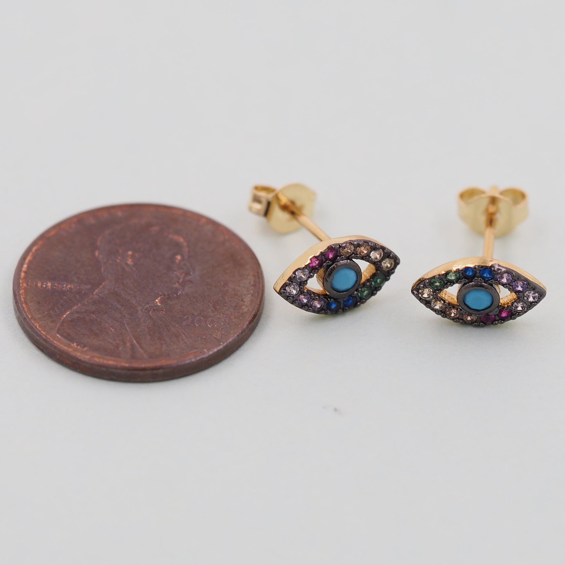 1pair 18K Gold Filled Evil Eye Earrings,Gold Earrings,Dainty Earrings