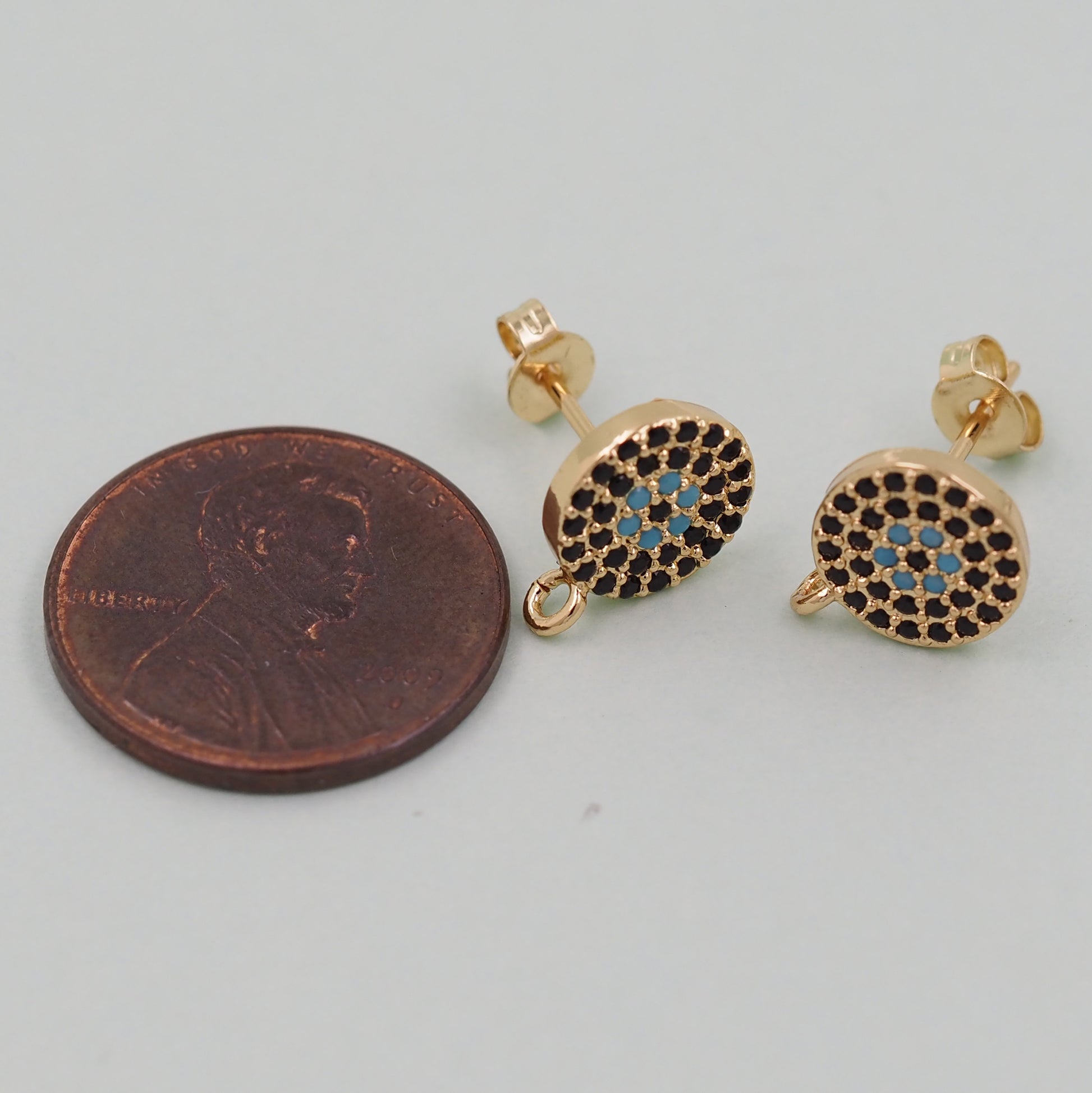 1pair 18K Gold Filled Evil Eye Earrings,Gold Round Earrings,Dainty Earrings