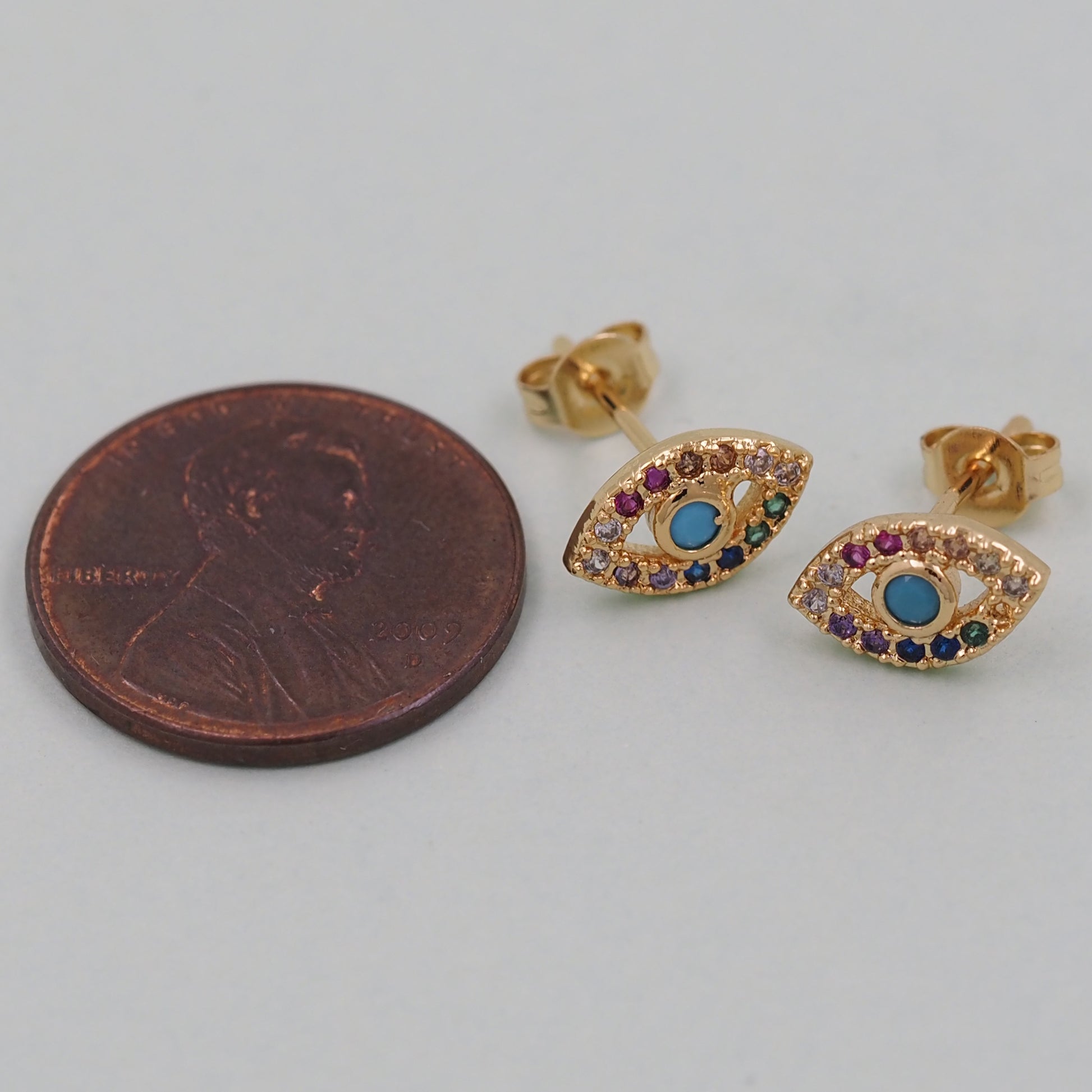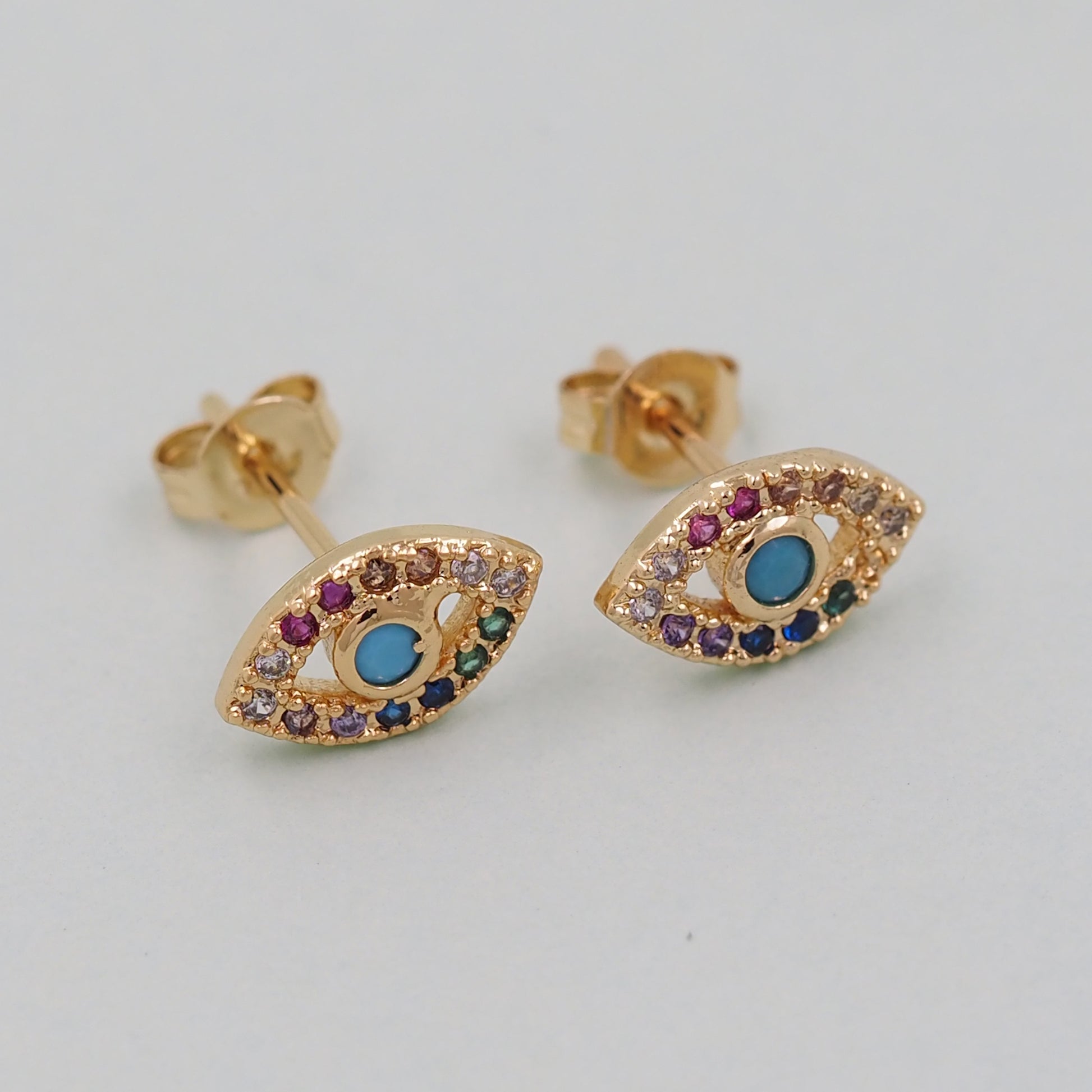 1pair 18K Gold Filled Evil Eye Hoops Earrings,Gold Earrings,Dainty Hoops Huggie,Gold Huggies Hoop Earrings