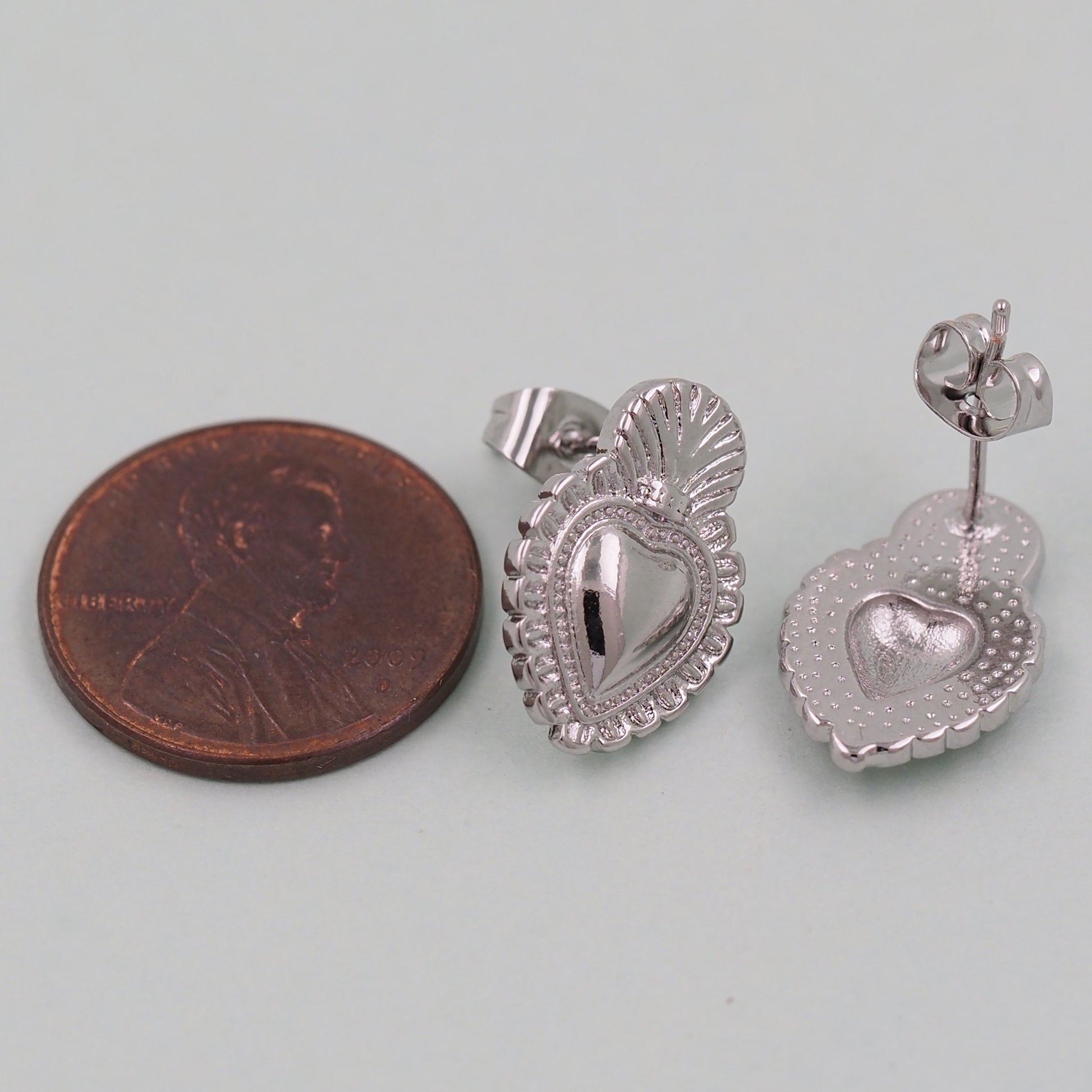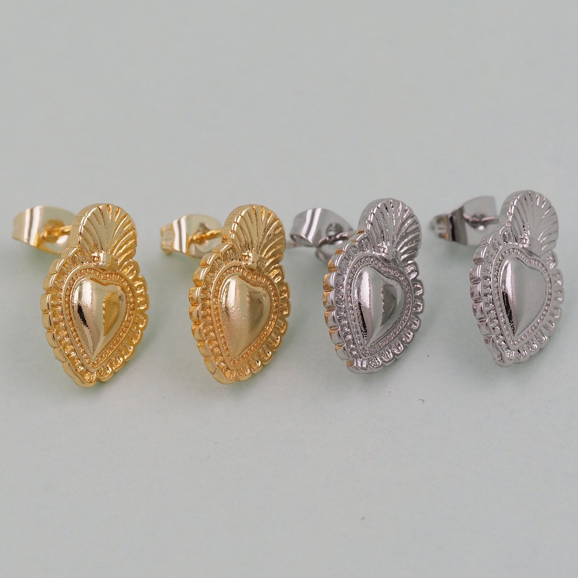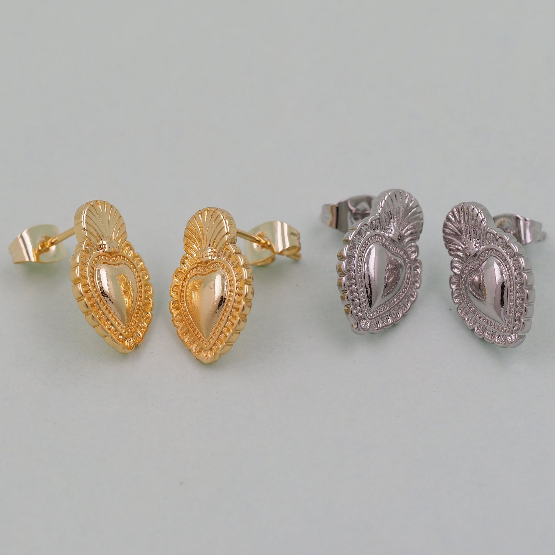 1pair 18K Gold Filled Sacred Heart Earrings,Flaming Heart Earrings,Gold Earrings,Dainty Hoops Huggie,Gold Huggies Hoop Earrings