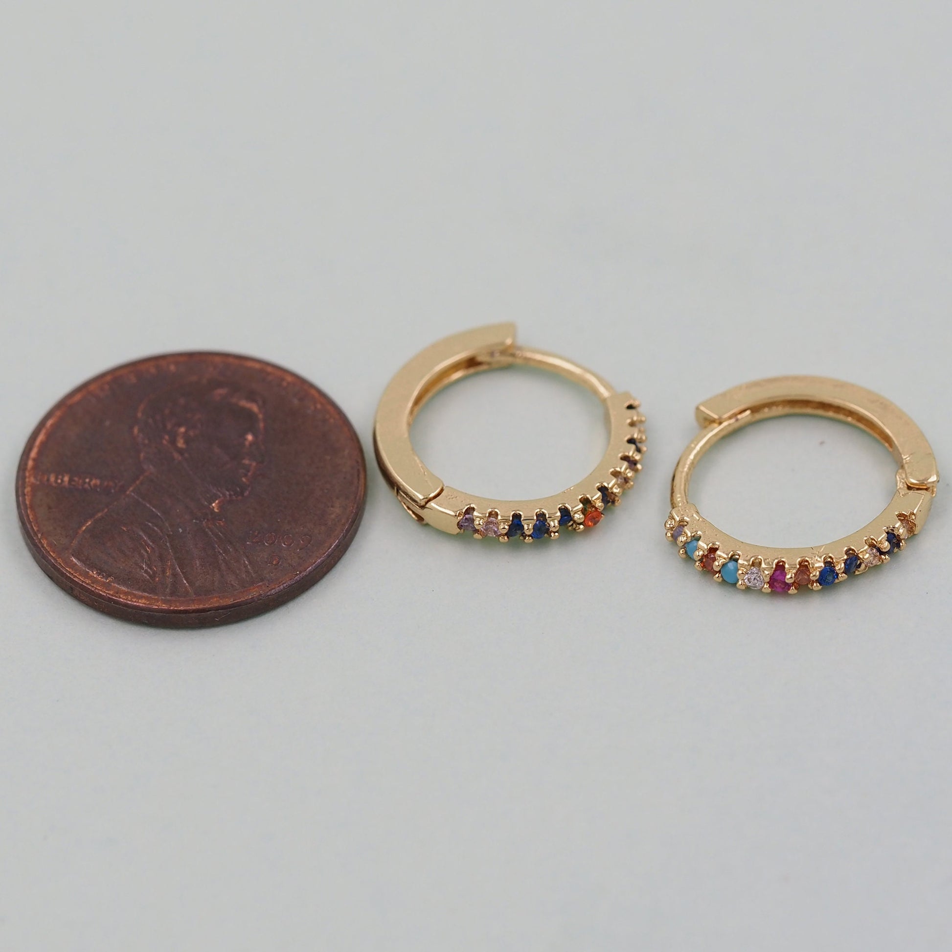 1pair 18K Gold Filled thin CZ Hoops Earrings,Gold Earrings,Dainty Hoops Huggie,Gold Huggies Hoop Earrings