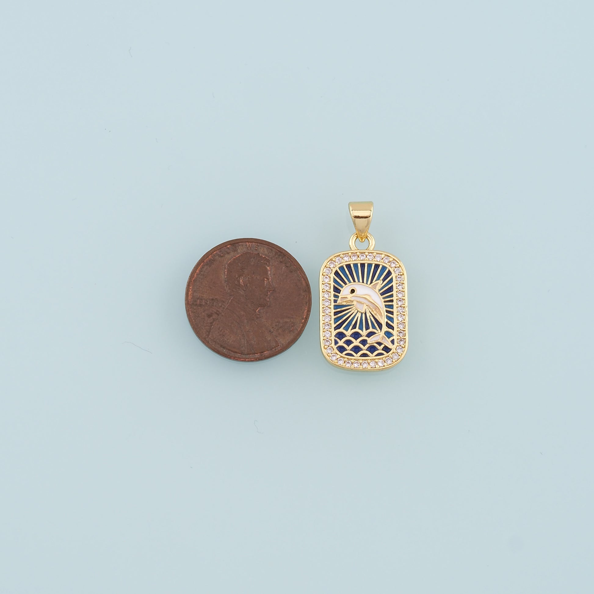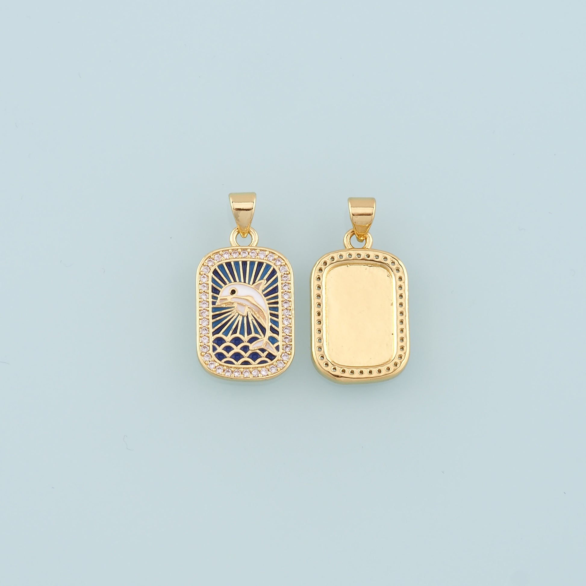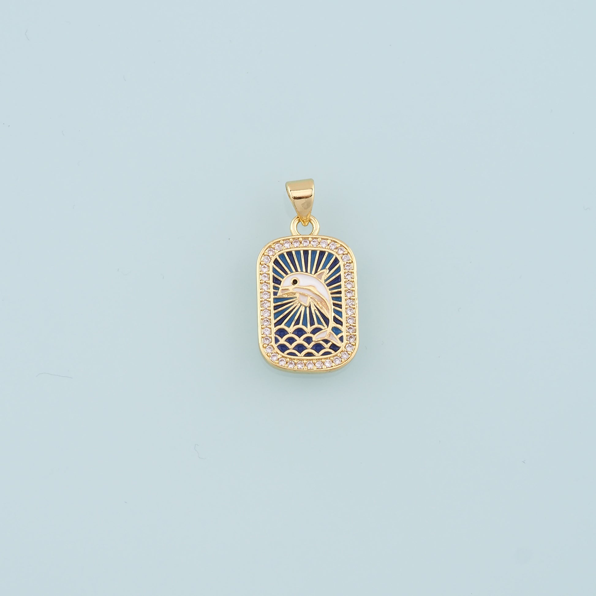 Cute Dolphin Charms,18K Gold Filled Enamel Dolphin Pendant,CZ Dolphin Charm Bracelet Necklace for DIY Jewelry Making Supply
