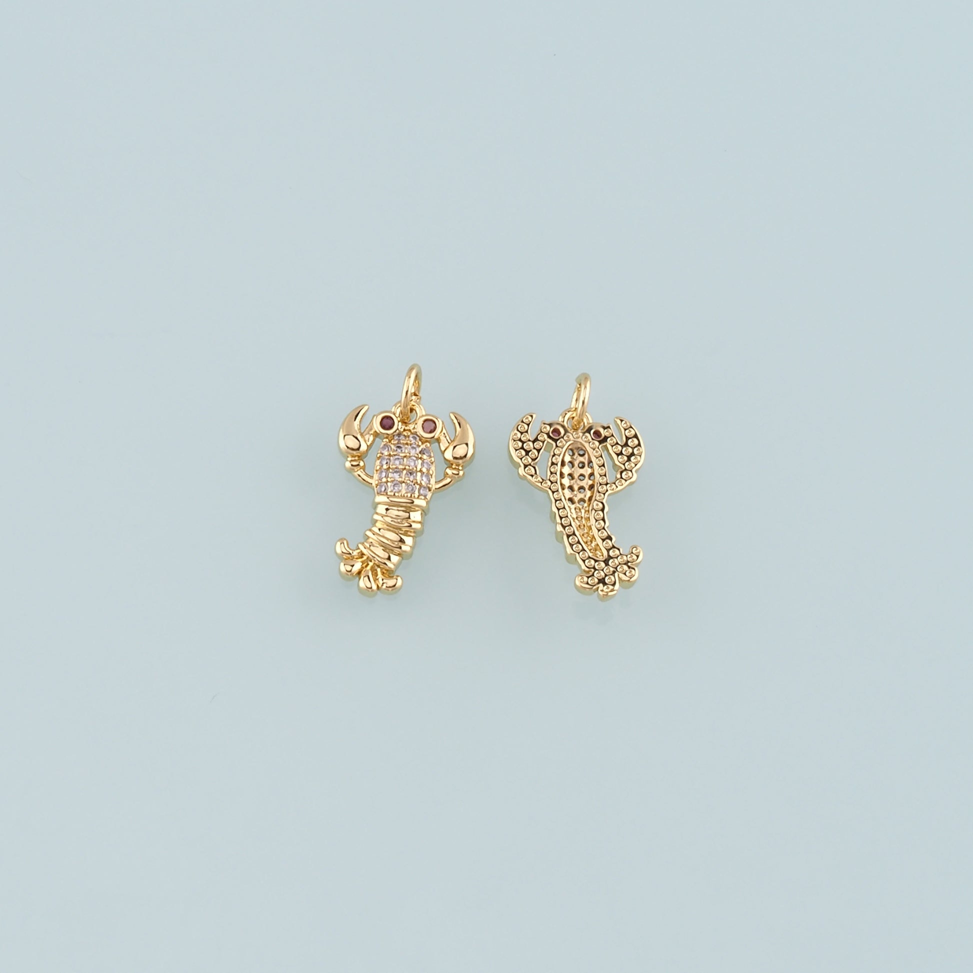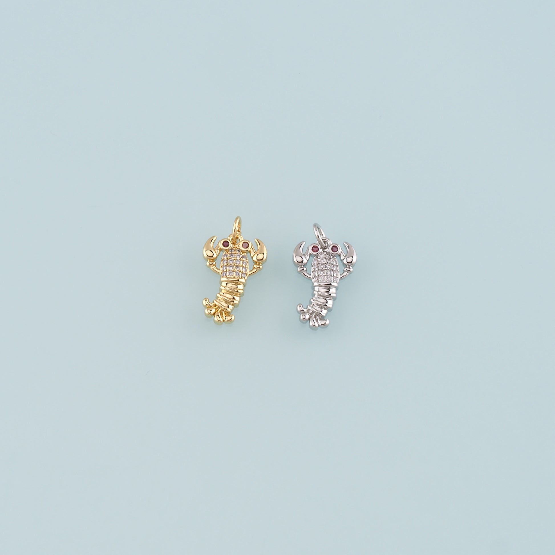 Cute Lobster Charms,18K Gold Filled CZ Micro Pave Lobster Pendant,kawaii Ocean Charm Bracelet Necklace for DIY Jewelry Making Supply
