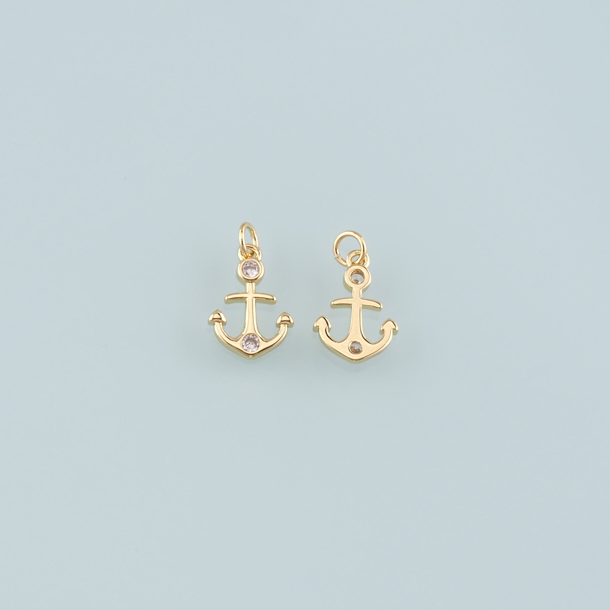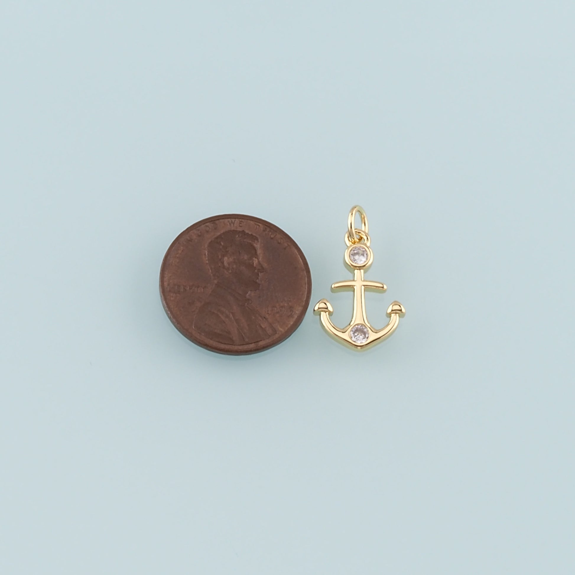 Gold Anchor Charms,18K Gold Filled CZ Micro Pave Anchor Pendant Charm Bracelet Necklace for DIY Jewelry Making Supply