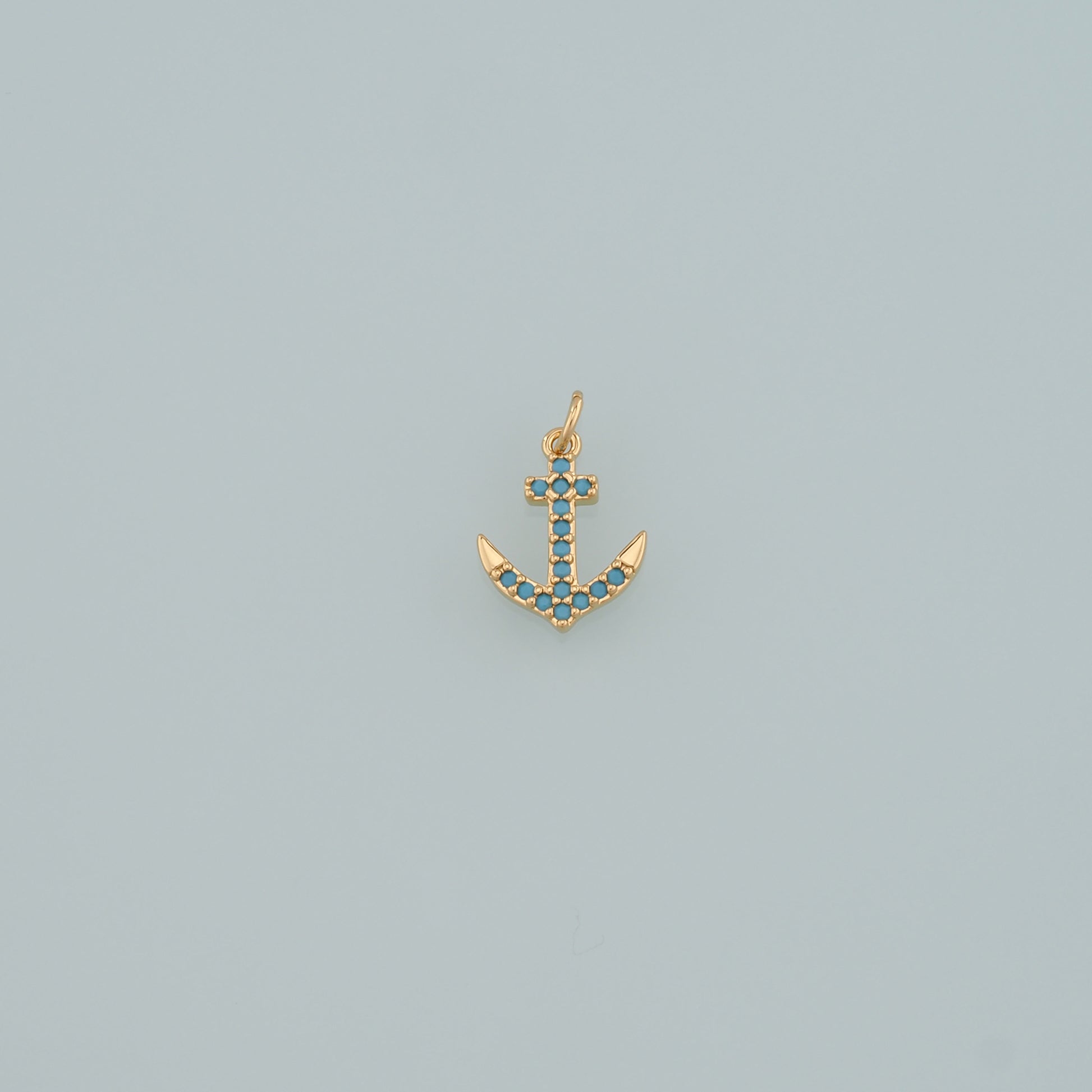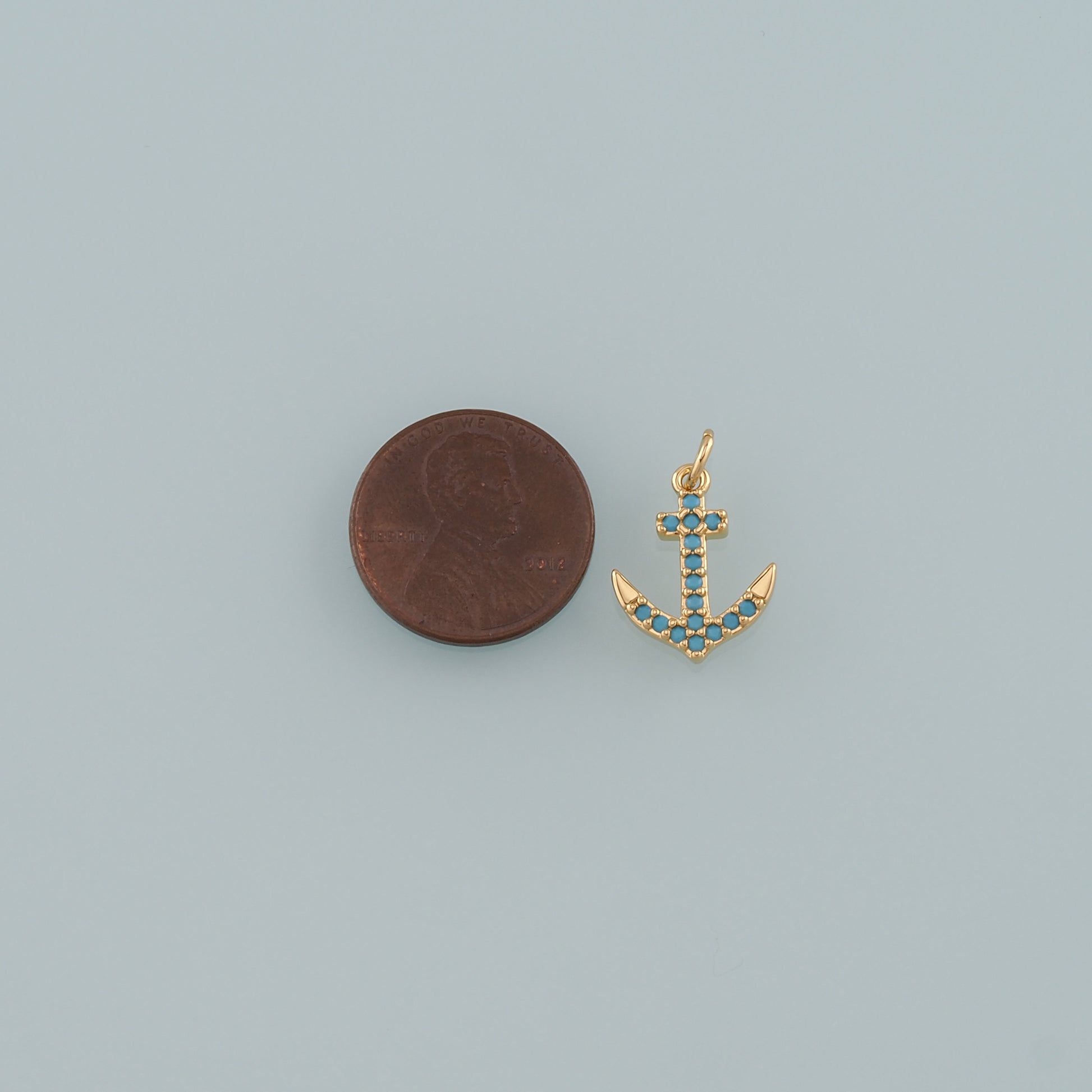 Gold Anchor Charms,18K Gold Filled CZ Micro Pave Anchor Pendant Charm Bracelet Necklace for DIY Jewelry Making Supply