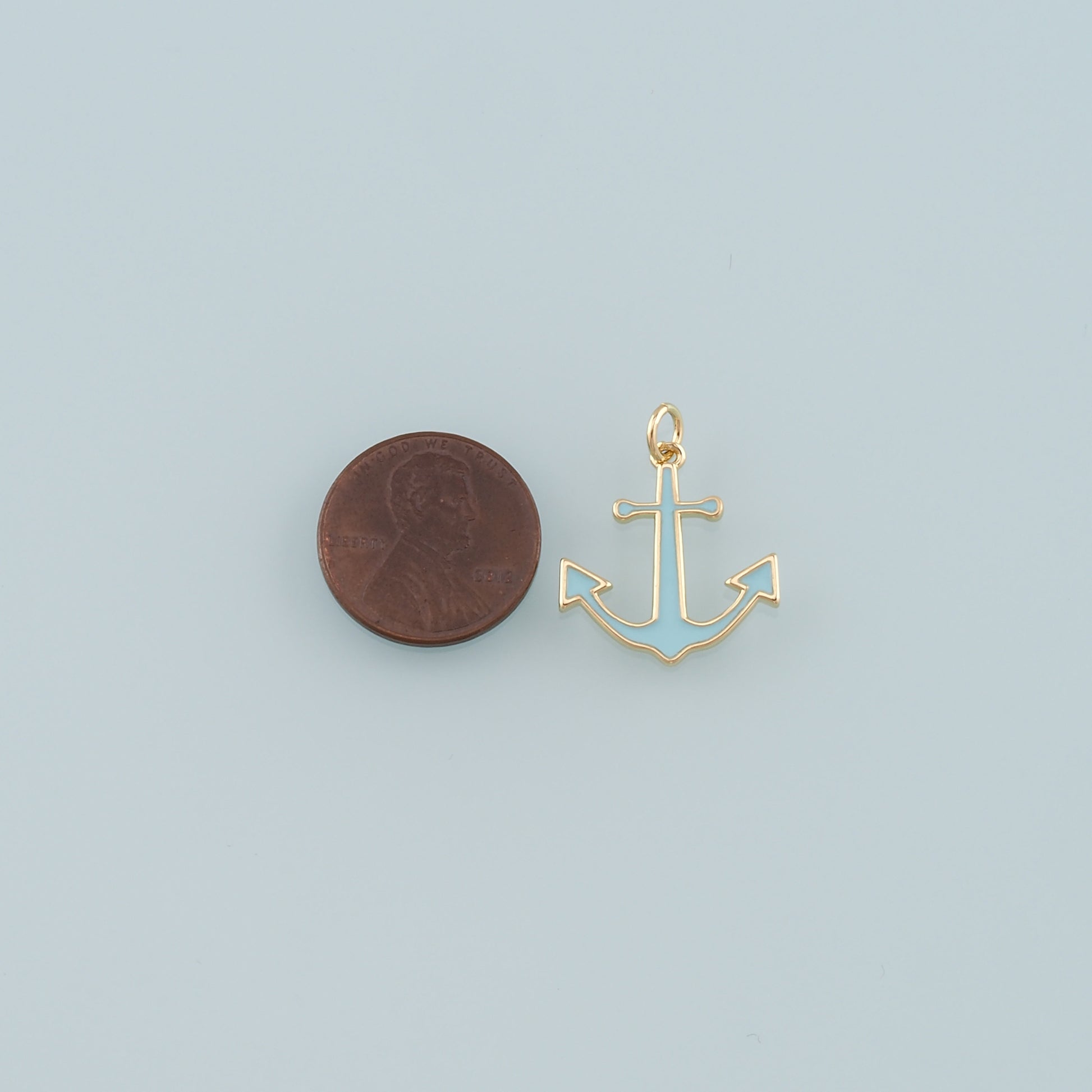 Gold Anchor Charms,18K Gold Filled Enamel Anchor Pendant Charm Bracelet Necklace for DIY Jewelry Making Supply